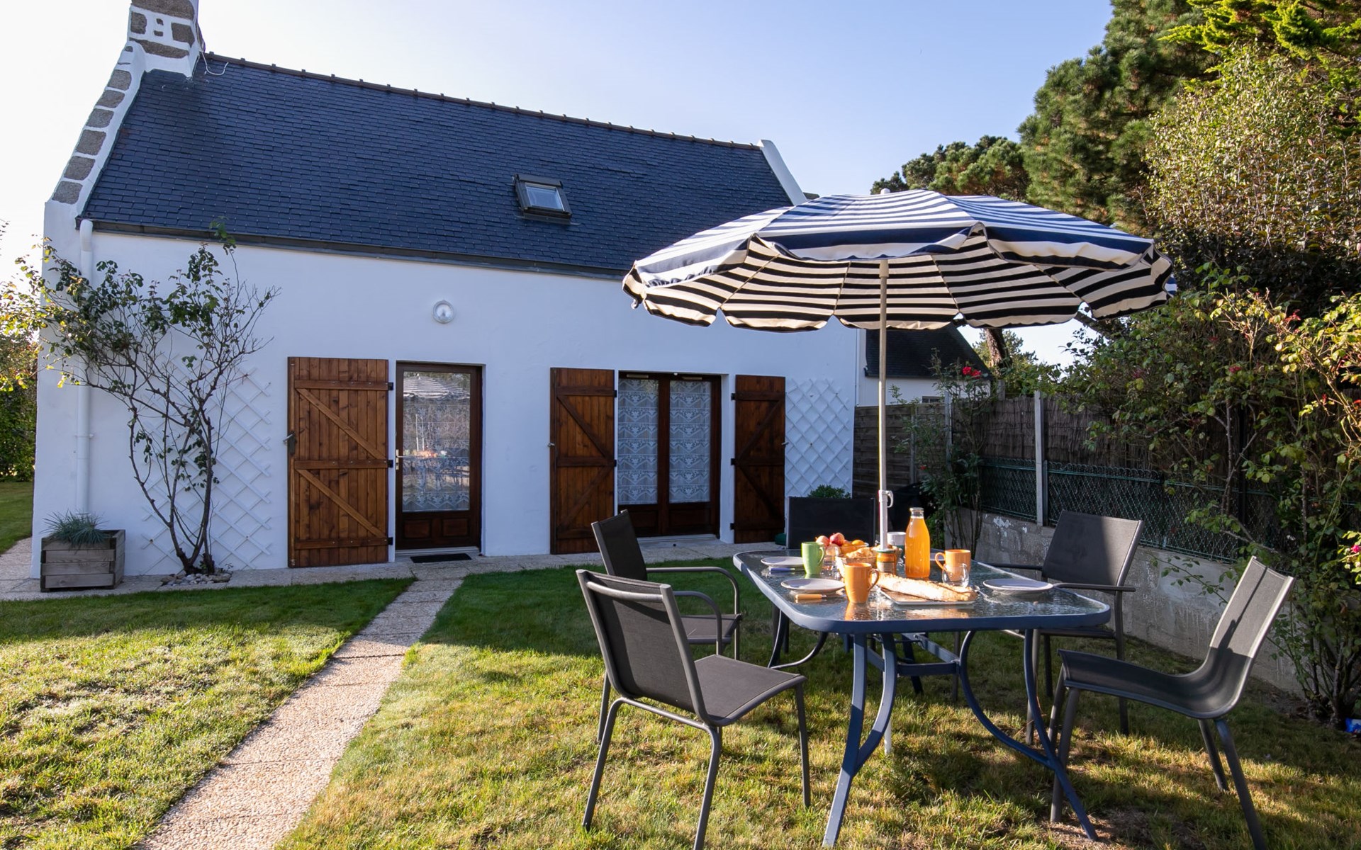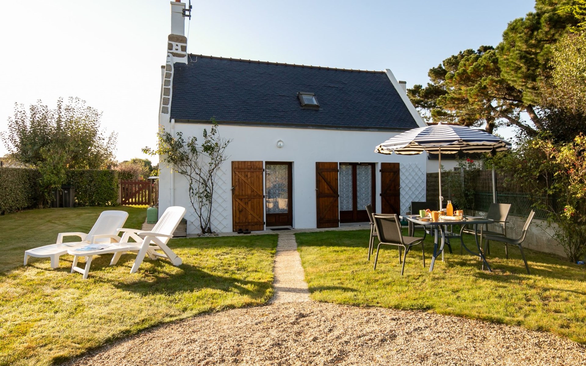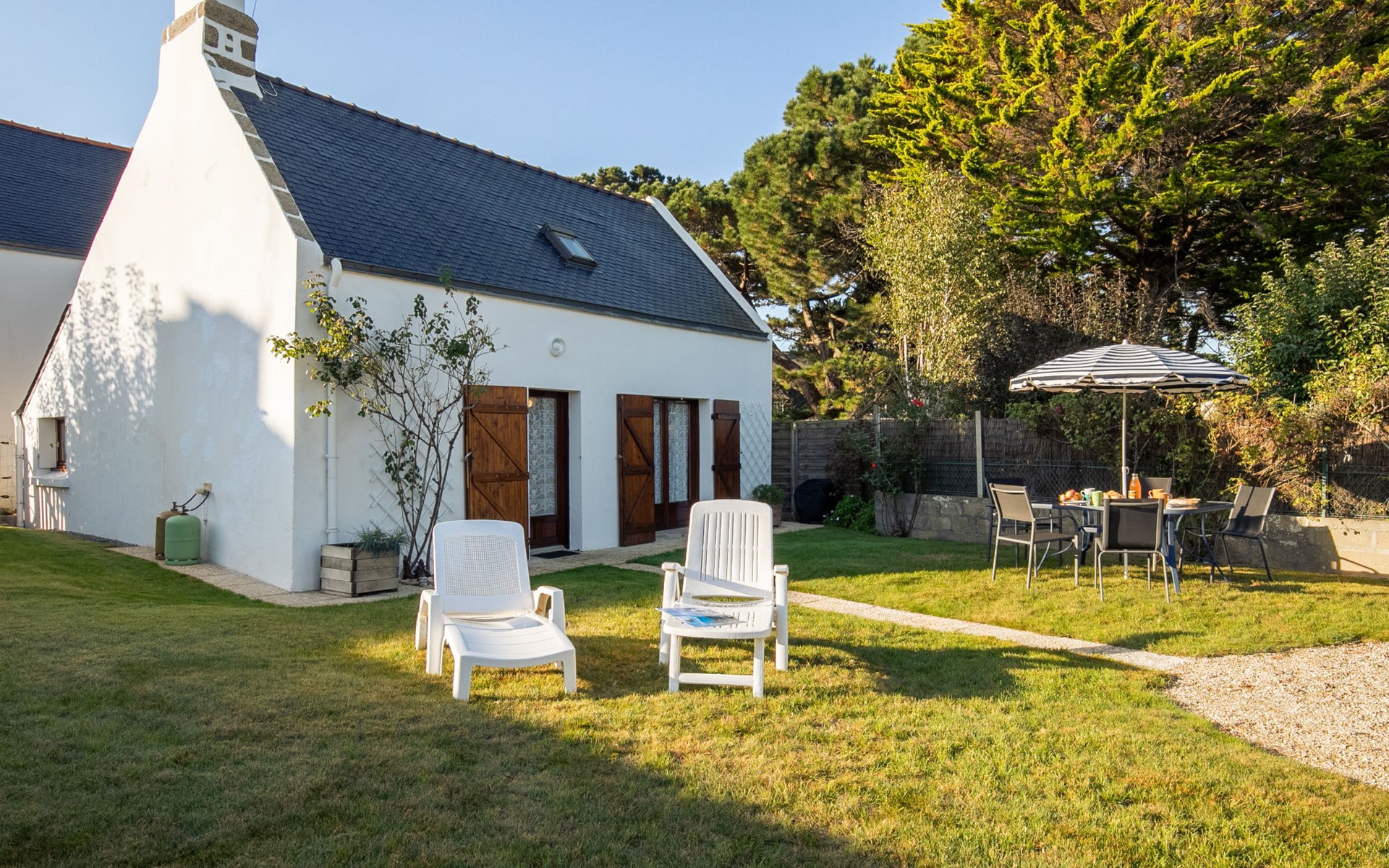 Pendruc 3 km from Tregunc: Beautiful, comfortable single-family house "Ty Pendruc". In the district of Pendruc 3.5 km from the centre of Tregunc, in a quiet position in the residential district, 150 m from the sea, 150 m from the beach, in a cul-de-sac. Private: beautiful, well-kept garden 350 m2 (fenced) with lawn and wildlife garden. Garden furniture, barbecue, parking (for 2 cars) on the premises. Shop 3.5 km, grocery 3.5 km, supermarket 4.2 km, shopping centre 11 km, restaurant 3.5 km, bar, café 700 m, bus stop 3.4 km, sandy beach "Plage de Pendruc" 350 m, outdoor swimming pool 8 km, thermal baths "Thalasso Concarneau". Marina 9 km, golf course (18 hole) 18 km, surf school 9 km, sailing school 9 km, tennis 3 km, riding stable 7 km, walking paths from the house 300 m. Nearby attractions: Pointe de Trévignon, Trégunc 9 km, Chaumières de Kerascoët, Névez 14 km, Concarneau, Ville Close 9.5 km, Pont-Aven, Ville de Peintres 13 km, Port Manec'h,estuaire de l'Aven et Belon 15 km, Quimper 40 km. Hiking paths: GR34, sentier des douaniers 300 m. Please note: car recommended.