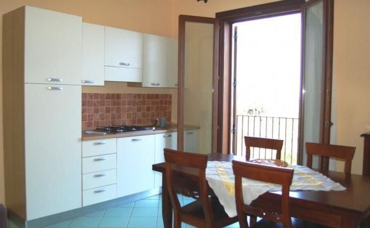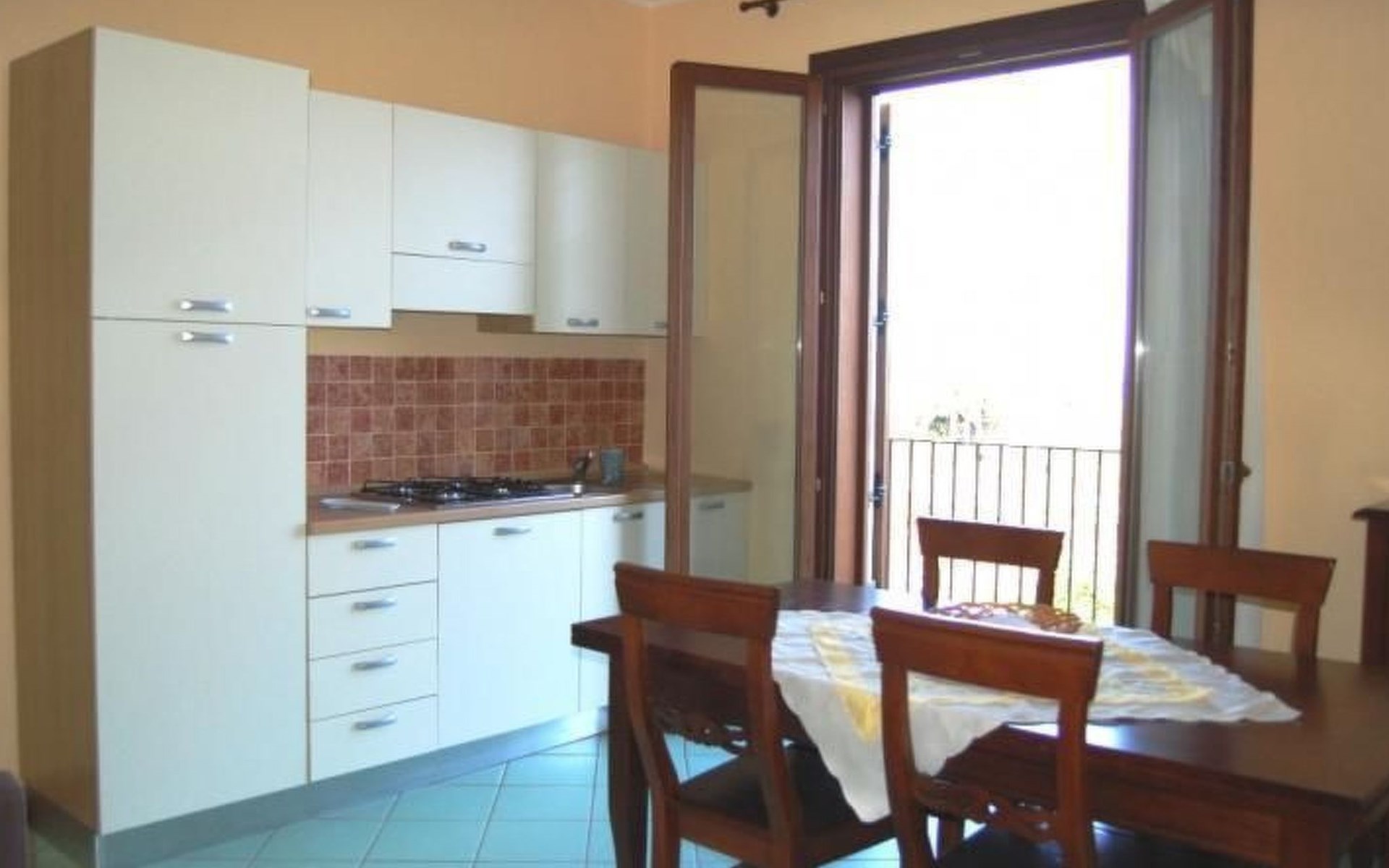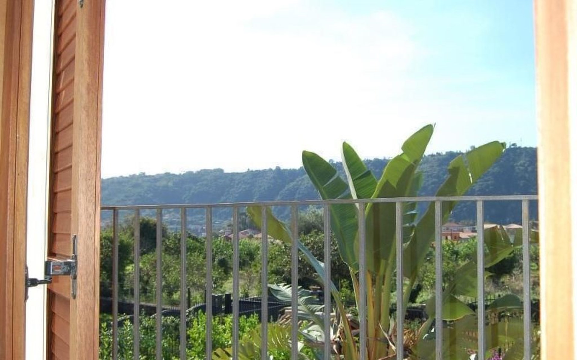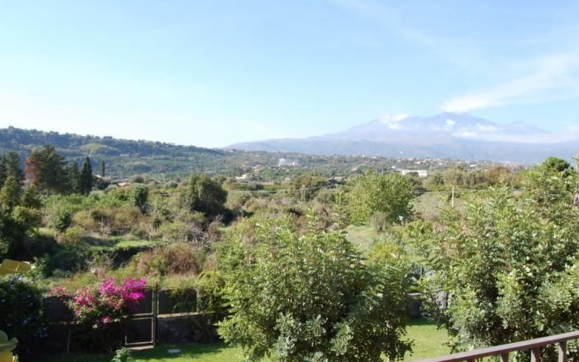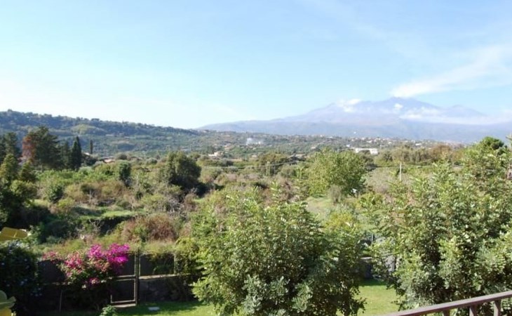 The apartment is on the first floor and affords views of Etna, the sea and the garden of the residence.