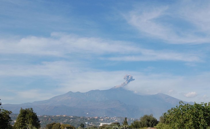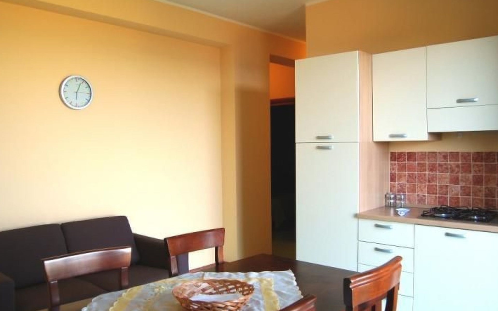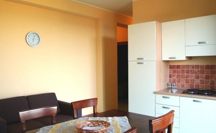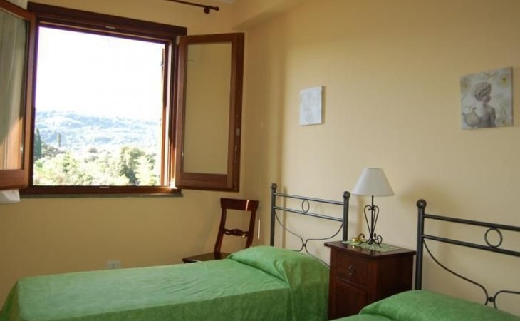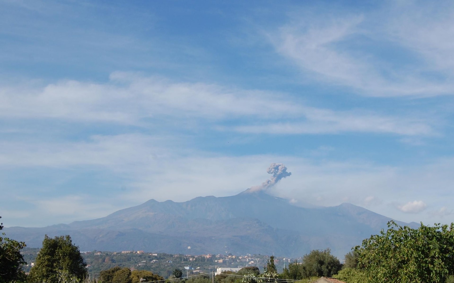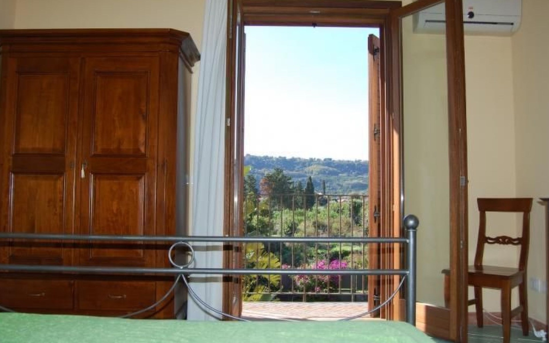 The apartment is on the first floor and affords views of Etna, the sea and the garden of the residence.