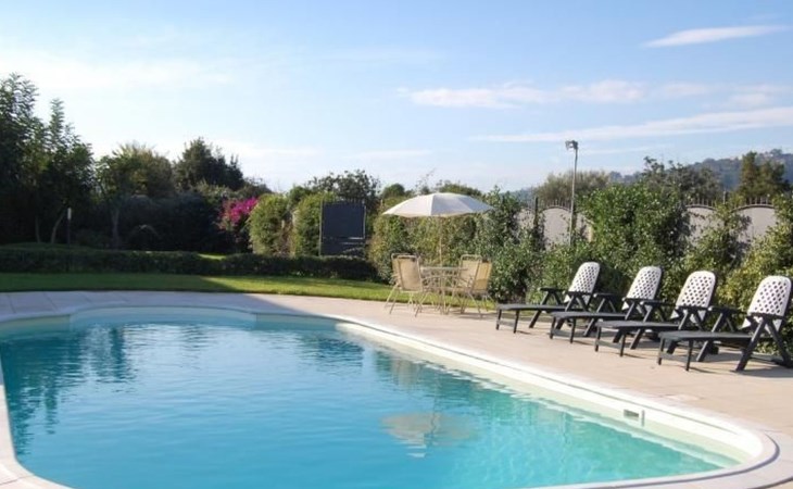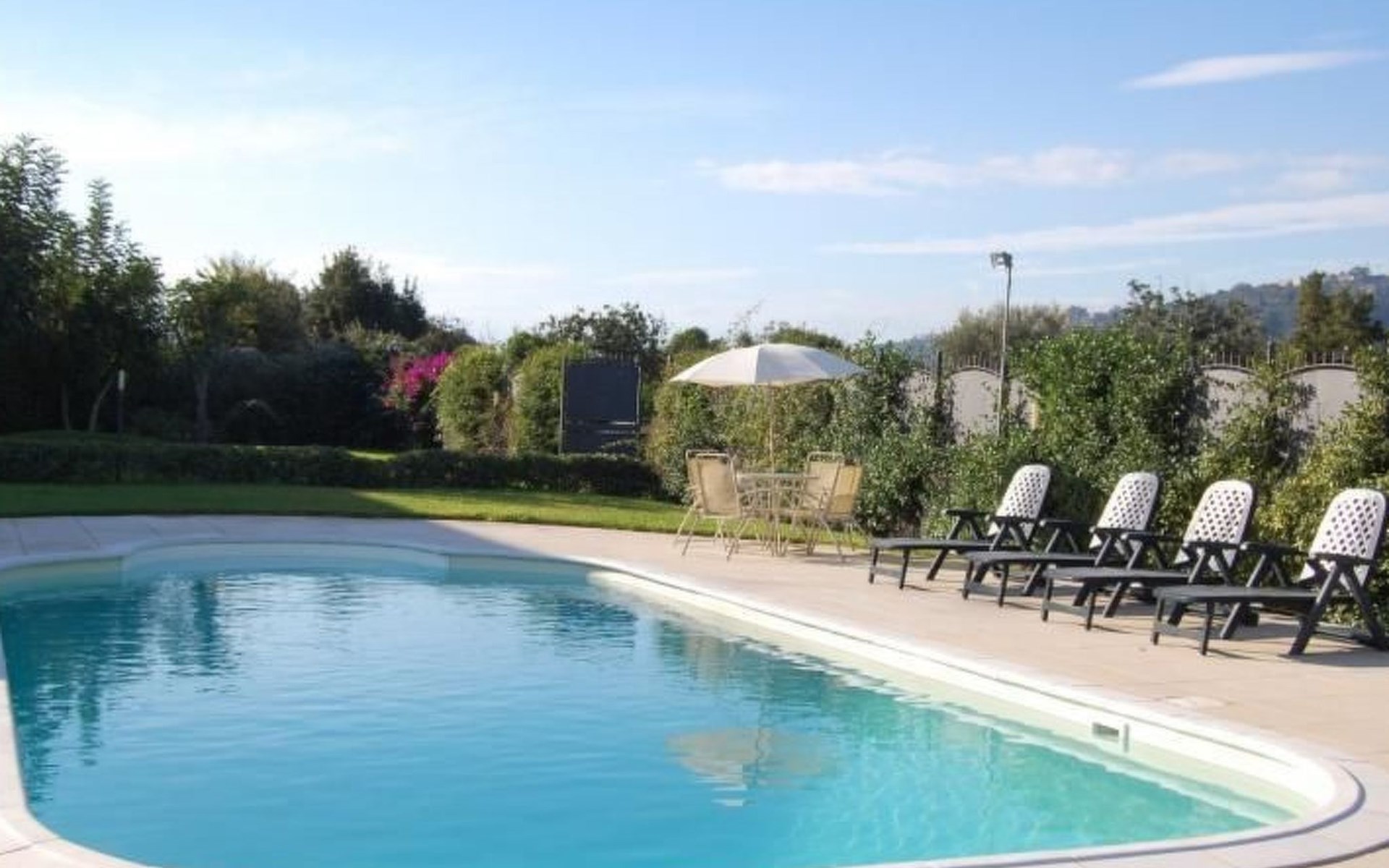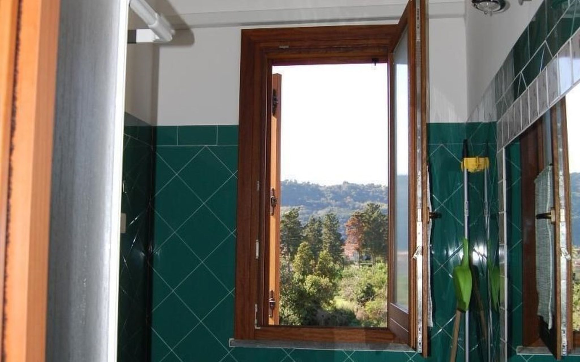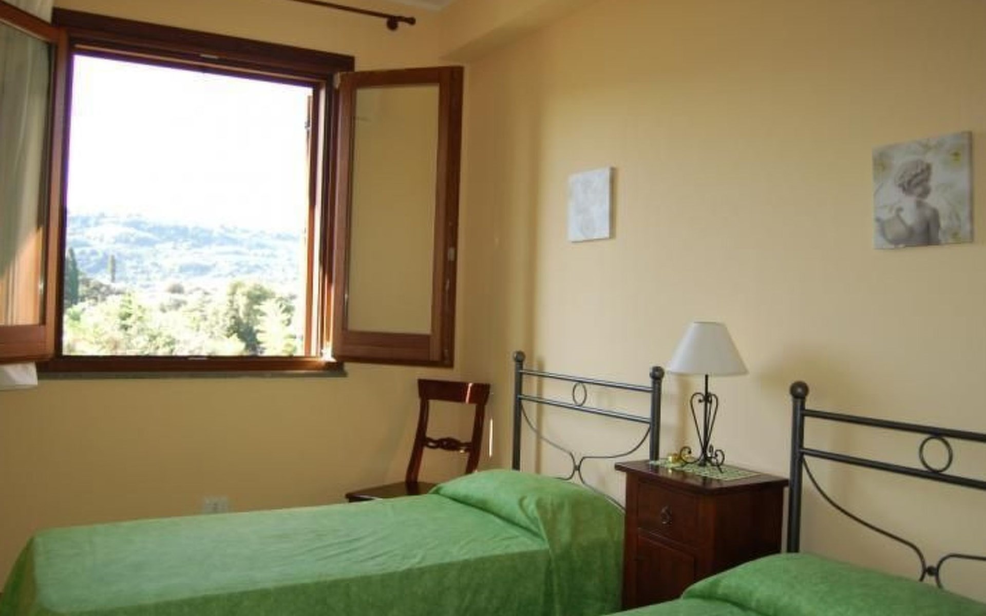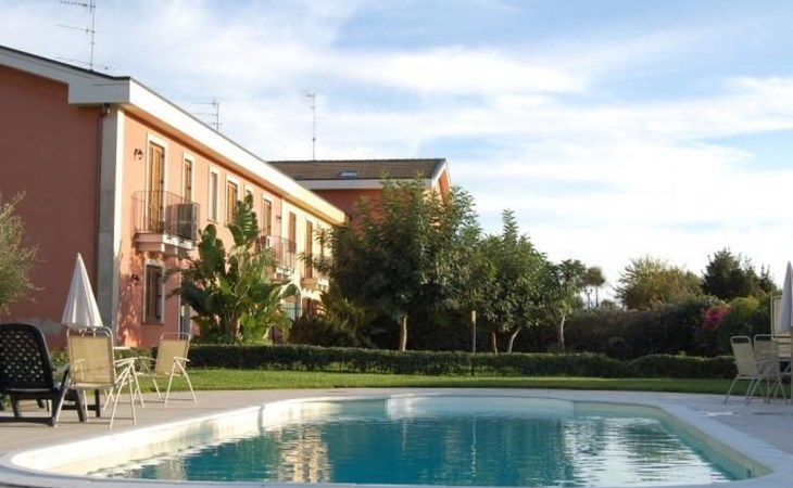 The apartment is on the first floor and affords views of Etna, the sea and the garden of the residence.