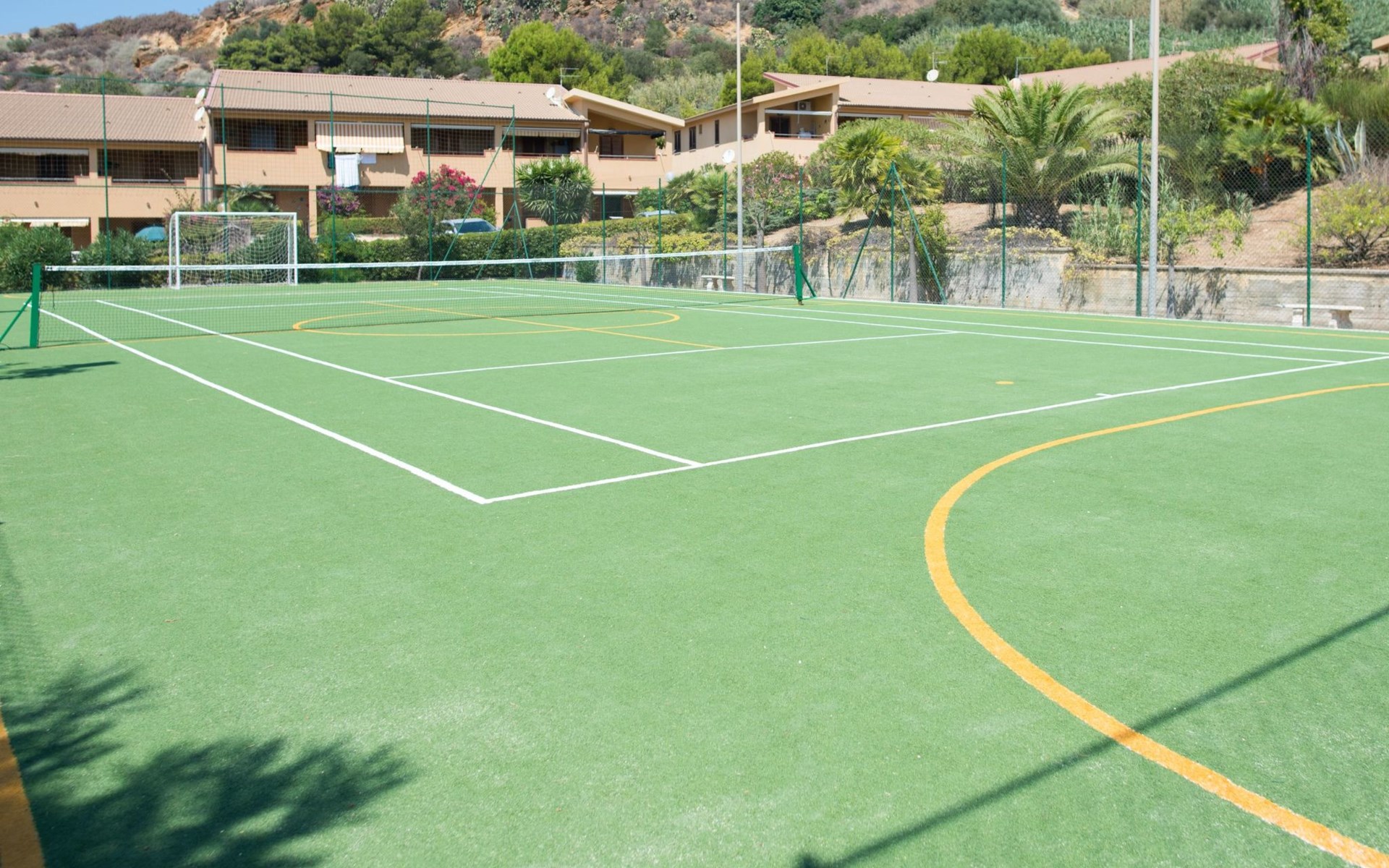 Guest Access. Guests will be able to use the communal areas inside the residence, such as the green areas with gazebo, tennis court and five-a-side football pitch, playground, barbecue area, and will be able to park for free inside the residence.