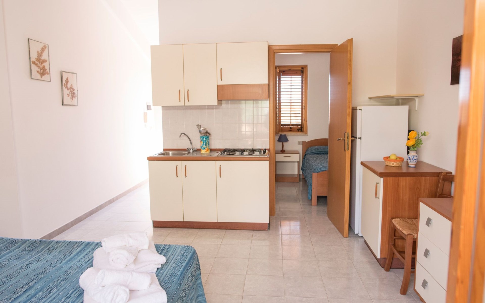 The accommodation, a few steps from one of the most picturesque seaside resorts in western Sicily, is ideal for a couple. The flat, with its own entrance, has a private internal car park and free wi-fi connection.