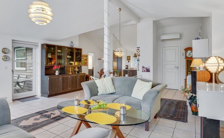 Single-family house, built in 2005. Private: property 1'580 m2, well-kept garden. Terrace (70 m2), barbecue. In the house: washing machine, tumble dryer. Parking at the house. Grocery 2.1 km. Golf course 17 km. The owner does not accept any youth groups.
