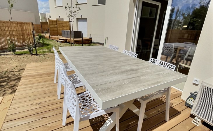 The La Dune residence is nestled a stone's throw from Valras Plage beach. Secure residence with heated swimming pool and private parking in new, air-conditioned, well-equipped accommodation with terraces (apartments) and garden (pavilions). Resort "La Dune". In the resort Valras Plage, from the sea, 400 m from the beach. For shared use: property (fenced), swimming pool (seasonal availability: 05.Apr. - 03.Nov.). In the complex: reception, washing machine, tumble dryer (for shared use, extra). Parking on the premises. Sandy beach "Valras Plage" 400 m. Nearby attractions: Réserve naturelle des Orpeillières, Béziers 20 km, Cap d'Agde. Please note: the photograph shows a typical example. The holiday properties may differ in living space, floorplan, equipment and furnishing.