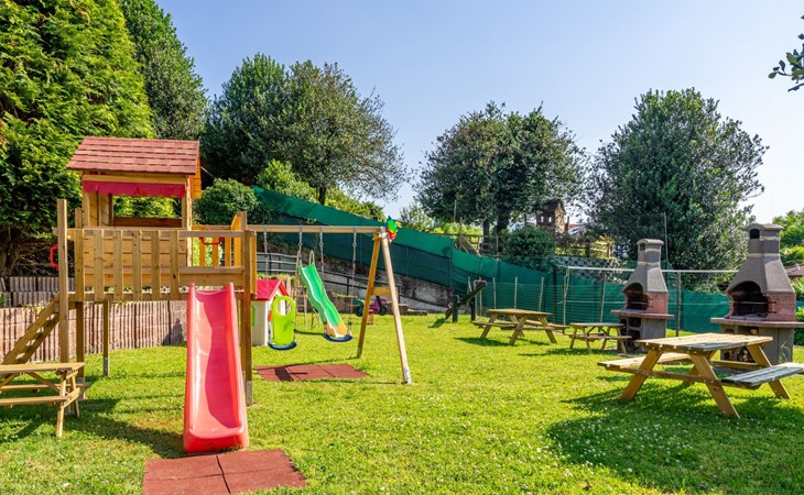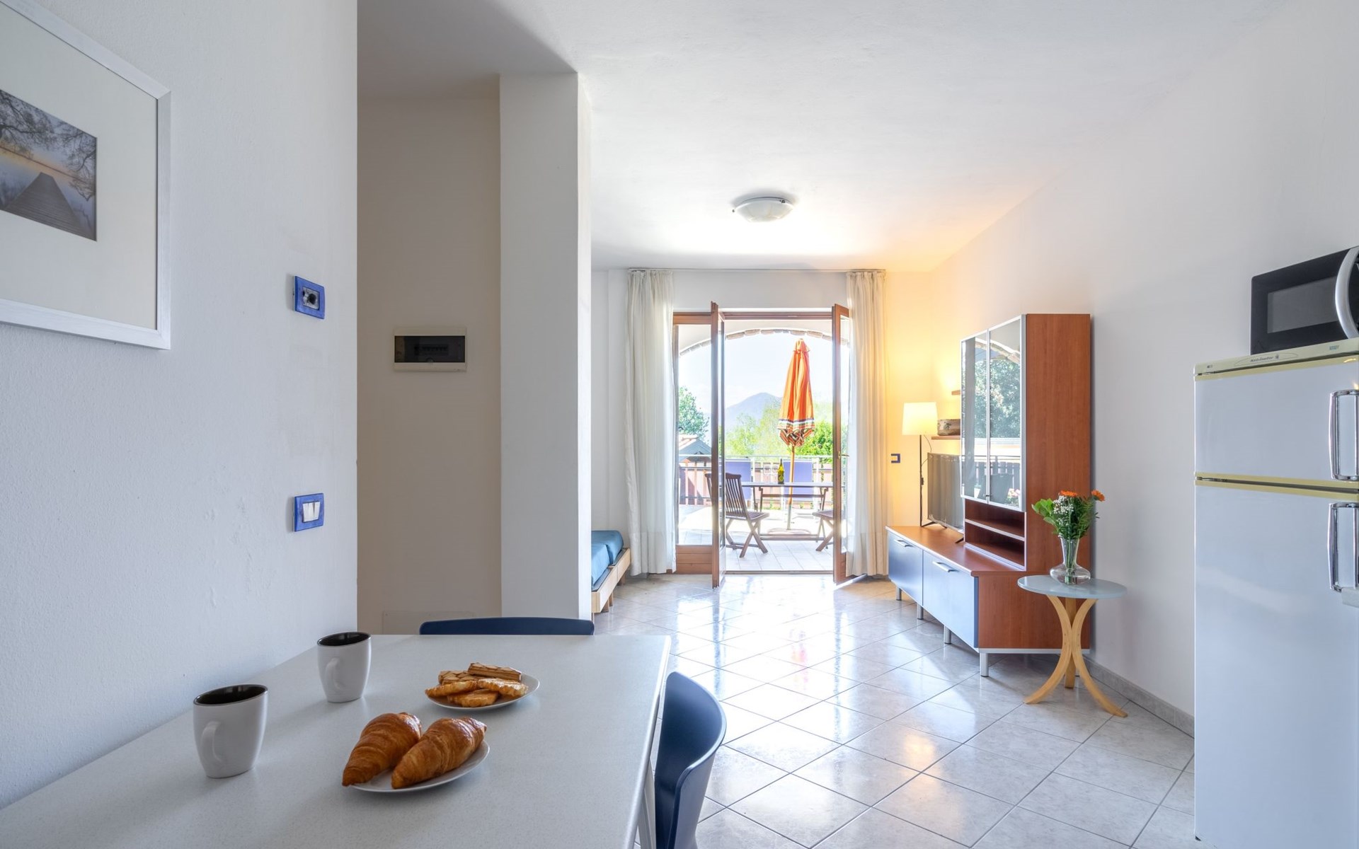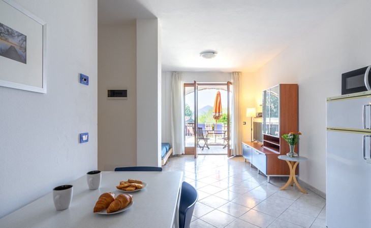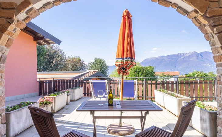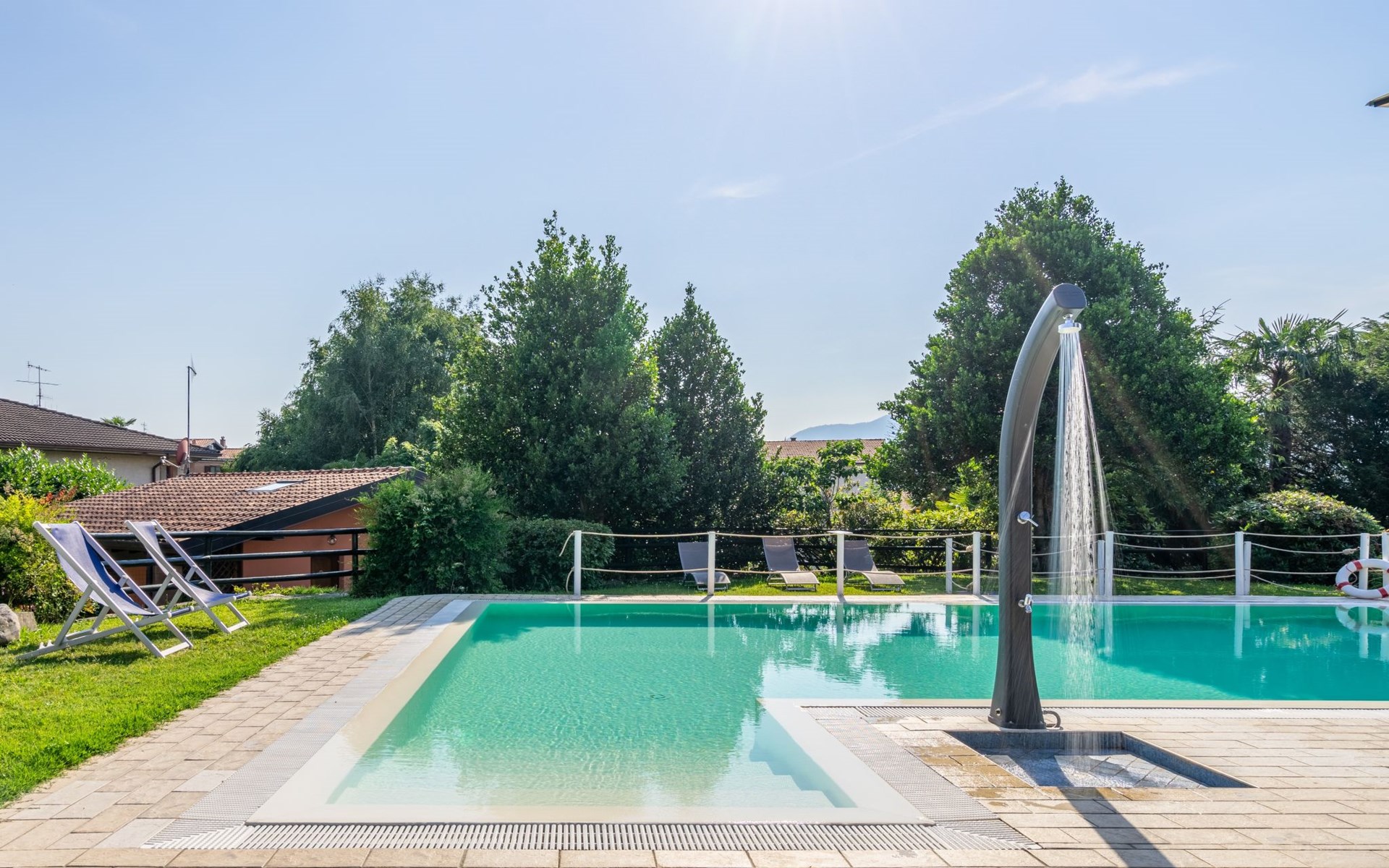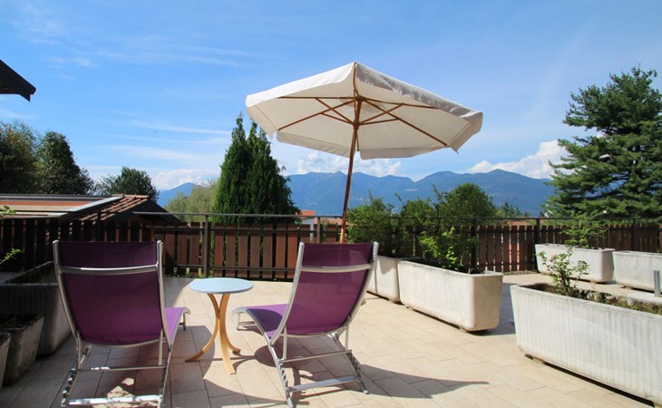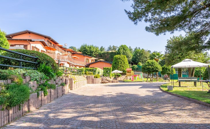 Holiday development "Residenza Agrifoglio". 17 apartments in the property. 2 km from the centre of Luino, in a sunny, elevated position, 3 km from the lake, in a cul-de-sac. For shared use: property (fenced) with lawn and trees, swimming pool (12 x 5 m, depth 140 cm, seasonal availability: 01.May. - 30.Sep. pool opening hours: 09:00-20:00). Outdoor shower, table tennis, volleyball court, barbecue, children's playground. In the house: washing machine (for shared use, extra), heating available only from 05.Oct. - 25.Apr.. 50 m long steep motor access to the house. Parking on the premises. E-charging station. Shop 2 km, supermarket 2 km, restaurant 1.5 km, bar 1.5 km, bus stop 400 m, railway station "Luino" 3 km, shingle beach "Le Serenelle" 3 km, indoor swimming pool 400 m. Tennis 400 m. Nearby attractions: Maccagno 12 km, Laveno 20 km. Please note: car recommended, no lift. Residence with electric gates. Animals in the neighbourhood. Residence consisting of apartments distributed in small buildings with a small garden and / or private balcony. One parking space for each apartment (2 for 6-person apartments). Unattended swimming pool. 2 charging stations available (the activation card must be booked in advance).