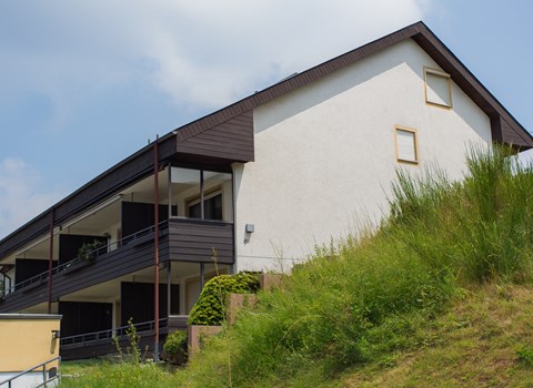 In the "Herzberg" holiday flat, which is suitable for up to 5 people, you will experience cosiness on around 60m² of living space. The flat is furnished in a practical studio style on the 2nd floor and has a spacious living/bedroom of approx. 40m² with flat-screen TV, comfortable upholstered suite, wardrobe and dressing room. The cosy double bed and an additional upholstered couch invite you to linger. A separate bedroom with two single beds, which can also be put together, is located directly above the flat and can be reached via a staircase. The kitchen is equipped with an electric cooker, a fridge and a dining table with 5 chairs. The bathroom has a shower and a window for ventilation with a view of our mountains.