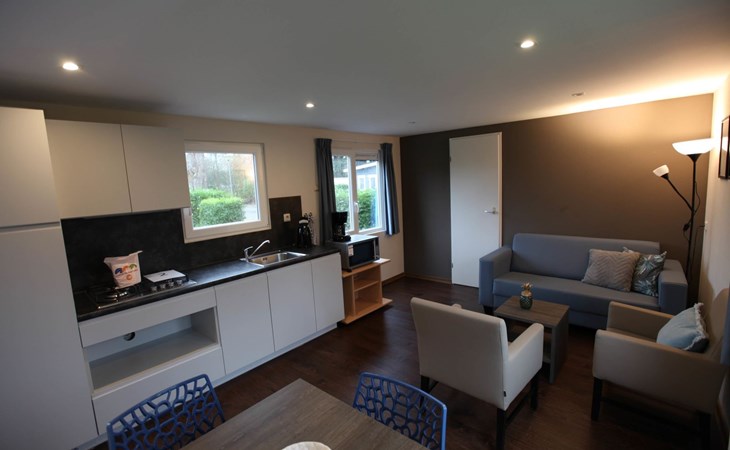 This cosy family area consists of six fully furnished chalets, grouped together and ideal for families or groups of friends who want to stay close to one another while still having their own accommodation. In total, there is space for up to 30 people, divided over six chalets, each suitable for a maximum of 5 guests. Because the chalets are located close together, you can enjoy a pleasant shared setting while everyone still has their own privacy.
