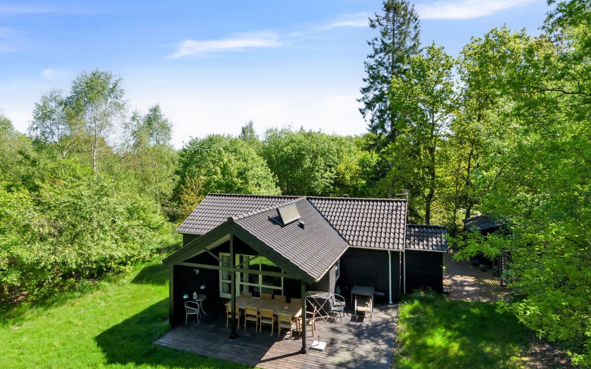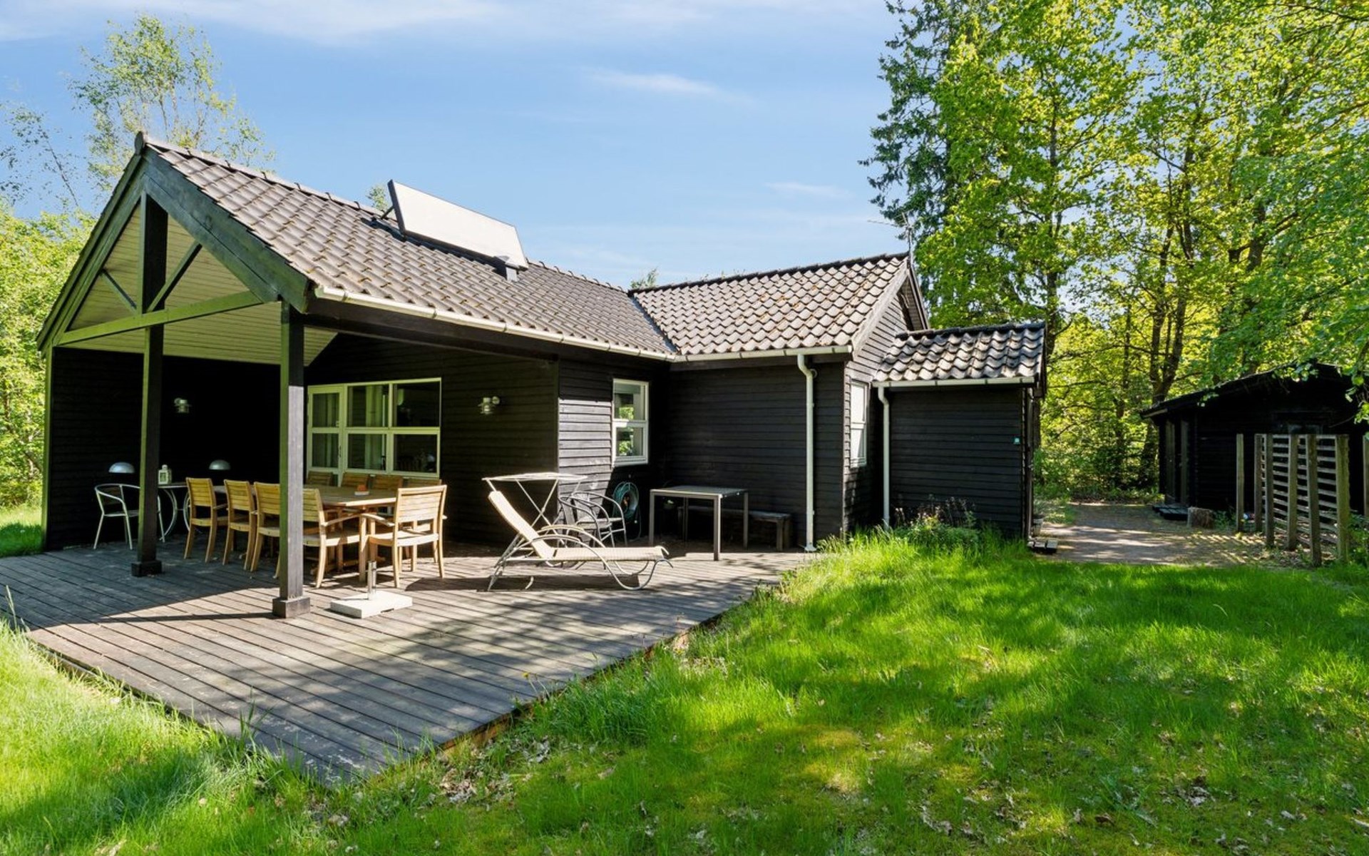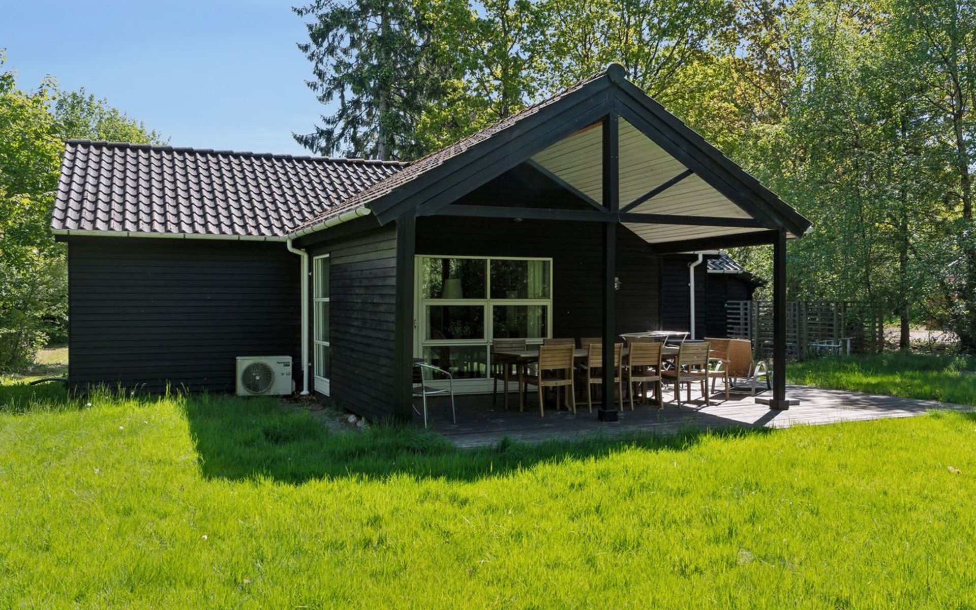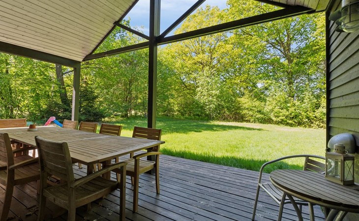 Single-family house, built in 2006. 35 km from the sea. Private: natural state property 1'069 m2. Terrace (16 m2), barbecue, children's playground (swing). In the house: washing machine. Parking at the house. Grocery 5 km. The owner does not accept any youth groups.