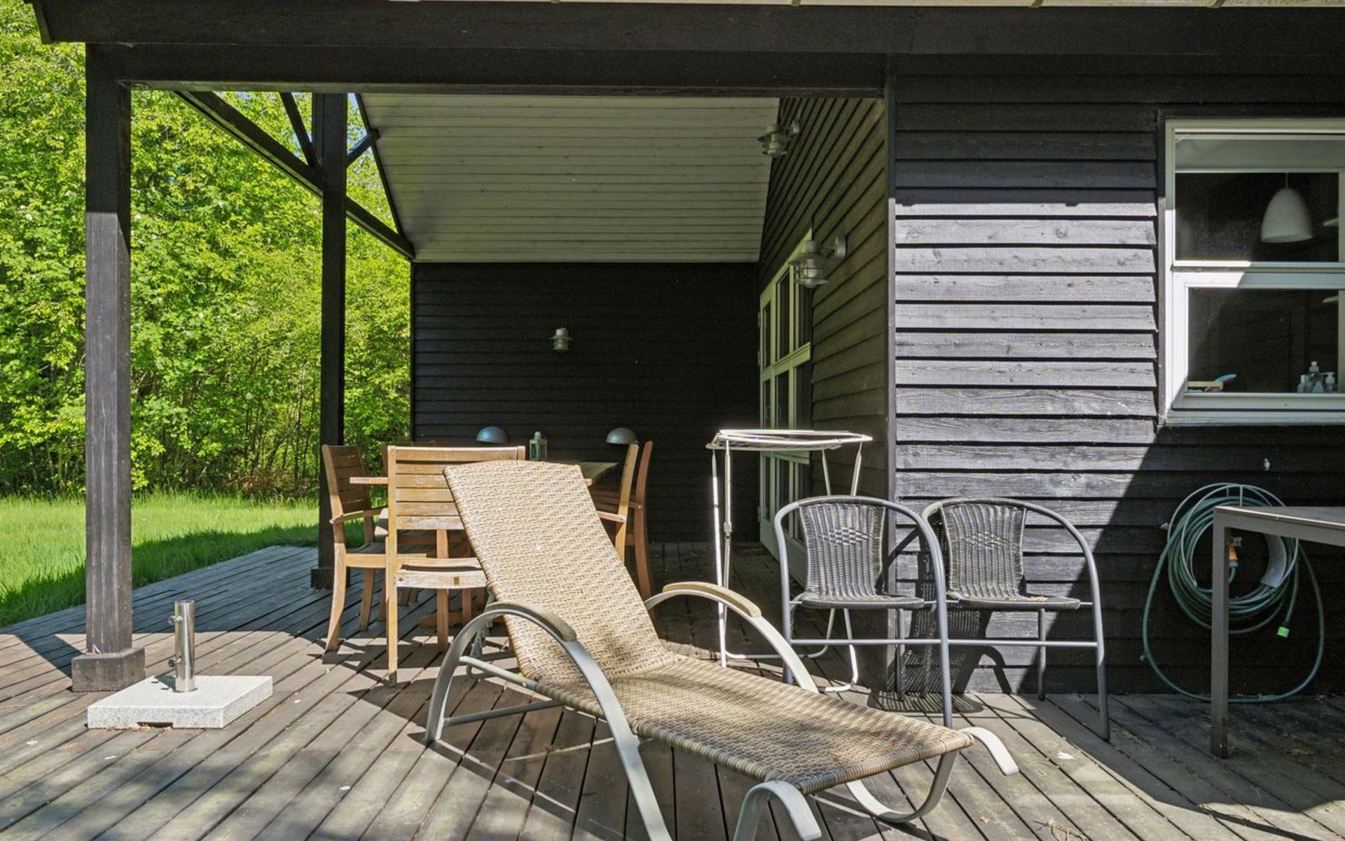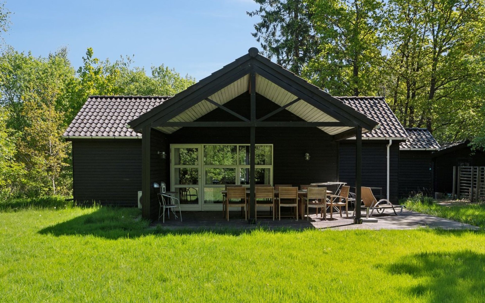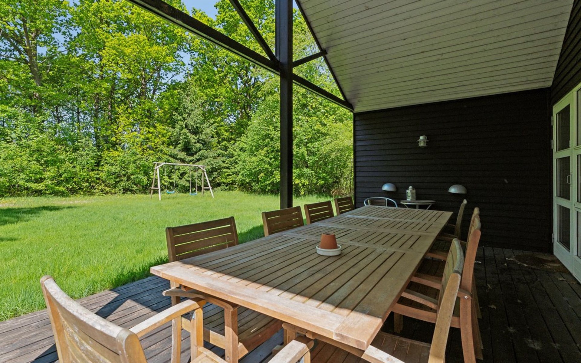 Single-family house, built in 2006. 35 km from the sea. Private: natural state property 1'069 m2. Terrace (16 m2), barbecue, children's playground (swing). In the house: washing machine. Parking at the house. Grocery 5 km. The owner does not accept any youth groups.