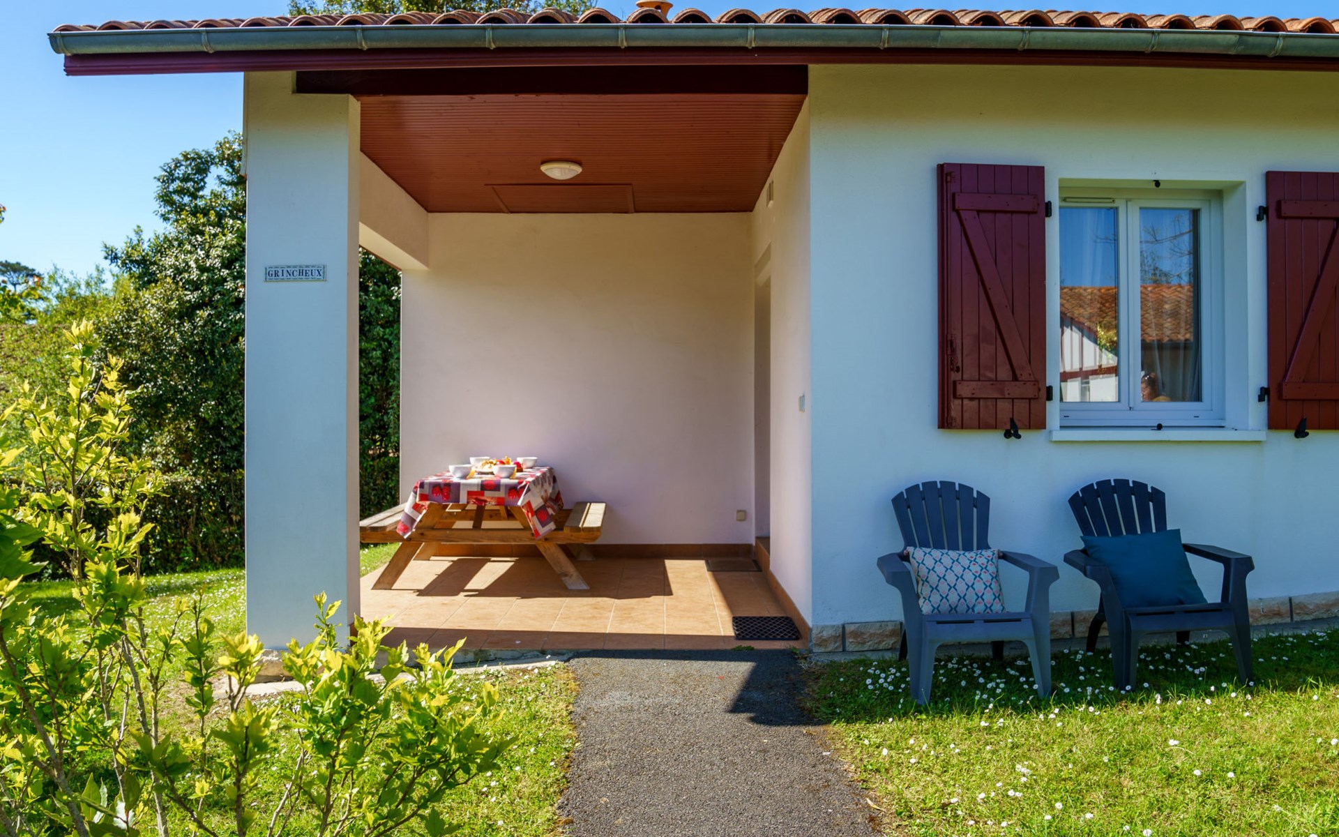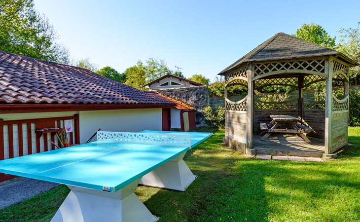 Resort "Les 7 Nains". 7 houses in the resort. In a quiet position, 800 m from the sea, 800 m from the beach, in a cul-de-sac. For shared use: garden (fenced), swimming pool angular (6 x 12 m, seasonal availability: 04.May. - 04.Oct. pool opening hours: 10:00-18:00). Table tennis, boccia, barbecue house, children's playground, pool maintenance by the owner/gardener. In the house: washing machine (for shared use). Shop, grocery 500 m, supermarket 3.5 km, shopping centre 3.5 km, restaurant 500 m, bar 800 m, bakery 500 m, café, bicycle rental 450 m, bus stop "Estalo" 350 m, railway station "Biarritz" 7 km, sandy beach "Parlementia" 800 m (small), thermal baths "Thalmar" 6 km. Golf course (9 hole) 5.3 km, surf school 800 m. Nearby attractions: Port de Guéthary 1 km, Musée Saraleguinea 1.1 km, Bida'Parc 1.2 km, Moulin de Bsssilour 3.3 km, Cité de l'Océan 4.7 km, Musée de la Mer 8.5 km. Hiking paths: La Rhune 16 km. Please note: suitable for families. The owner does not accept any groups. The owner lives on the same property. Additional accommodations can be booked.