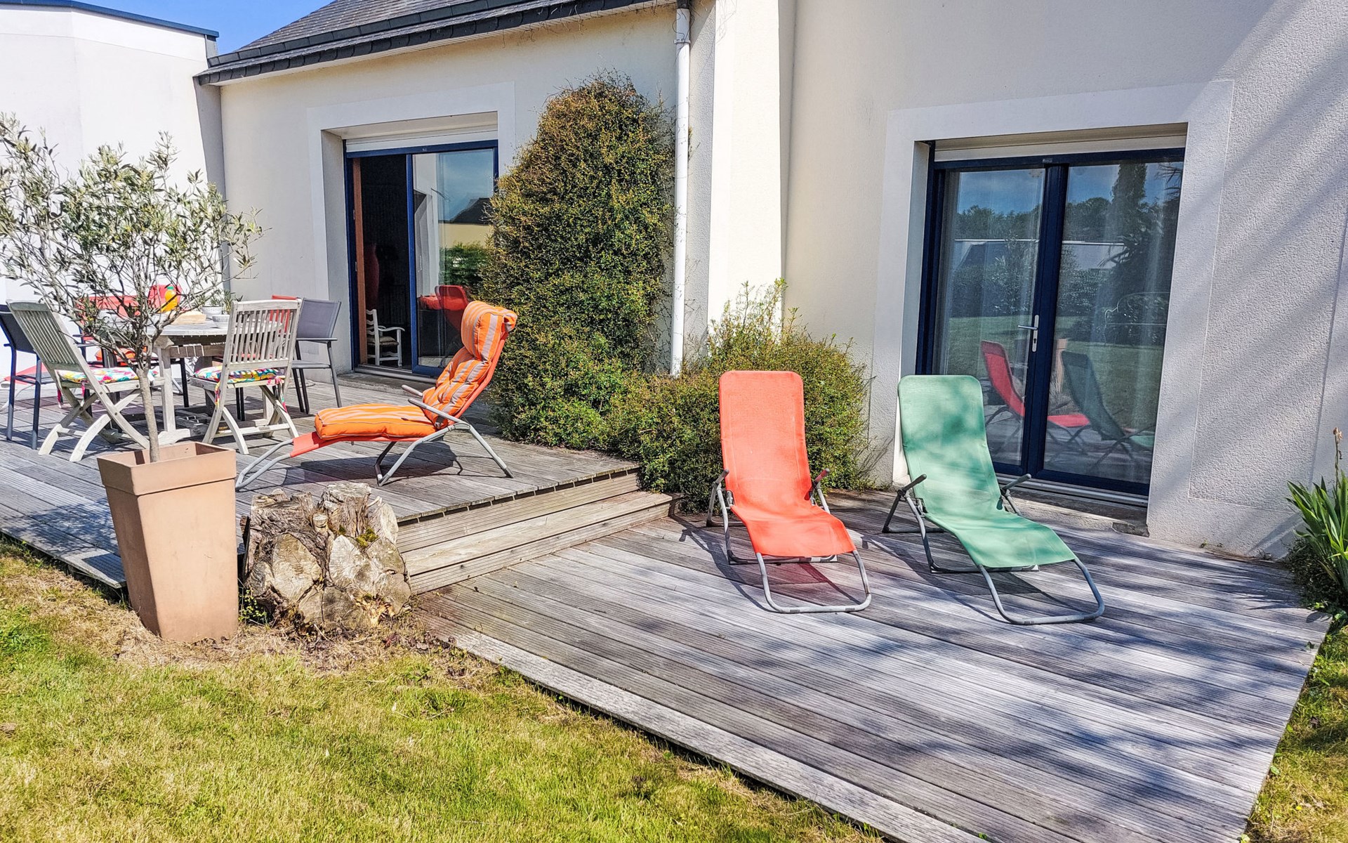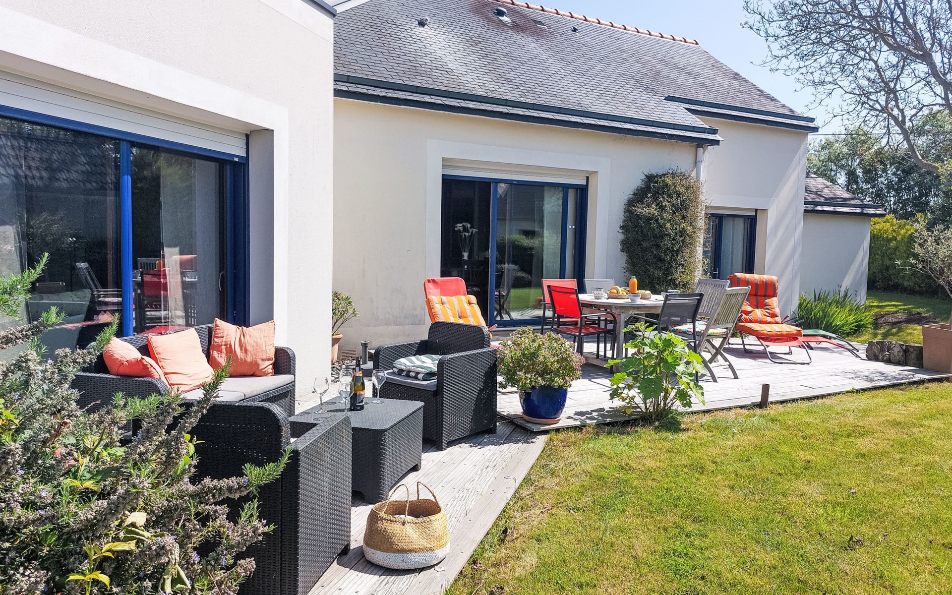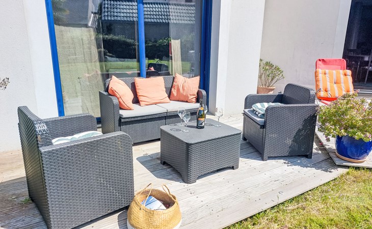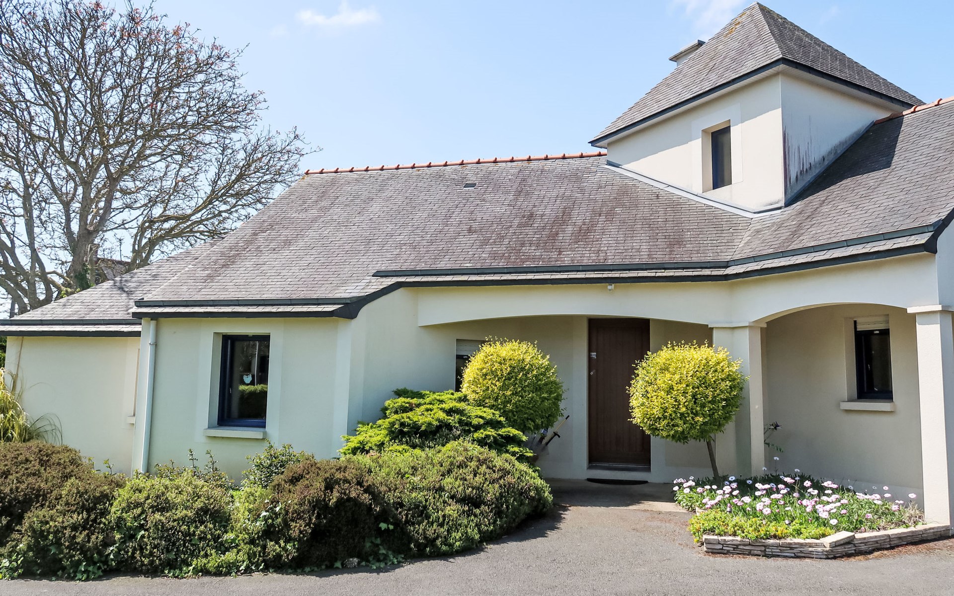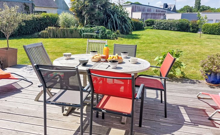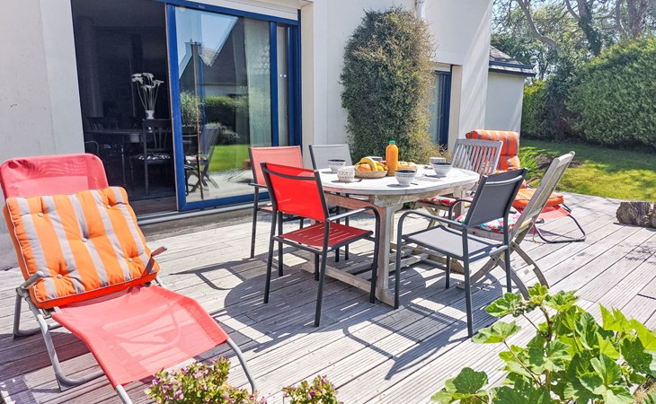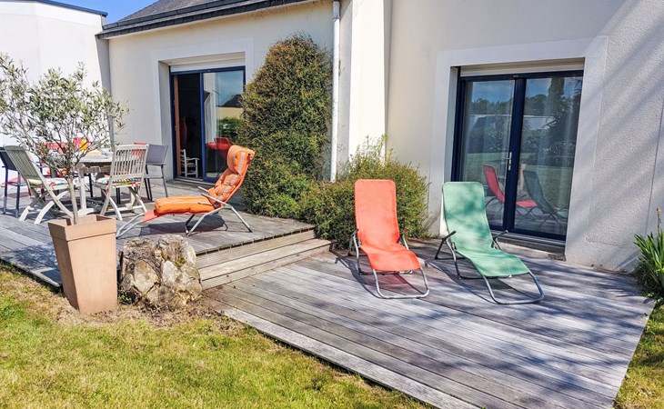 Single-family house "La Roche Blanche". 600 m from the centre of Hillion, in the residential district, 1 km from the sea, 1 km from the beach. Private: well-kept garden 1'000 m2 (not fenced) wildlife garden and trees, parking (for 2 cars) on the premises. Grocery, restaurant, bus stop 600 m, sandy beach "Plage de Bon Abri" 1 km. Nearby attractions: Pléneuf-Val André 15 km, Erquy 24 km, Cap Frehel 38 km, Binic, Etables sur Mer 26 km, St. Brieuc 15 km, St. Quay Portrieux 33 km. Hiking paths: GR34 50 m. Please note: car recommended.
