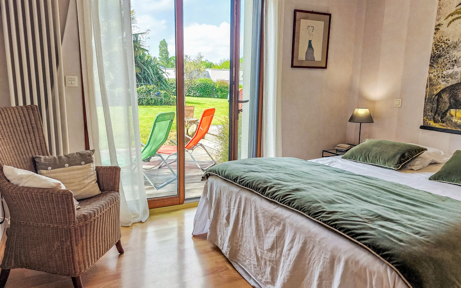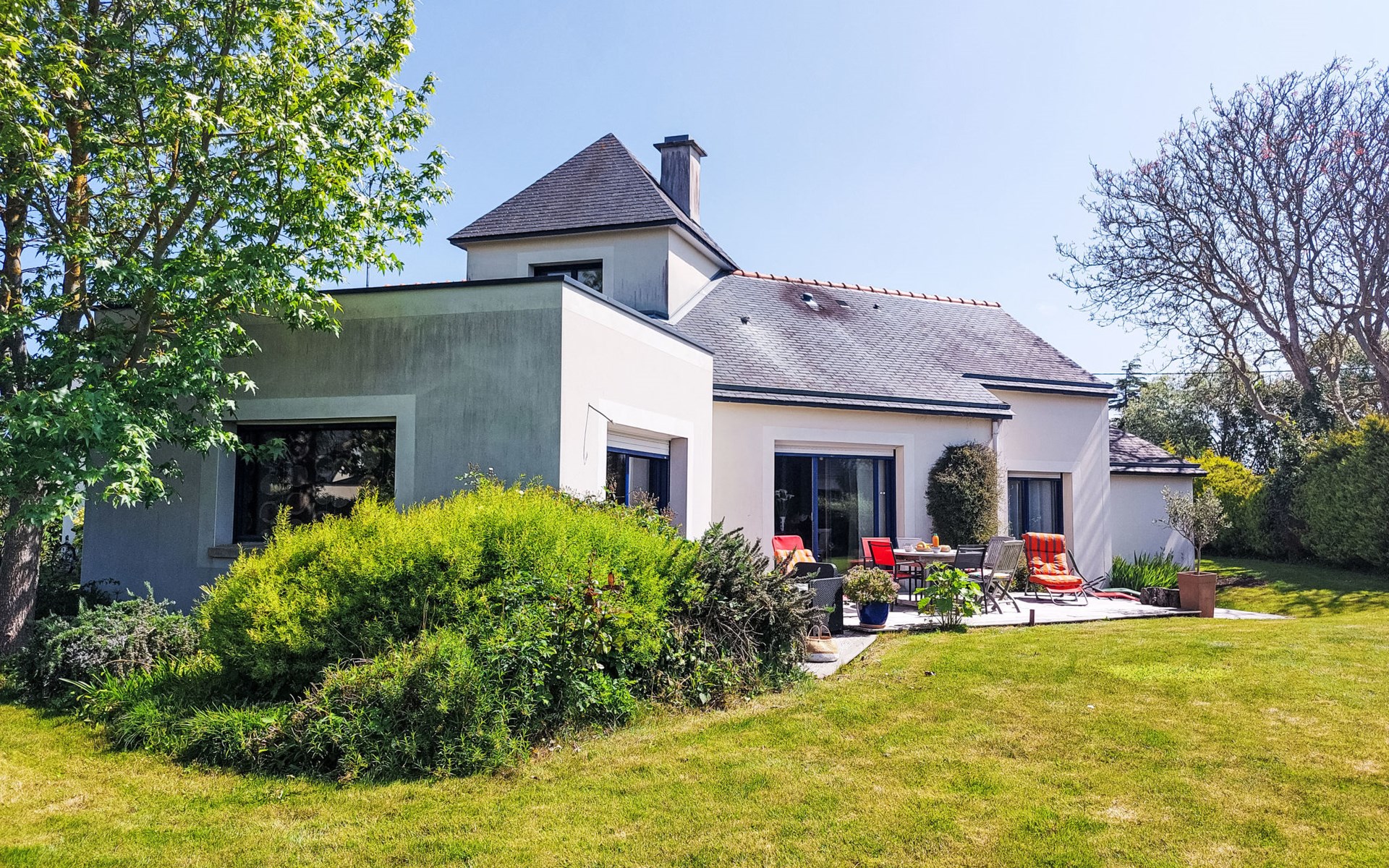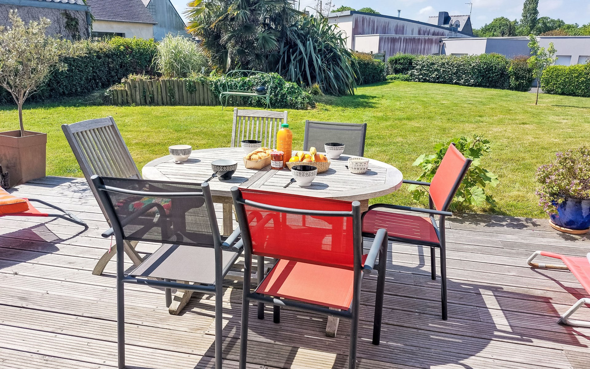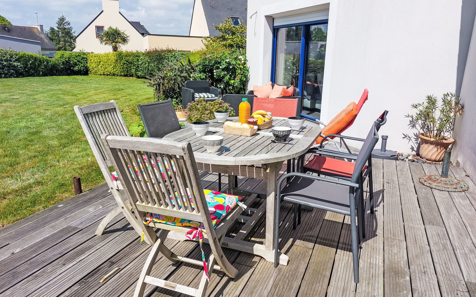 Single-family house "La Roche Blanche". 600 m from the centre of Hillion, in the residential district, 1 km from the sea, 1 km from the beach. Private: well-kept garden 1'000 m2 (not fenced) wildlife garden and trees, parking (for 2 cars) on the premises. Grocery, restaurant, bus stop 600 m, sandy beach "Plage de Bon Abri" 1 km. Nearby attractions: Pléneuf-Val André 15 km, Erquy 24 km, Cap Frehel 38 km, Binic, Etables sur Mer 26 km, St. Brieuc 15 km, St. Quay Portrieux 33 km. Hiking paths: GR34 50 m. Please note: car recommended.