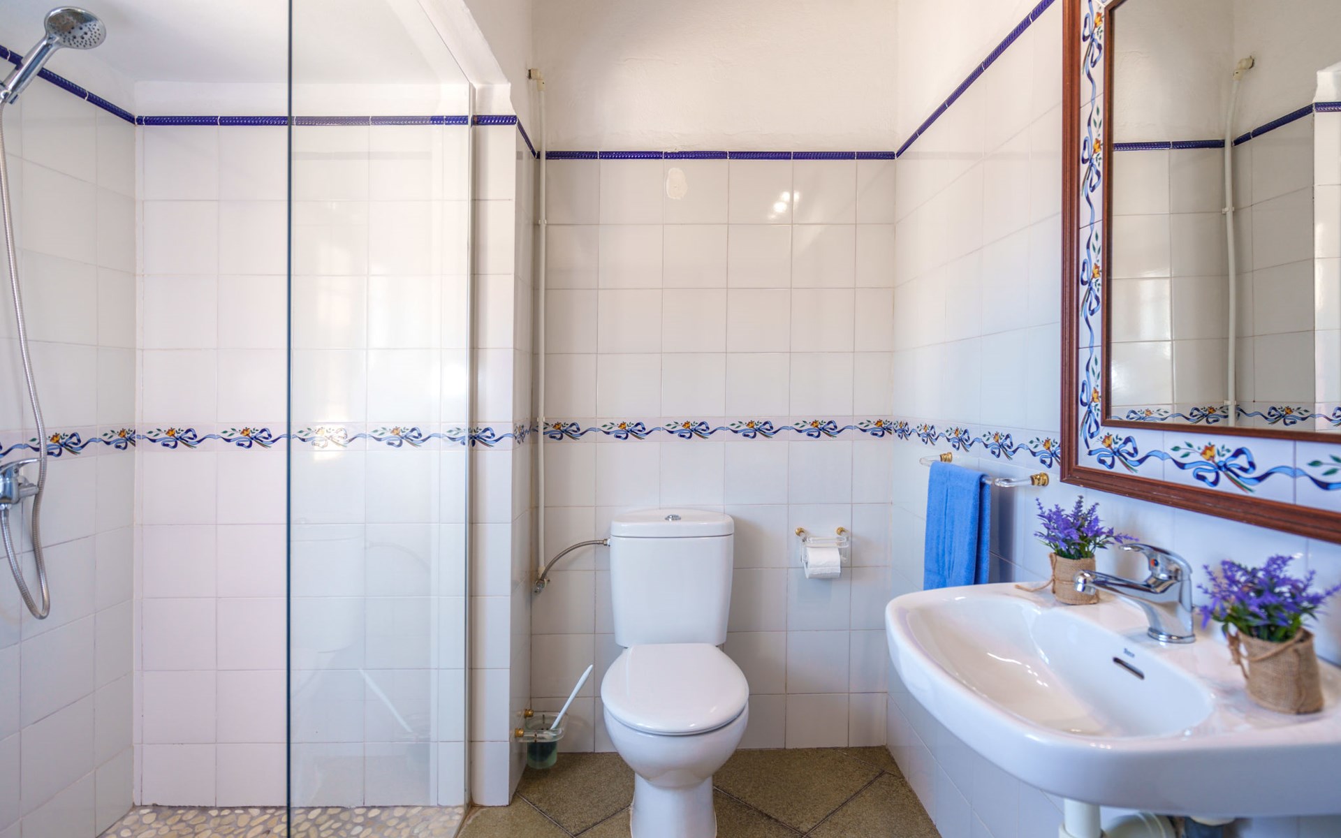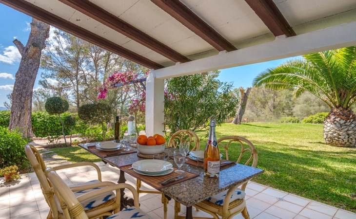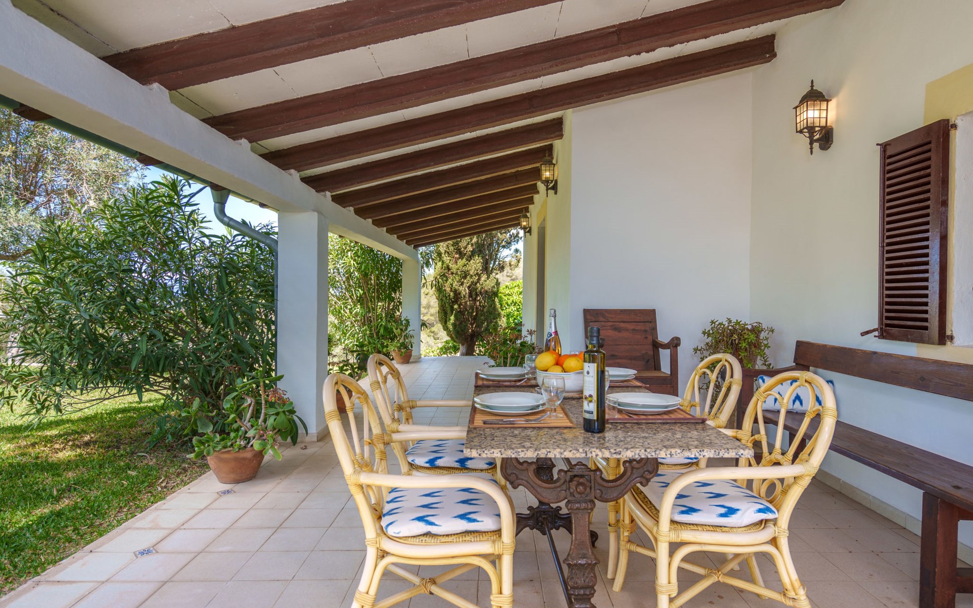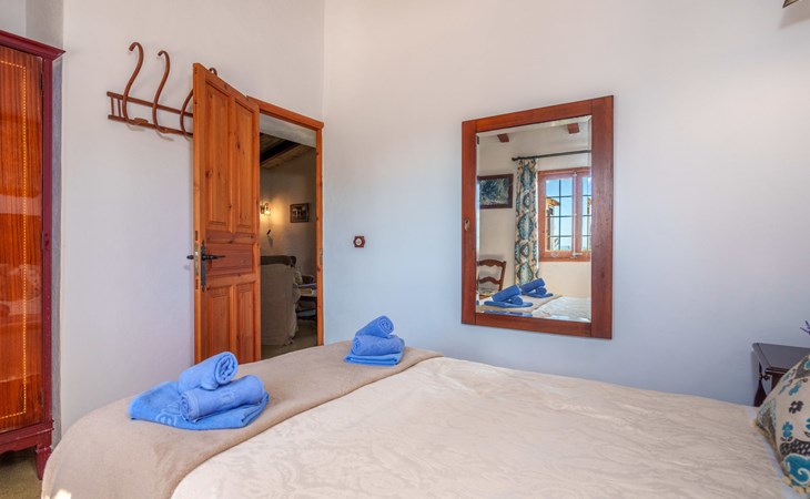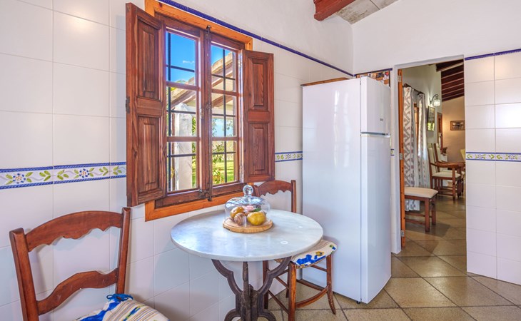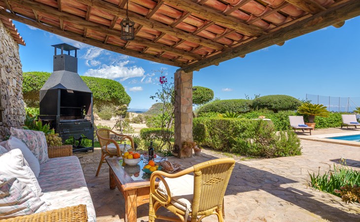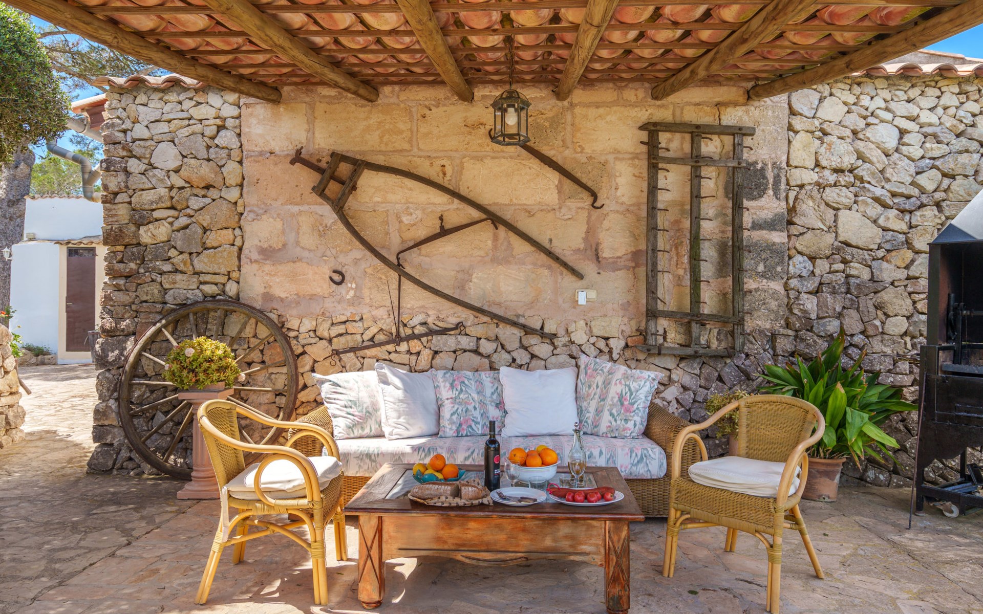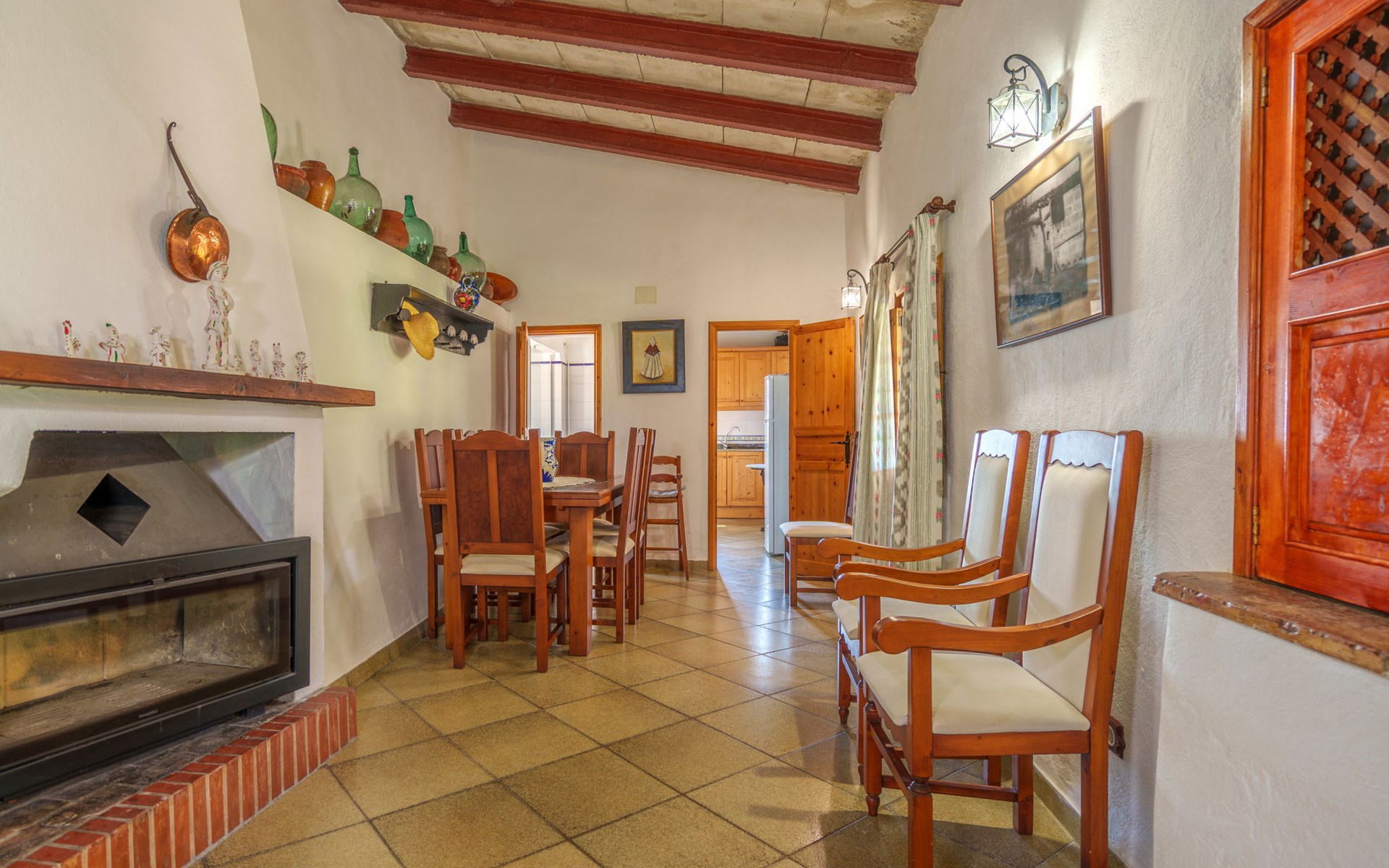 Sant Joan: Very beautiful, rustic farm estate "Sant Joan", surrounded by trees. Outside the resort, in a quiet, elevated position, 22 km from the sea. Private: garden with lawn and wildlife garden, swimming pool angular (10 x 5 m, seasonal availability: 01.Jan. - 31.Dec.). Patio, arbour, pergola, garden furniture, barbecue. In the house: internet access, WiFi, storage room for bicycles. 30 m long steep motor access to 40 m from the house. Parking at the house on the premises. Shop 1.8 km, grocery 1.8 km, supermarket 1.8 km, restaurant 1.8 km, bar 1.8 km, bakery 1.8 km, pub garden 1.8 km, 20 minute walk to the centre, bus stop 2 km, sandy beach "Can Picafort, Es trenc" 22 km, rocky beach "Can Picafort" 22 km. Sports harbour 22 km, marina 22 km, golf course (18 hole) 20 km, tennis 3 km, sports centre 3 km. Please note: car recommended. Suitable for families, suitable for seniors. Object suitable for 4 adults groups of teenagers on request only. Loading and unloading of baggage is possible at the holiday house. Airfield 37 km from the property. This house works with solar power.