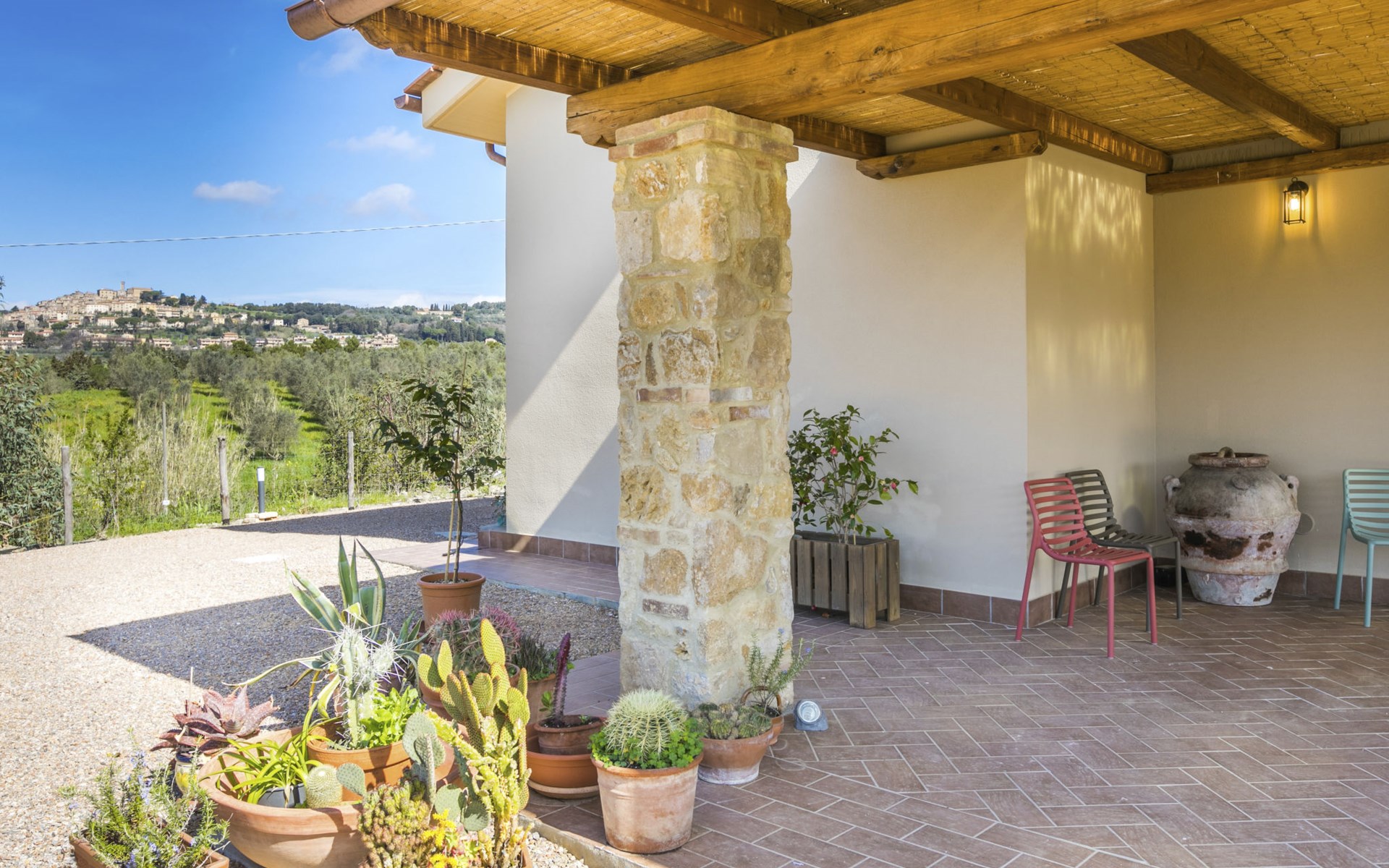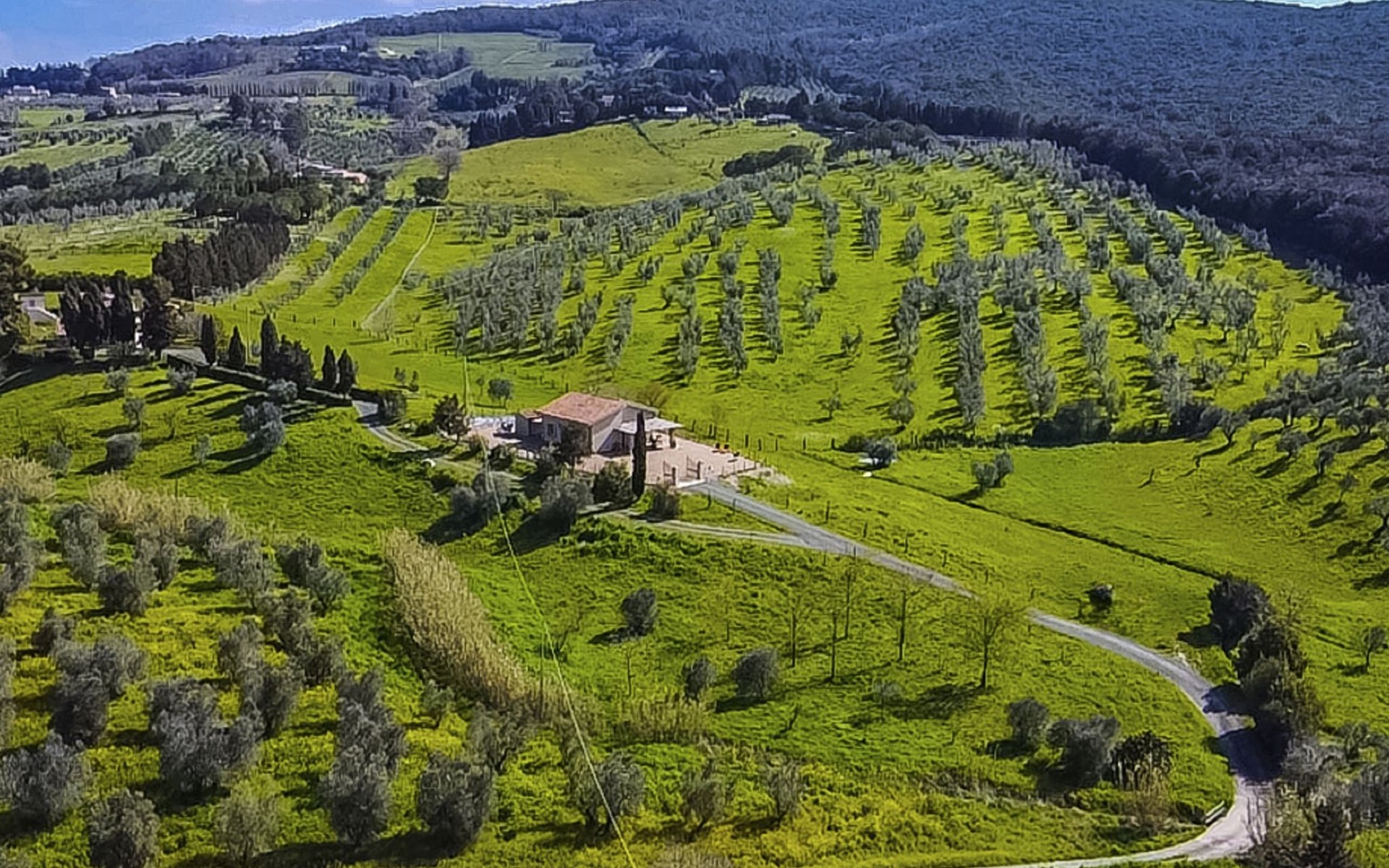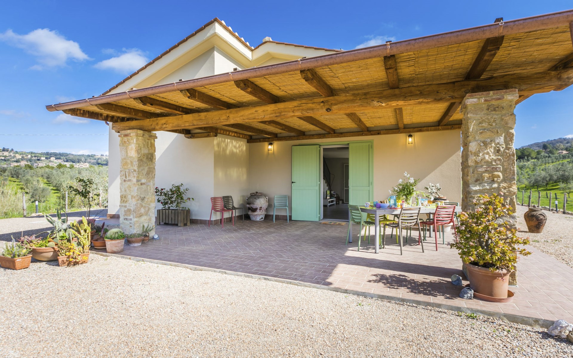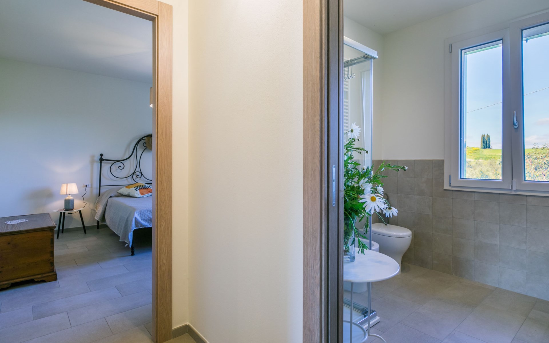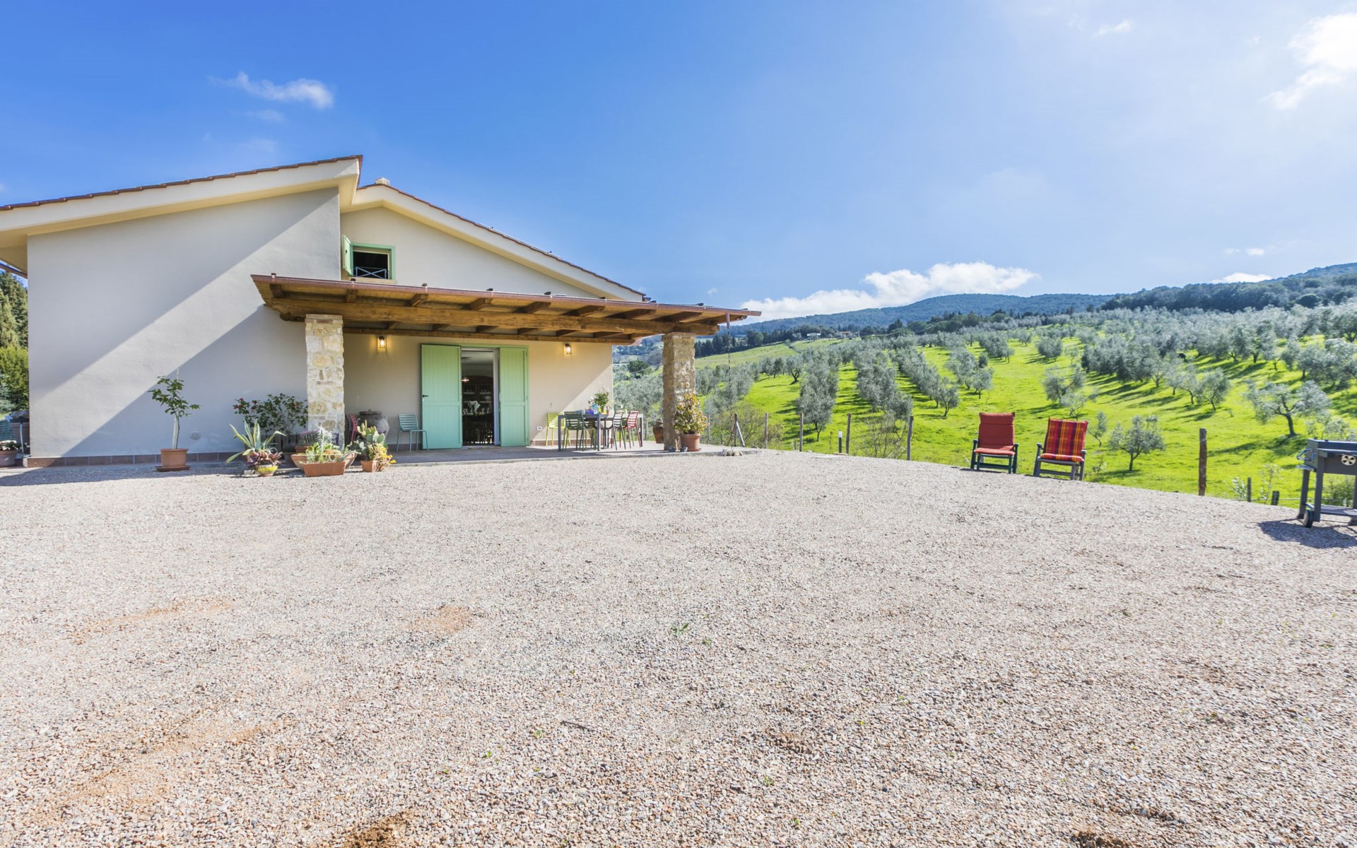 Modern, beautiful house "Nena", surrounded by fields and vineyards. 3 km from the centre of Casale Marittimo, 5.5 km from the centre of Bibbona, 13 km from the sea, 13 km from the beach. Private: property 4 ha, garden (fenced). Motor access (1 km via unmade road). Parking at the house. Grocery 3 km, supermarket 12 km, bar 3 km, bakery 3 km, bus stop "Bivio 3 Comuni" 2 km, sandy beach "Marina di Bibbona" 13 km, rocky beach "Castiglioncello" 33 km, thermal baths "Calidario" 36 km. Surf school 18 km. Nearby attractions: Bolgheri 11 km, Pisa 68 km, Lucca 94 km, Firenze 140 km.