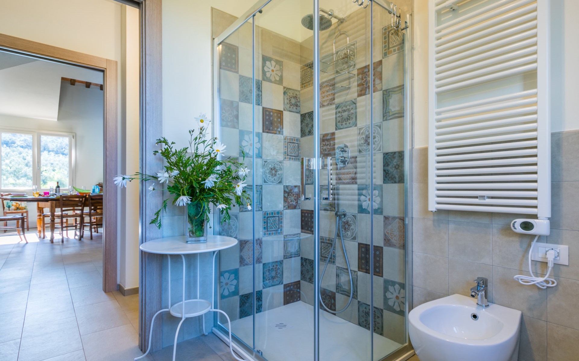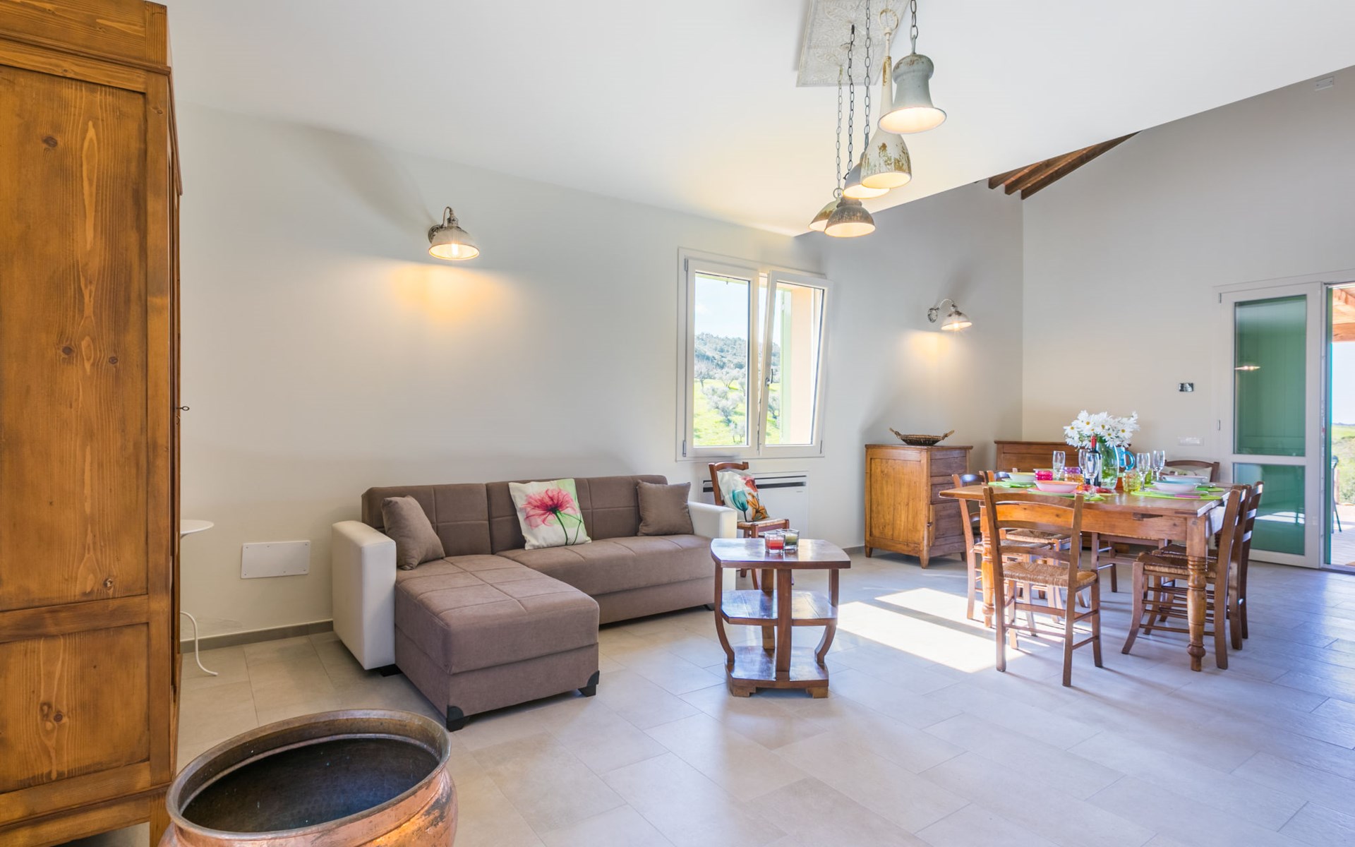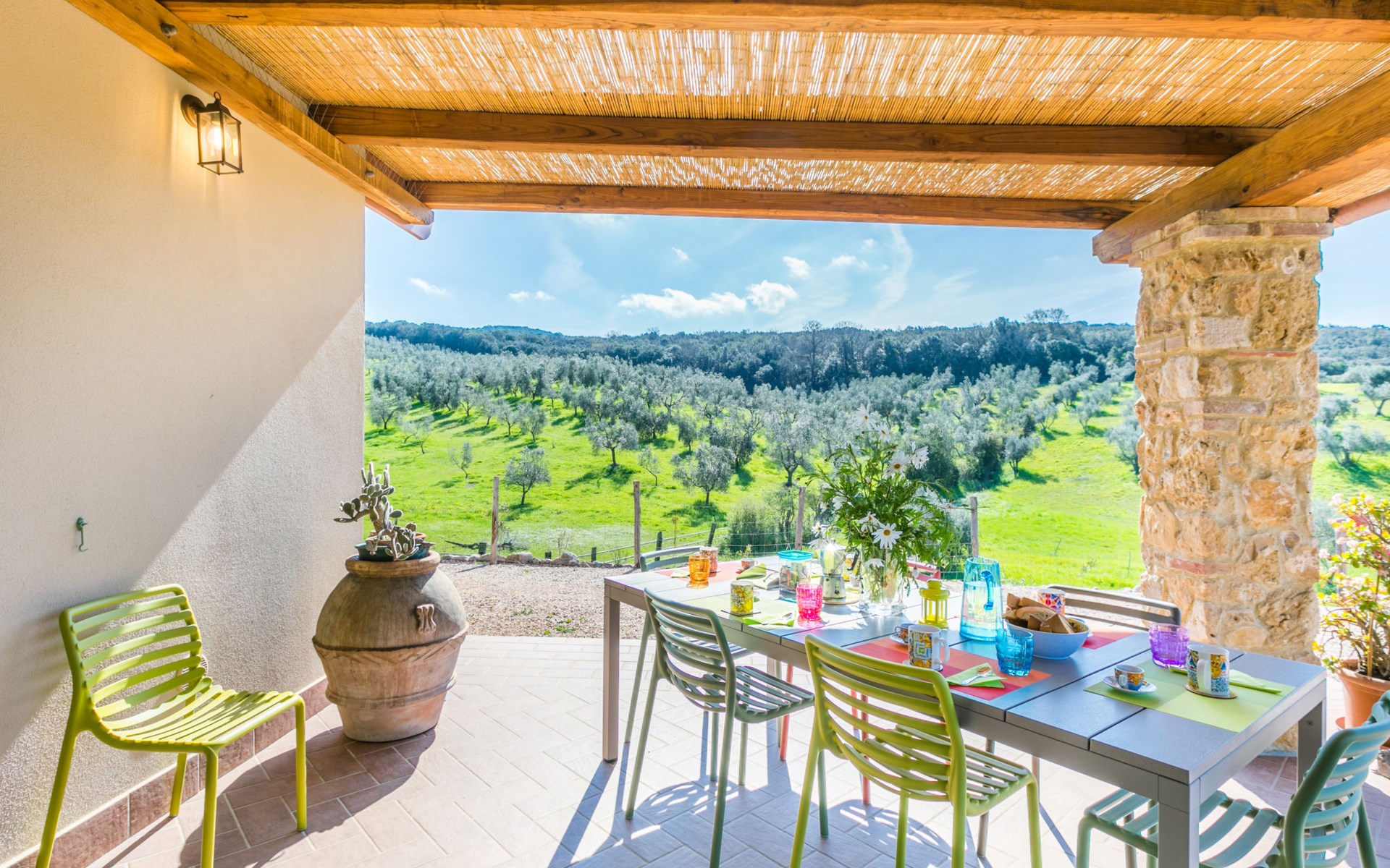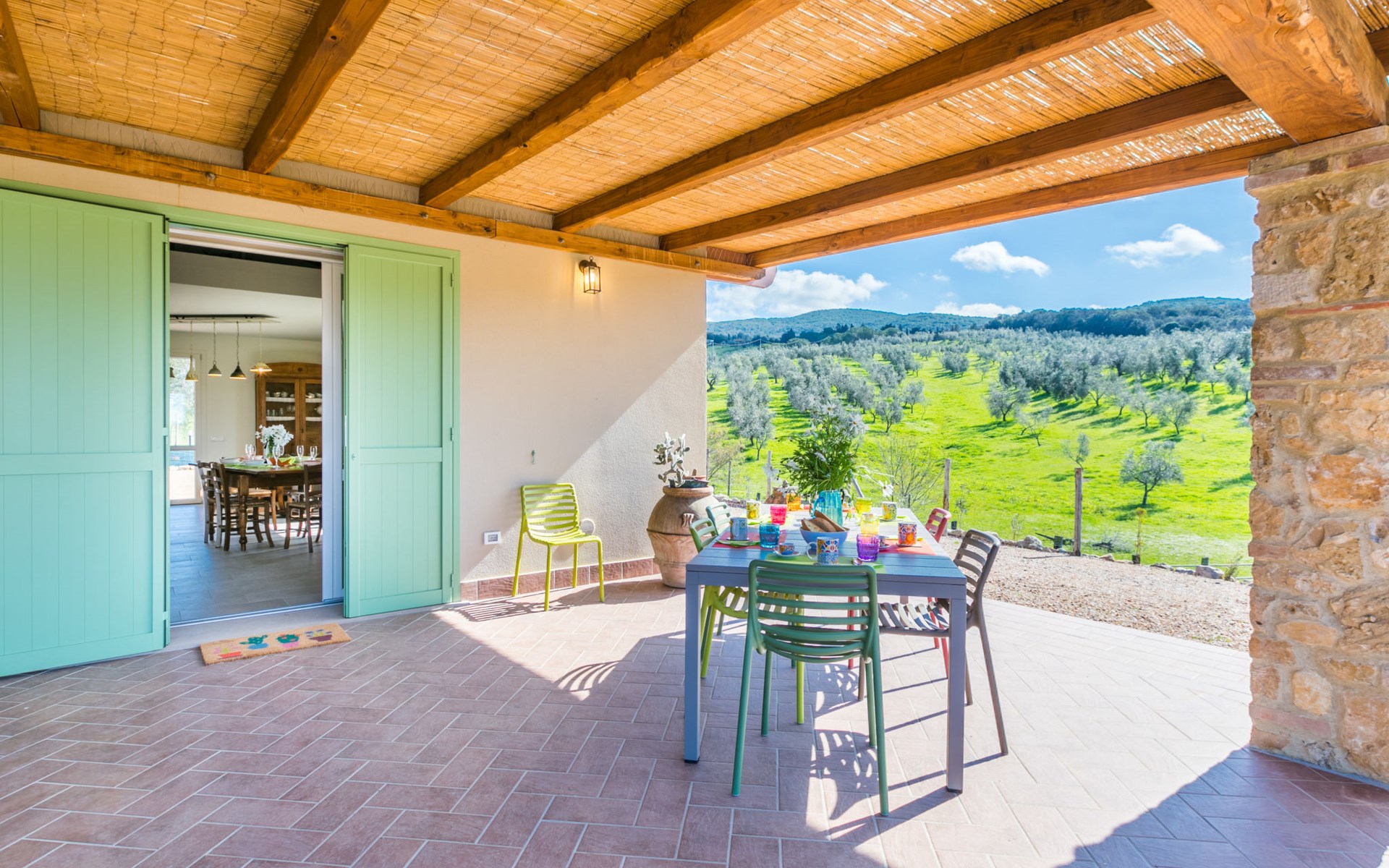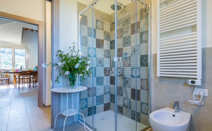 Modern, beautiful house "Nena", surrounded by fields and vineyards. 3 km from the centre of Casale Marittimo, 5.5 km from the centre of Bibbona, 13 km from the sea, 13 km from the beach. Private: property 4 ha, garden (fenced). Motor access (1 km via unmade road). Parking at the house. Grocery 3 km, supermarket 12 km, bar 3 km, bakery 3 km, bus stop "Bivio 3 Comuni" 2 km, sandy beach "Marina di Bibbona" 13 km, rocky beach "Castiglioncello" 33 km, thermal baths "Calidario" 36 km. Surf school 18 km. Nearby attractions: Bolgheri 11 km, Pisa 68 km, Lucca 94 km, Firenze 140 km.