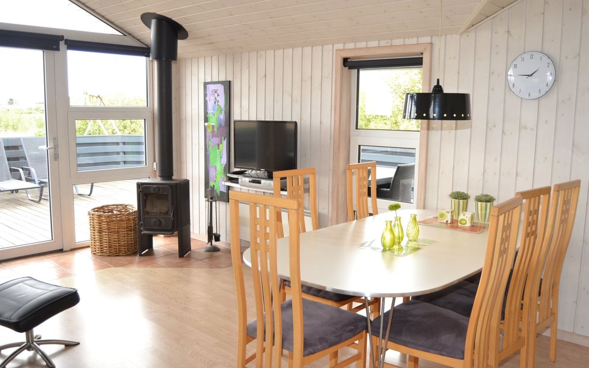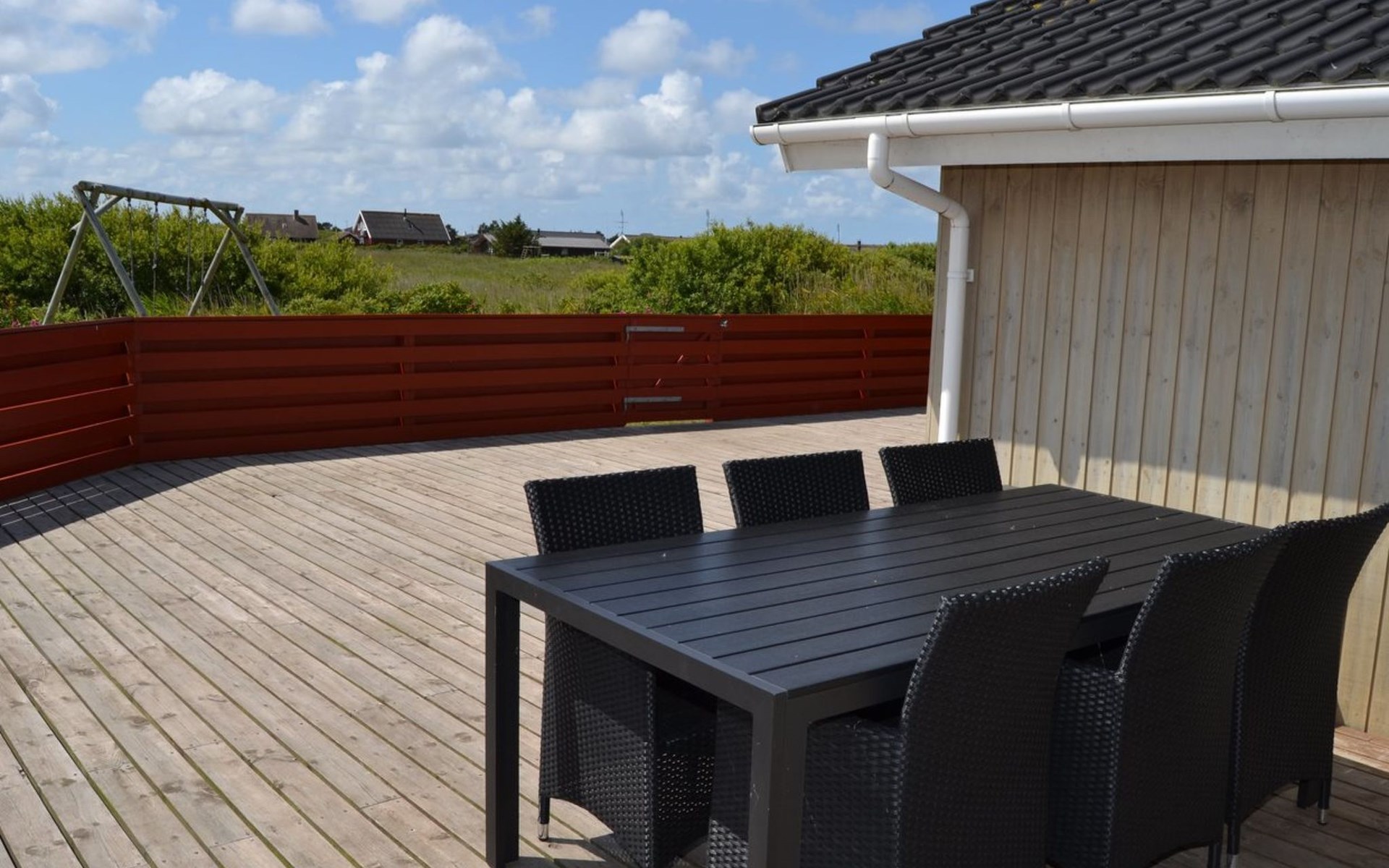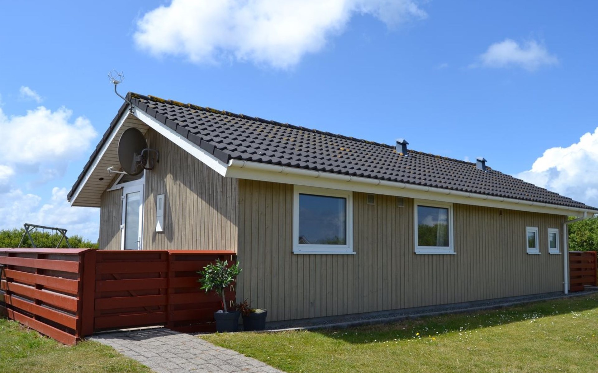 Single-family house, built in 2002. 700 m from the sea. Private: natural state property 1'200 m2. Children's playground (swing). In the house: sauna, washing machine, tumble dryer. Parking at the house. Grocery 800 m. The owner does not accept any youth groups.