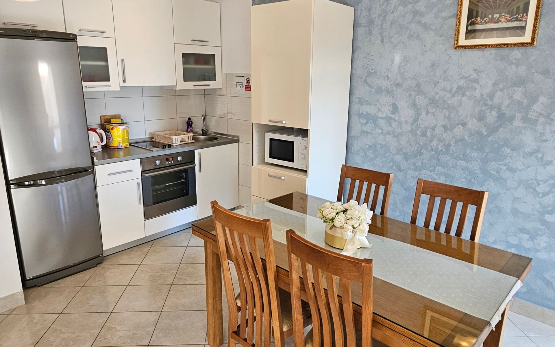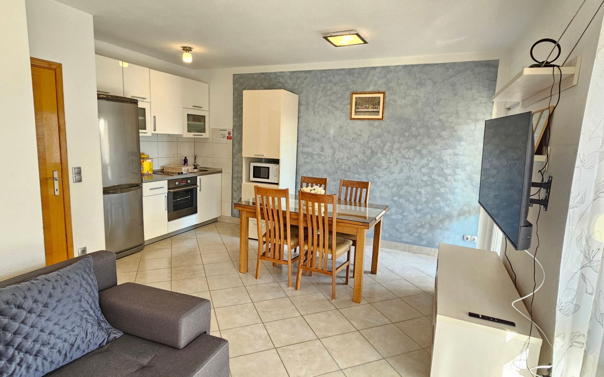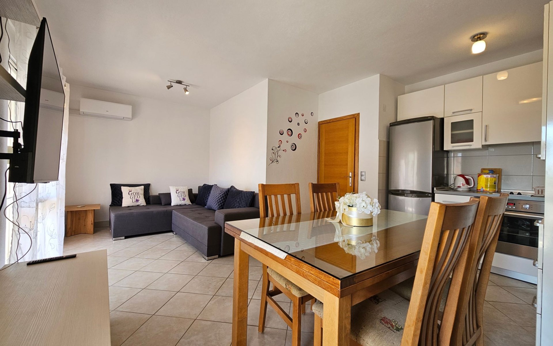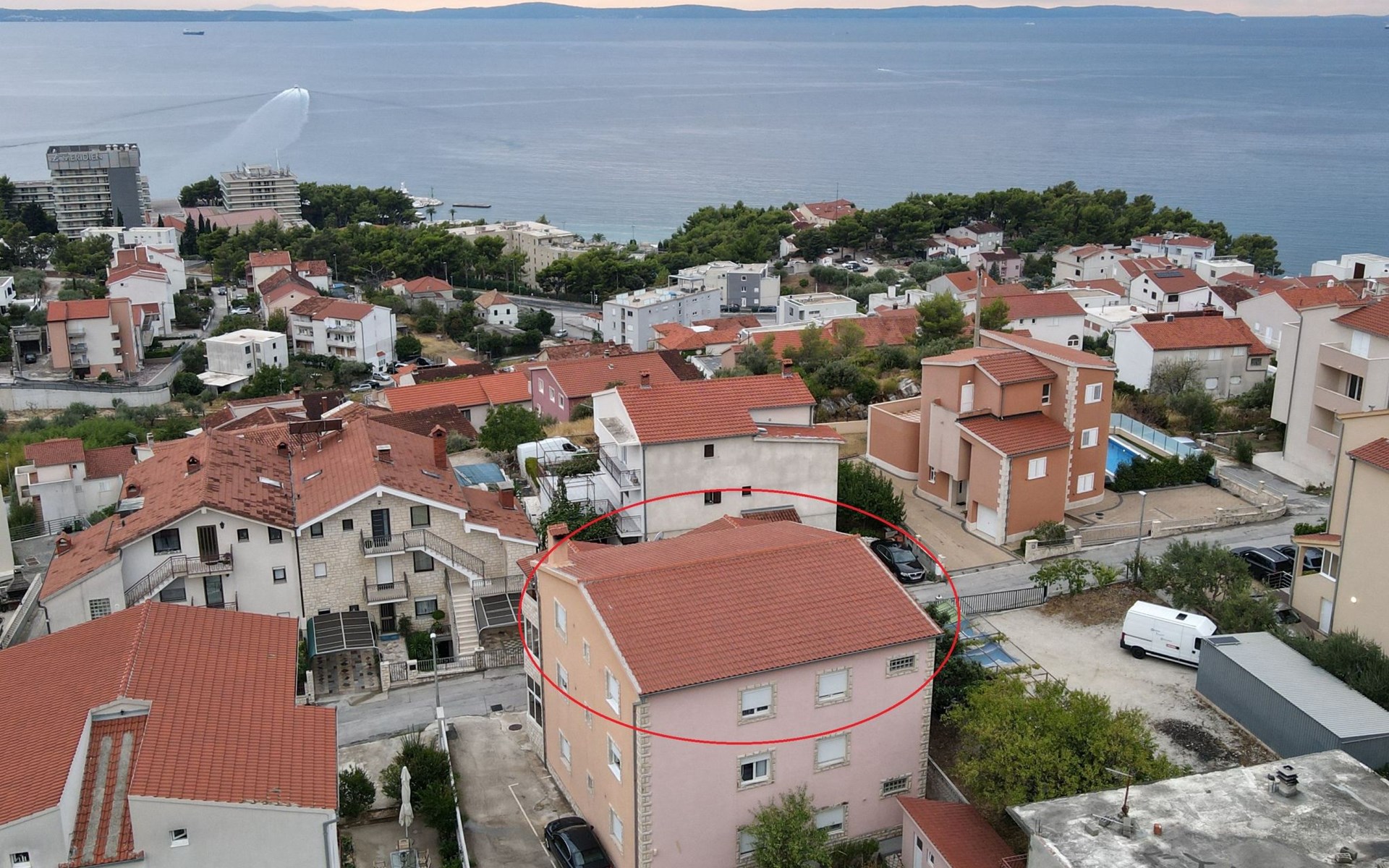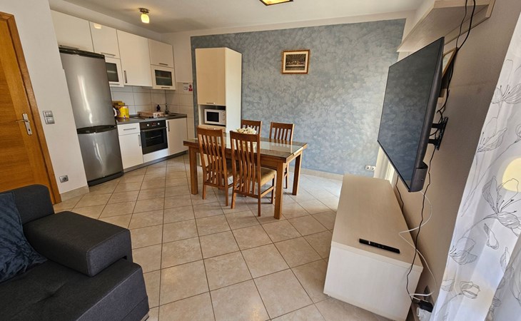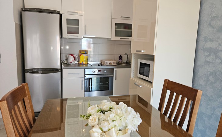 The nearest grocery store and a pizzeria restaurant are 400 meters from the apartments. Within a radius of 600 meters there are various types of beaches and Hotel Le Meridien. The apartment is only nine kilometers from the historic center of Split and Diocletian's Palace, ideal for day trips to visit world-famous cultural and historical heritage sites