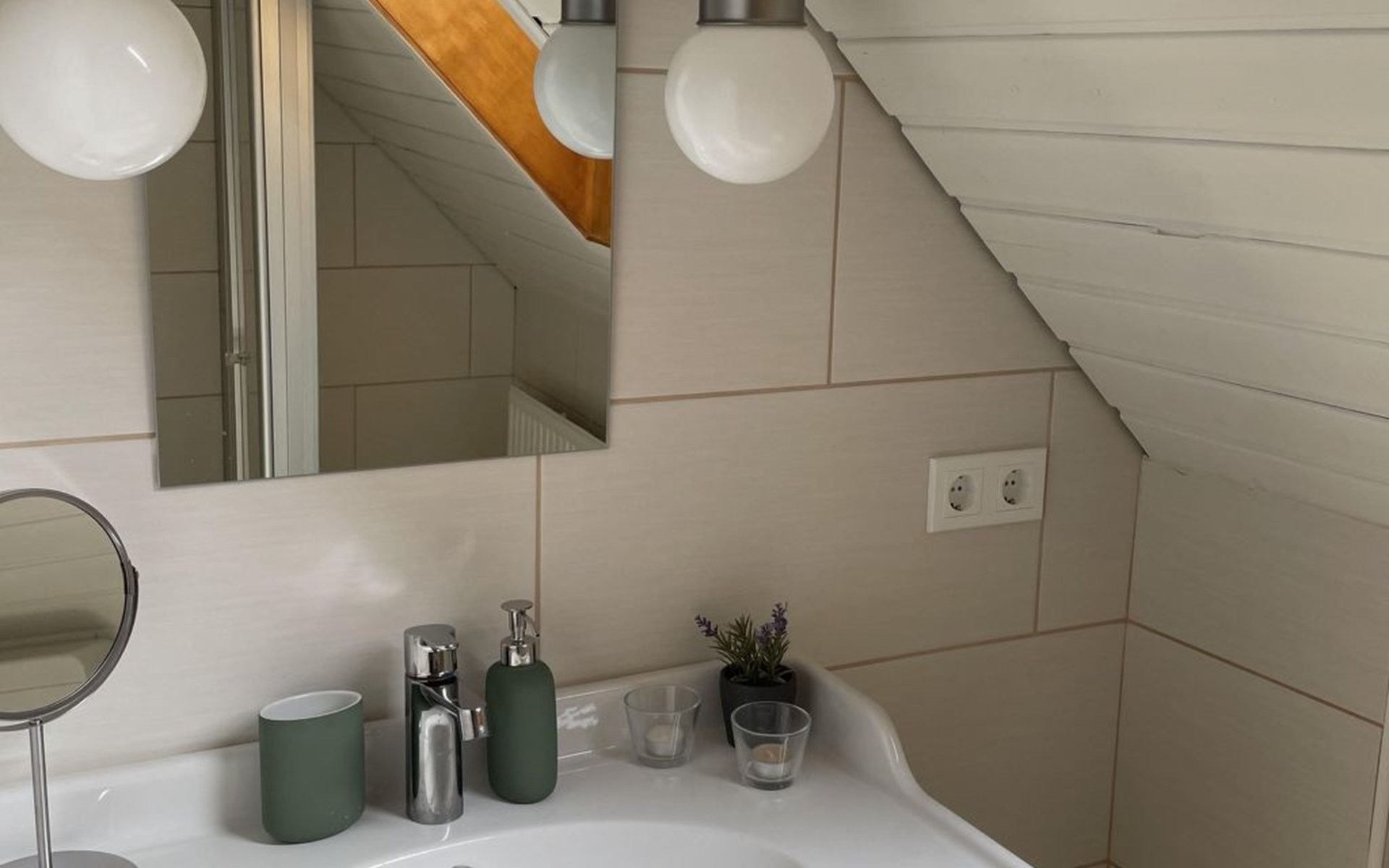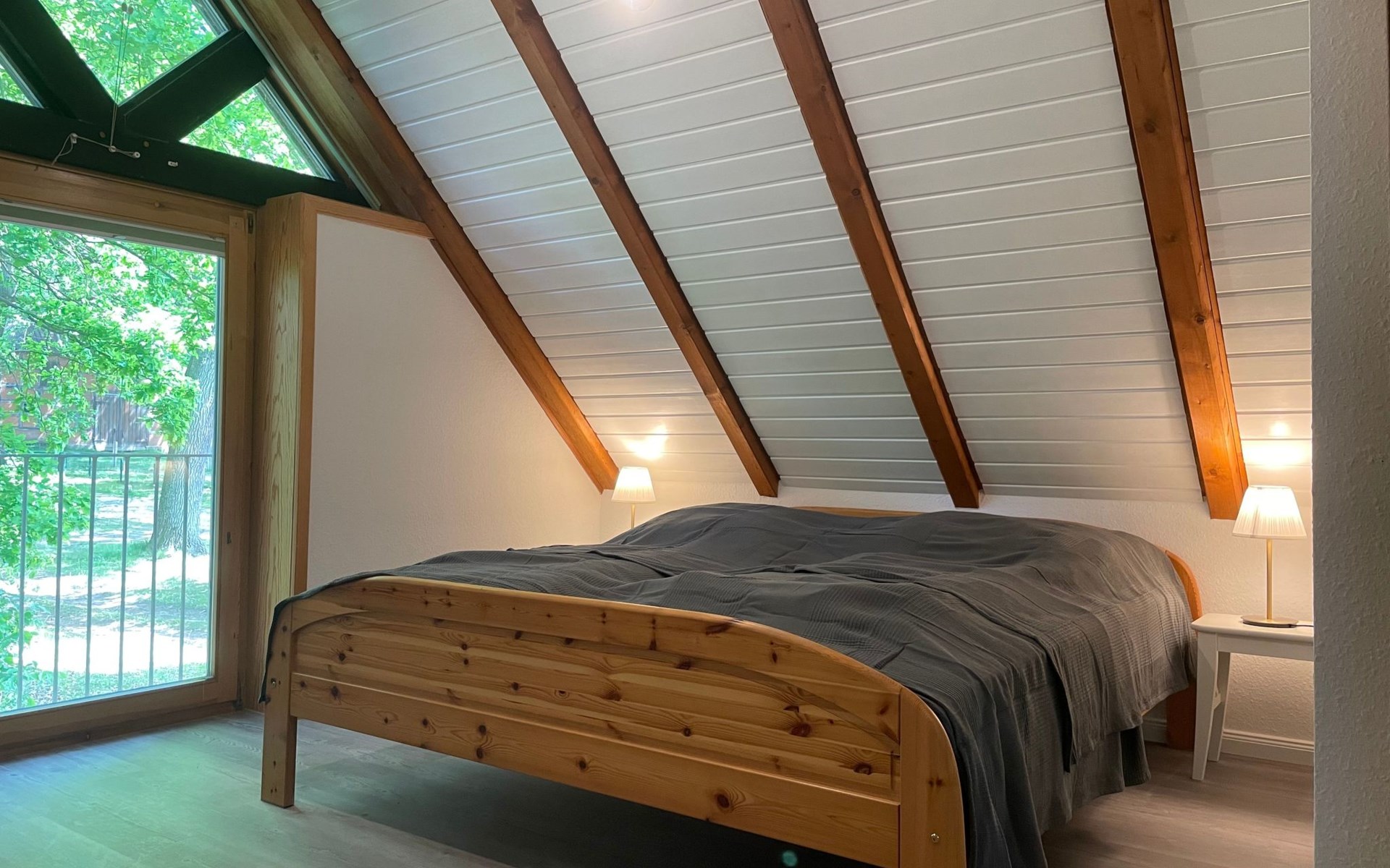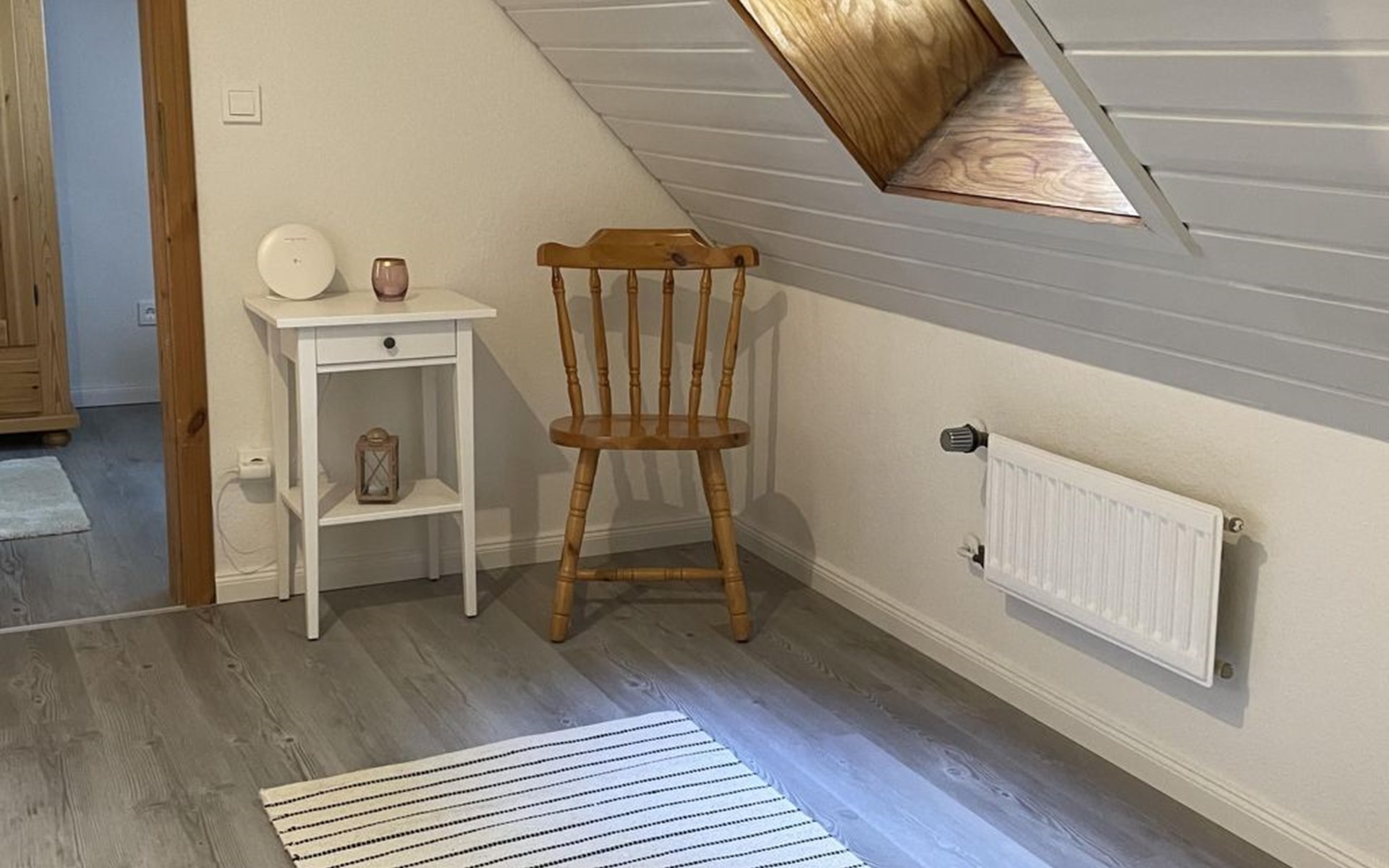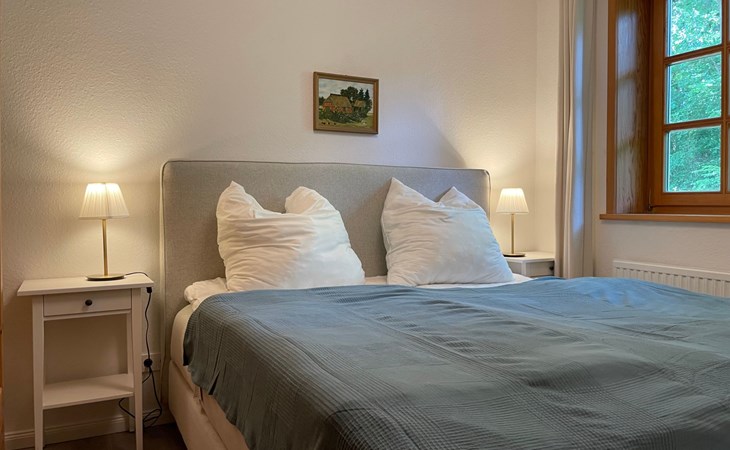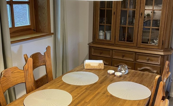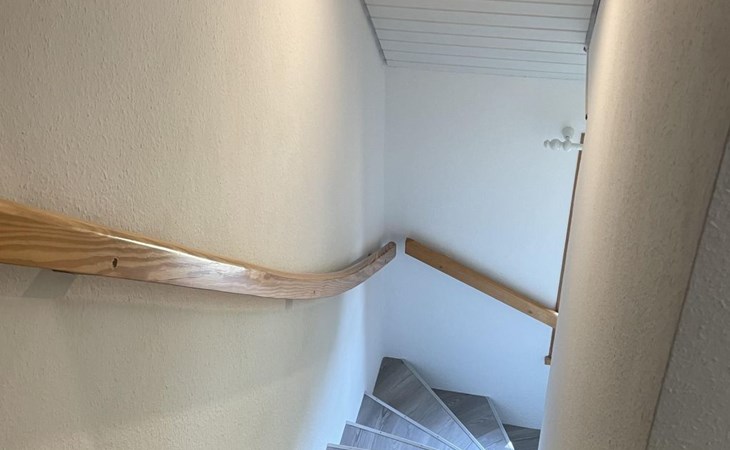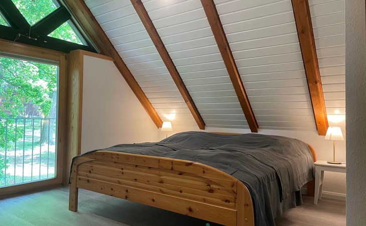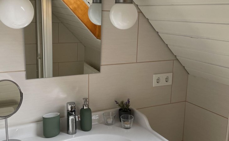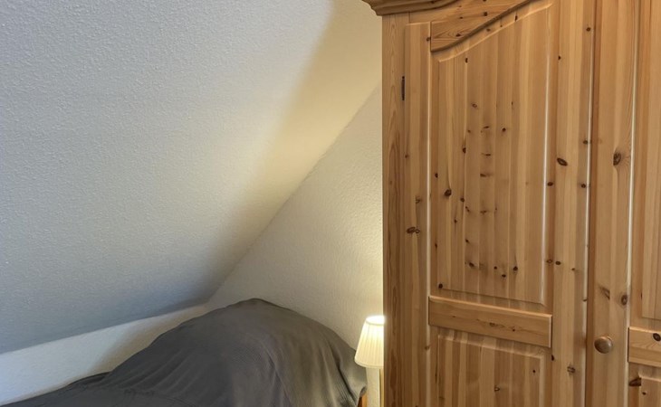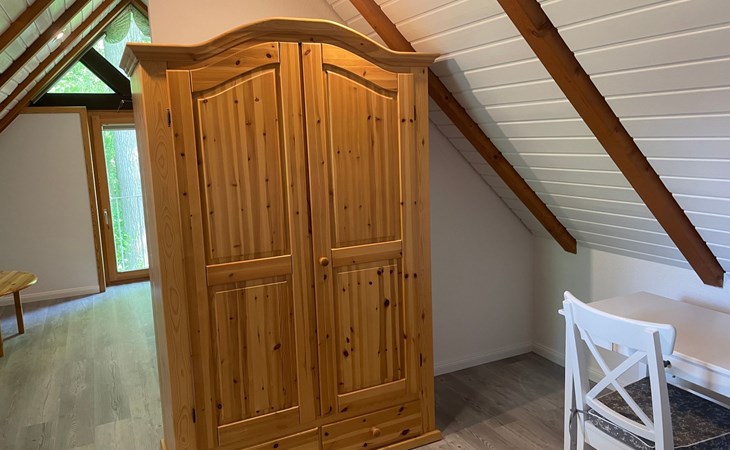The ground floor has a very cosy and spacious living room with a fireplace stove, a rustic kitchen and dining corner, satellite TV, wireless Internet access and a stereo system. There is a very well-equipped kitchen with a dishwasher, fridge with freezer compartment, stove with oven, toaster, coffee machine and an electric mixer. The separate bedroom is furnished with a double bed (180 x 200cm) and there is also a little storage room. A child’s bed is available on request. The shower room with a private sauna with seating for four people provides a feeling of well-being. There is also a separate WC with a washbasin. The attic has a rustic living and sleeping room with cosy sloped ceilings paneled with wood, a sleeping corner with a double bed (180 x 200cm), a lounge corner with comfortable seating and another separate bedroom with two single beds (90 x 200cm), as well as a shower room with a WC. There is a shelf with interesting literature and board games. All the rooms have gas central heating and the living room, hallway, shower room an WC on the ground floor are fitted with under-floor heating.
