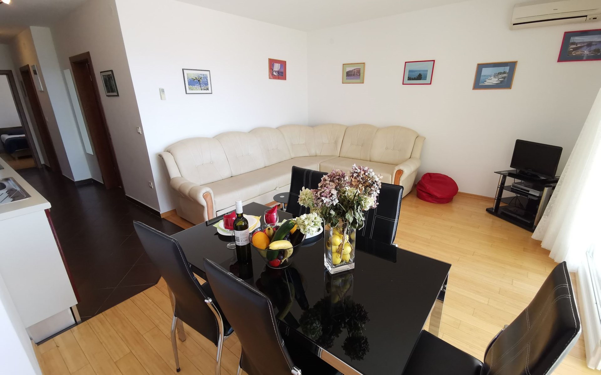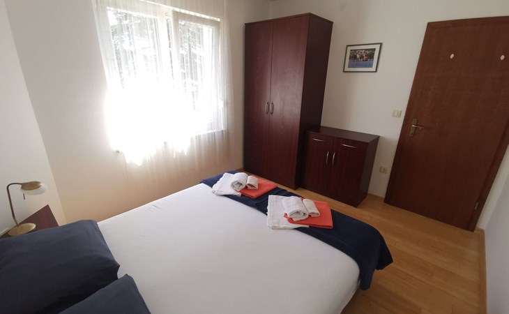 Inside, the apartment boasts a thoughtfully equipped kitchen alongside a cozy living room, tastefully furnished to ensure comfort during your stay. With sleeping arrangements including 2 bedrooms and an additional sleeping couch for 1 person in the living area, there's ample space for everyone to relax and enjoy. The inclusion of air conditioning ensures your comfort no matter the season, while the Sat TV and Internet keep you connected and entertained. The bathroom, equipped with a shower, provides all the necessities for refreshing after a day of adventure.
