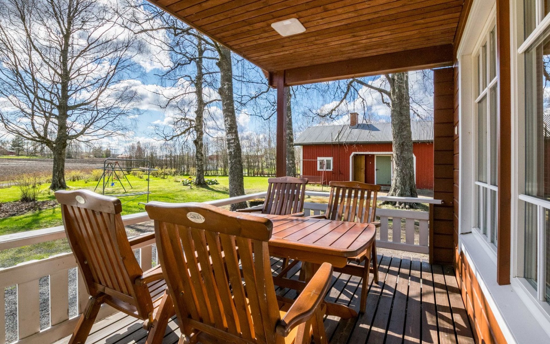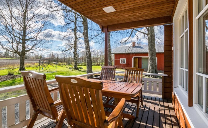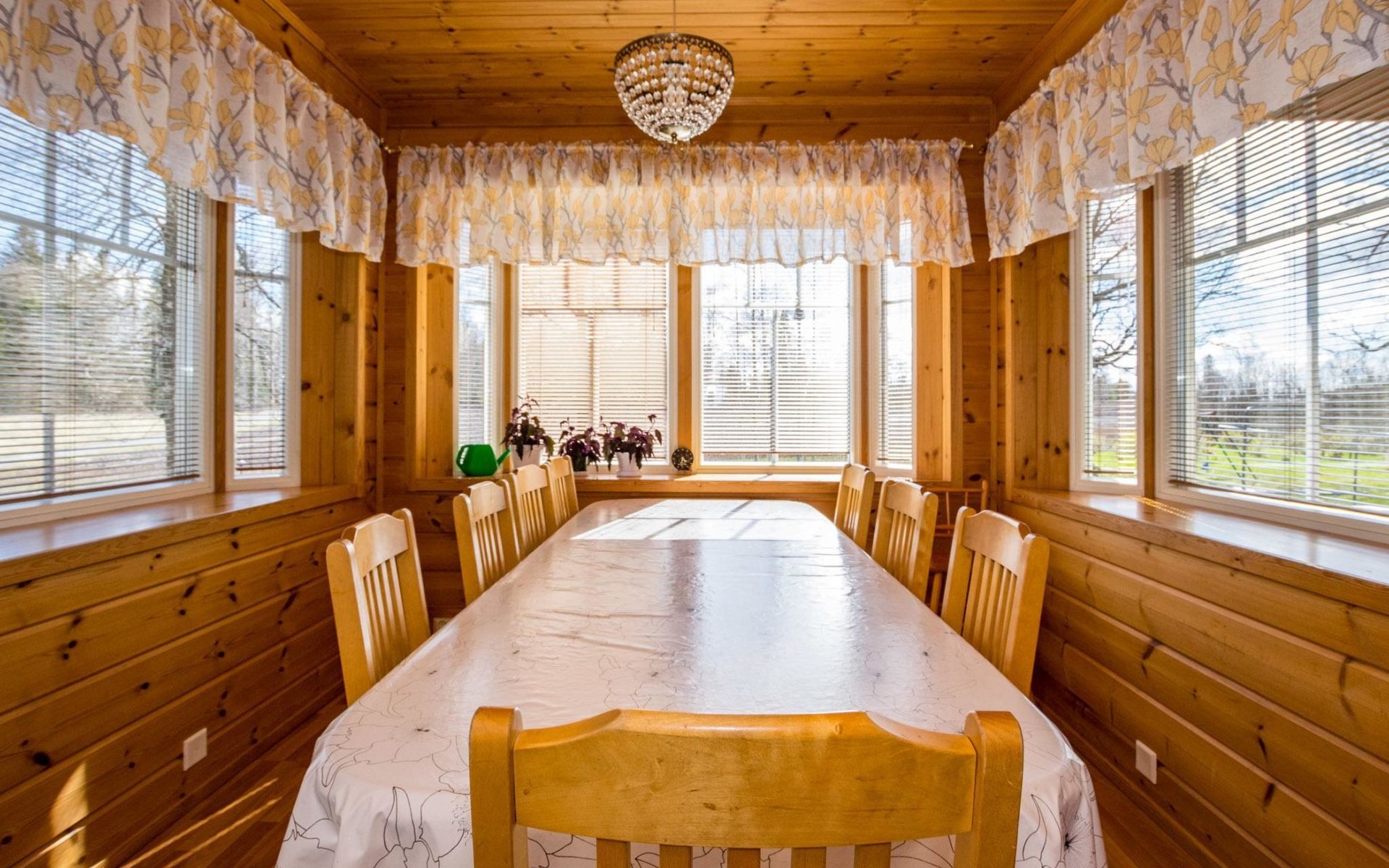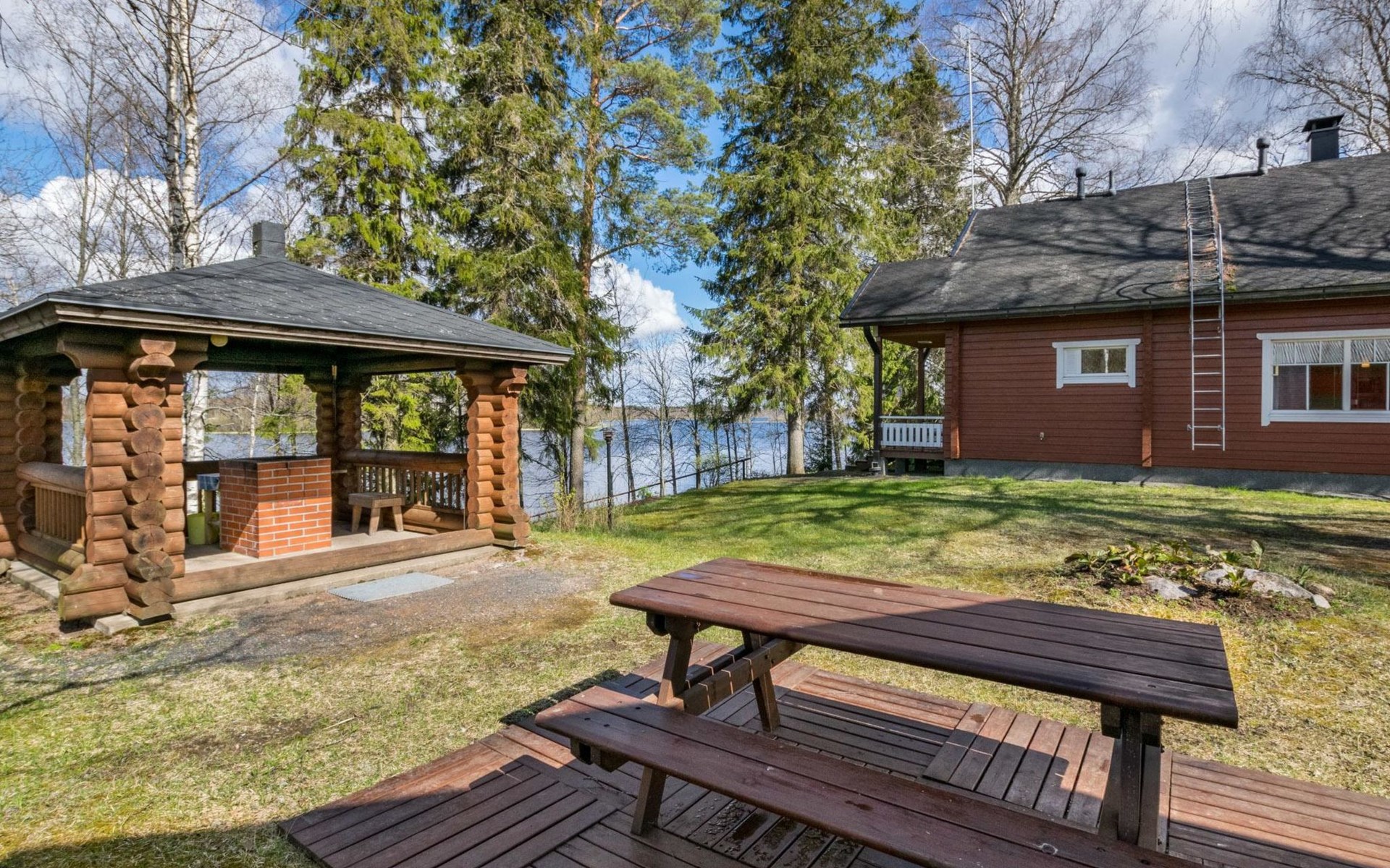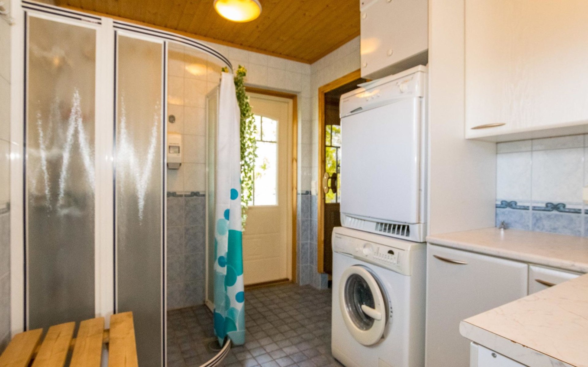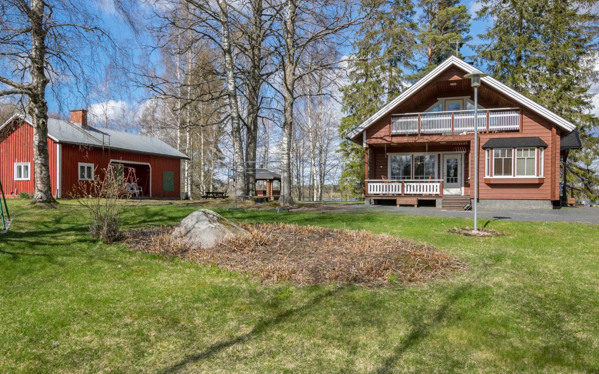 Yard building 35 m², with wood-burning sauna, dressing room, living room, sauna has elec. light and cold water. There is an air source heat pump with cooling and warming functionality on the cabin.