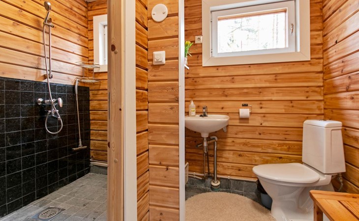 70 km east of Kuopio. Lake Vihtajärvi 10 m (length 3,5 km, breadth 1 km), deep water, gravel bottom. Pier, own boat. Log cabin 1983, renovated 2002 and completely renovated in 2022, kitchen/living room with 1 extra bed, 2 bedrooms with 2 beds in each, sauna, dressing room, shower room, open veranda.