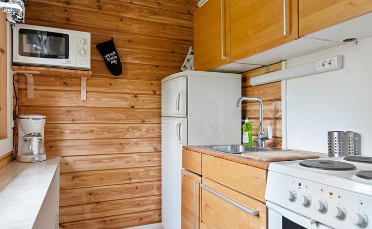 Campfire and charcoal grill (the customer brings the coals), also two barbecue huts in shared use by the cottages in the area.