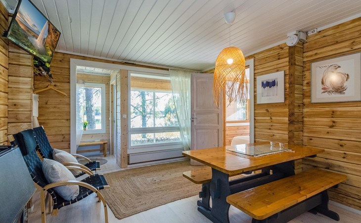 A wood fired outside hot tub for rent for 6 people all year round. The availability of the tub must be checked in advance (rented between several cottages). The rent of the tub will be paid to the owner.