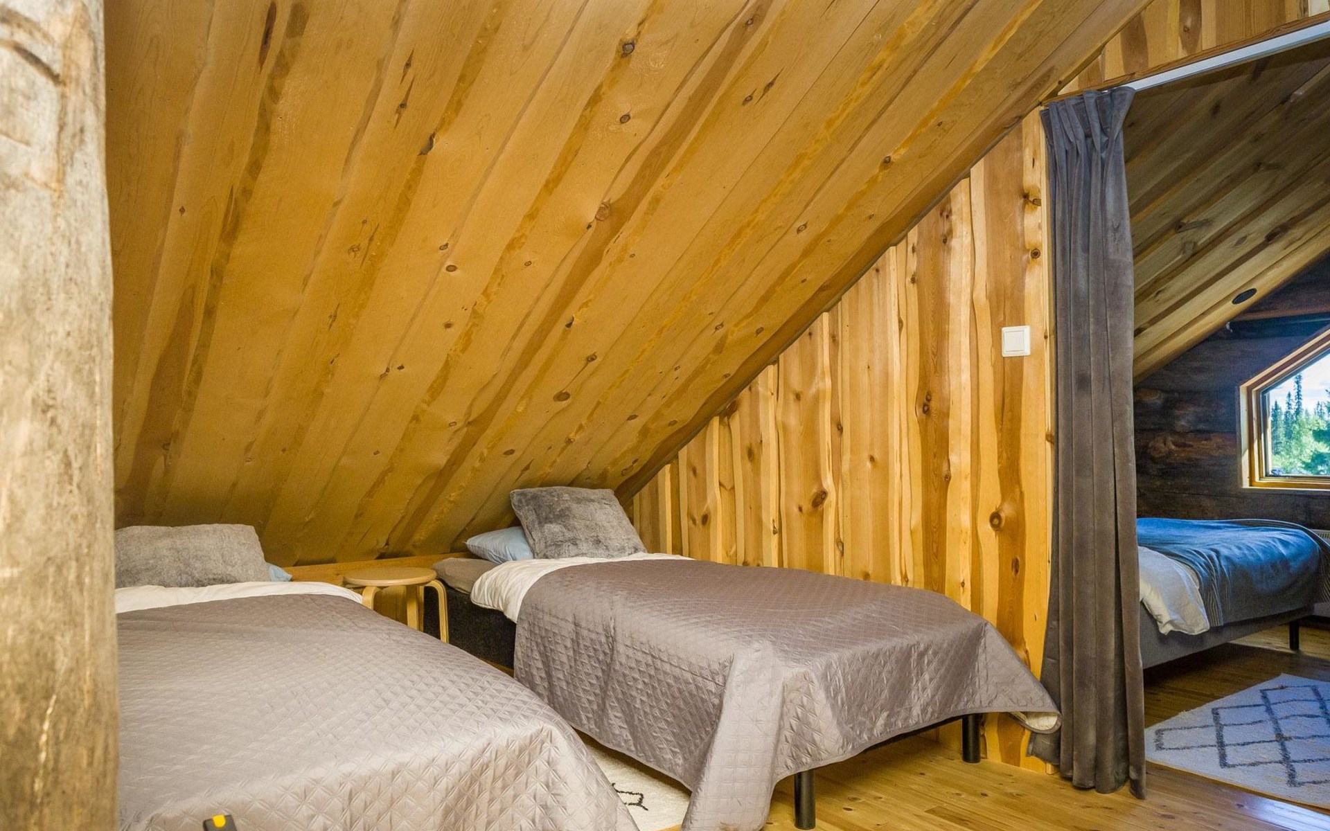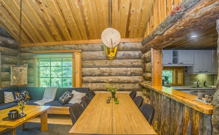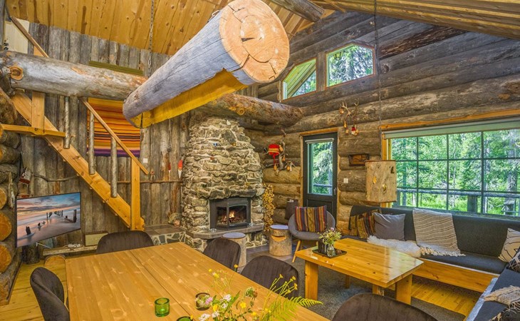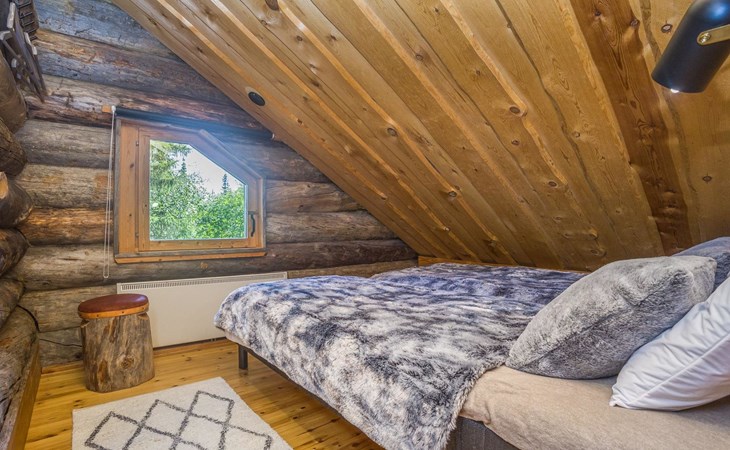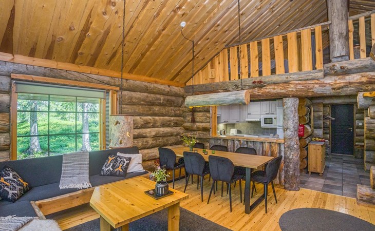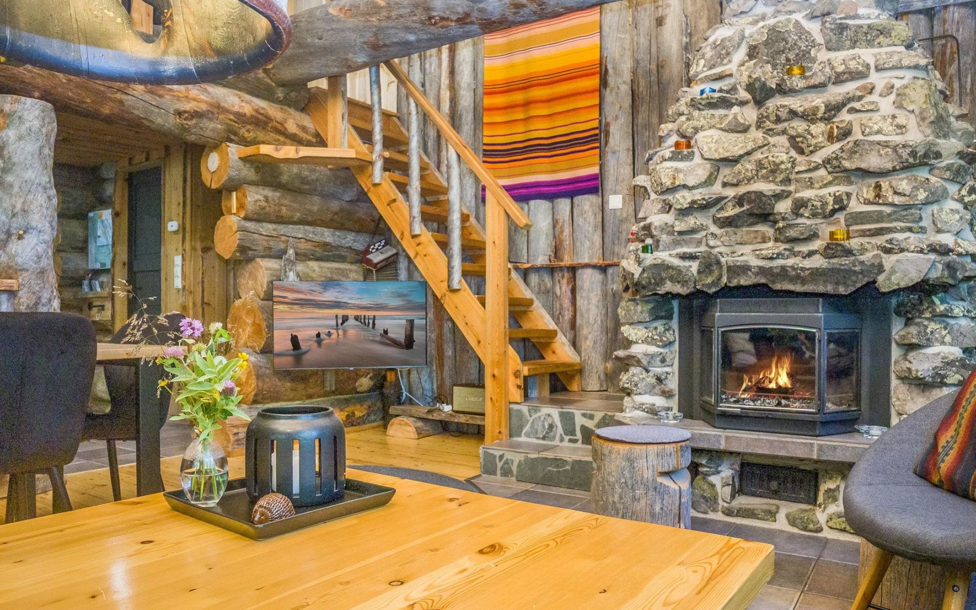 The open and cozy living area invites you to spend time in the warmth of the fireplace, while the well-equipped kitchen makes cooking easy and effortless. The holiday is crowned by a spacious washroom and a private sauna, where you can relax after a day of outdoor activities. Additional information: From the cabin, you can easily access the fells, with the first trails of the national park starting just a few hundred meters away. Ski trails and hiking routes are 200 meters away. The bus stop is 350 meters from the cabin, so it is possible to reach the location without a car.