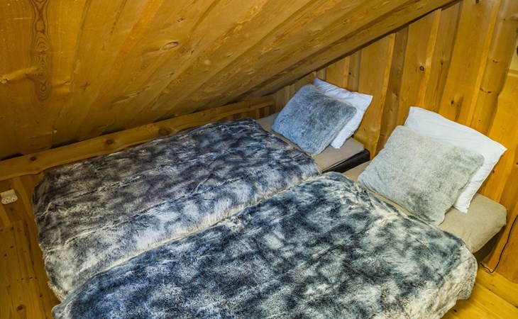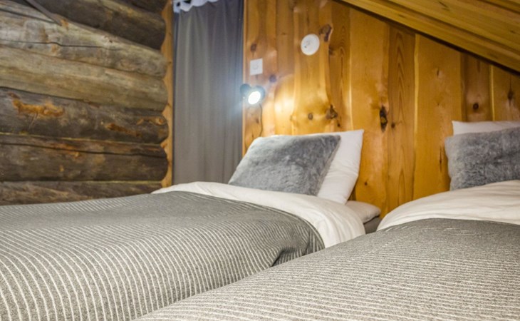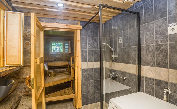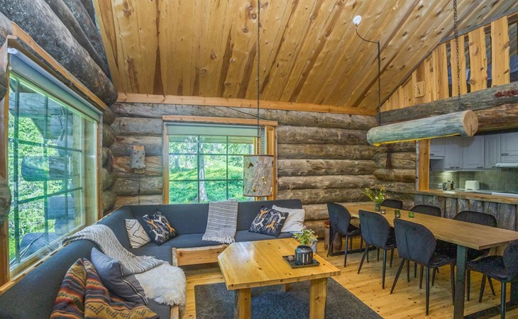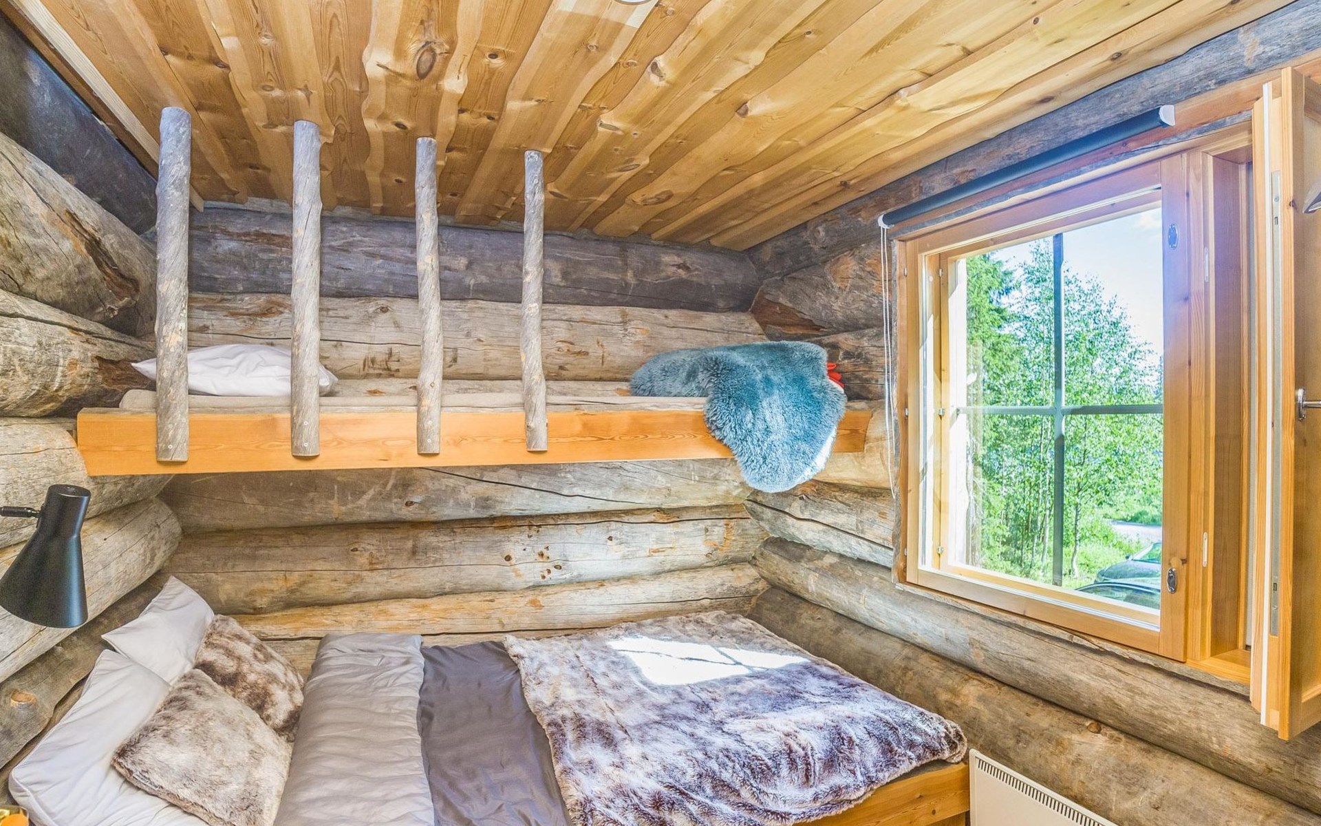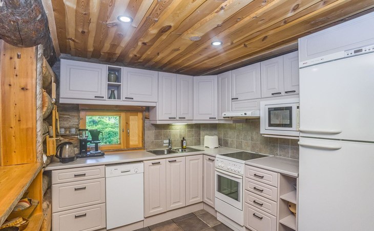 The open and cozy living area invites you to spend time in the warmth of the fireplace, while the well-equipped kitchen makes cooking easy and effortless. The holiday is crowned by a spacious washroom and a private sauna, where you can relax after a day of outdoor activities. Additional information: From the cabin, you can easily access the fells, with the first trails of the national park starting just a few hundred meters away. Ski trails and hiking routes are 200 meters away. The bus stop is 350 meters from the cabin, so it is possible to reach the location without a car.