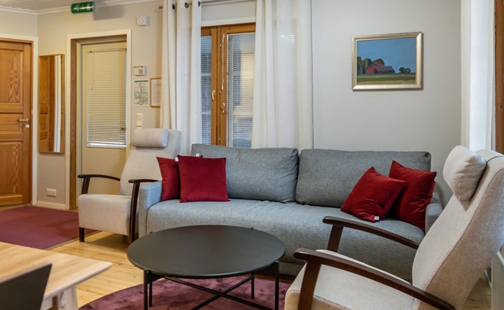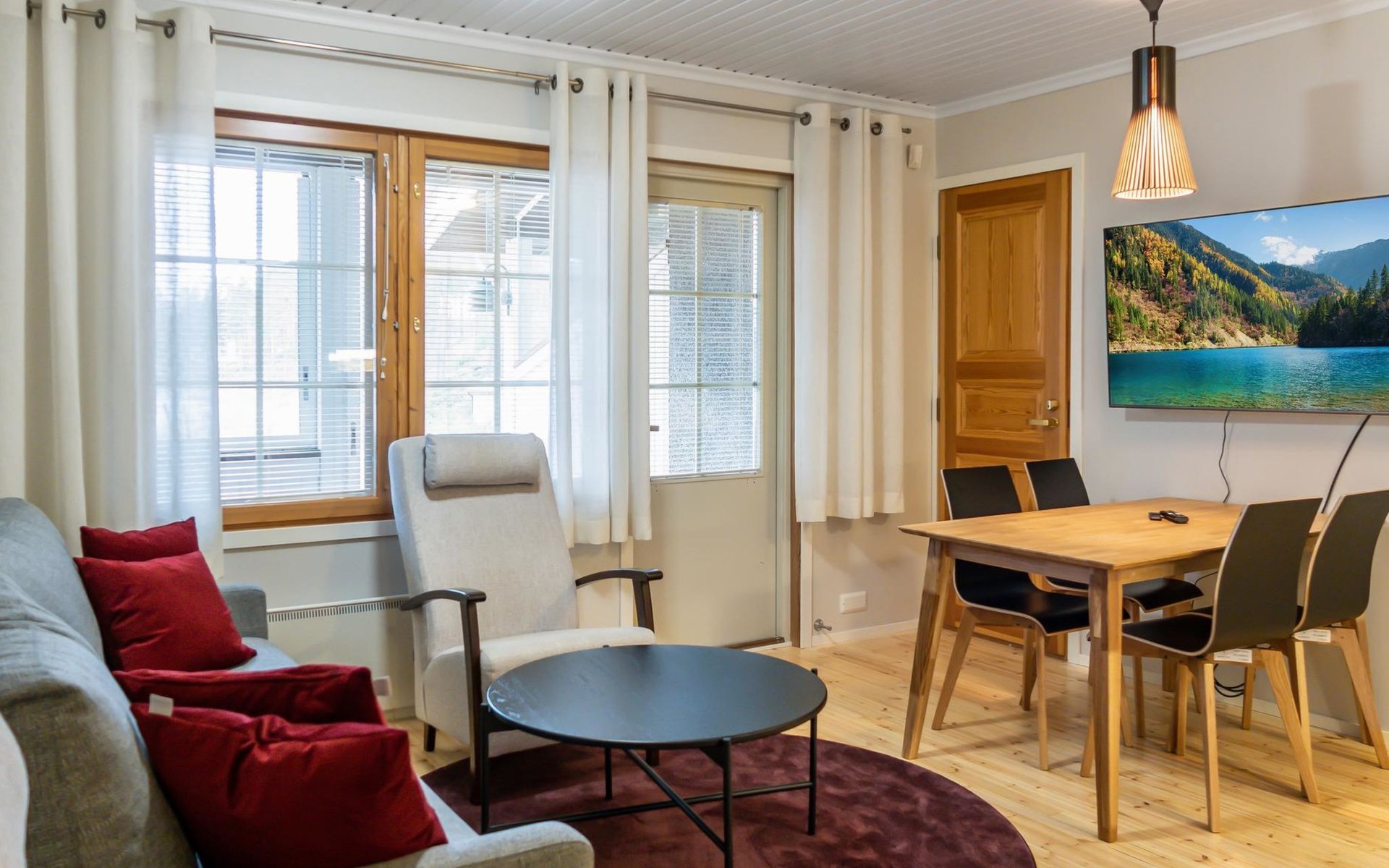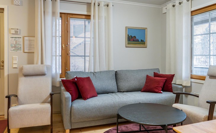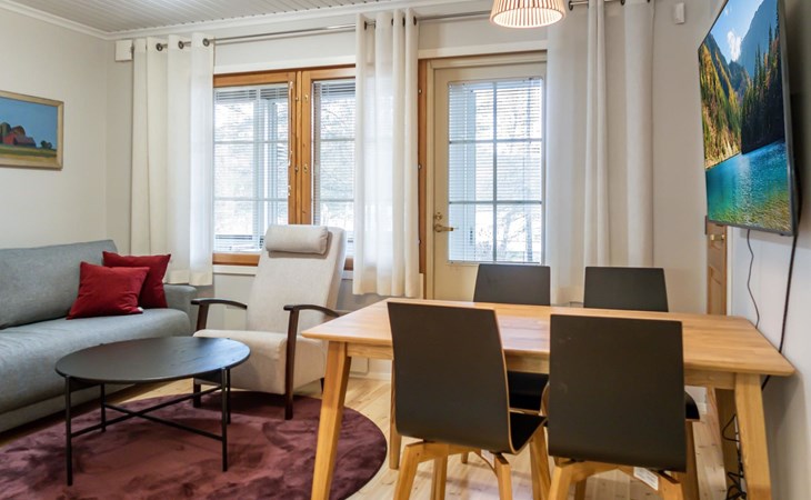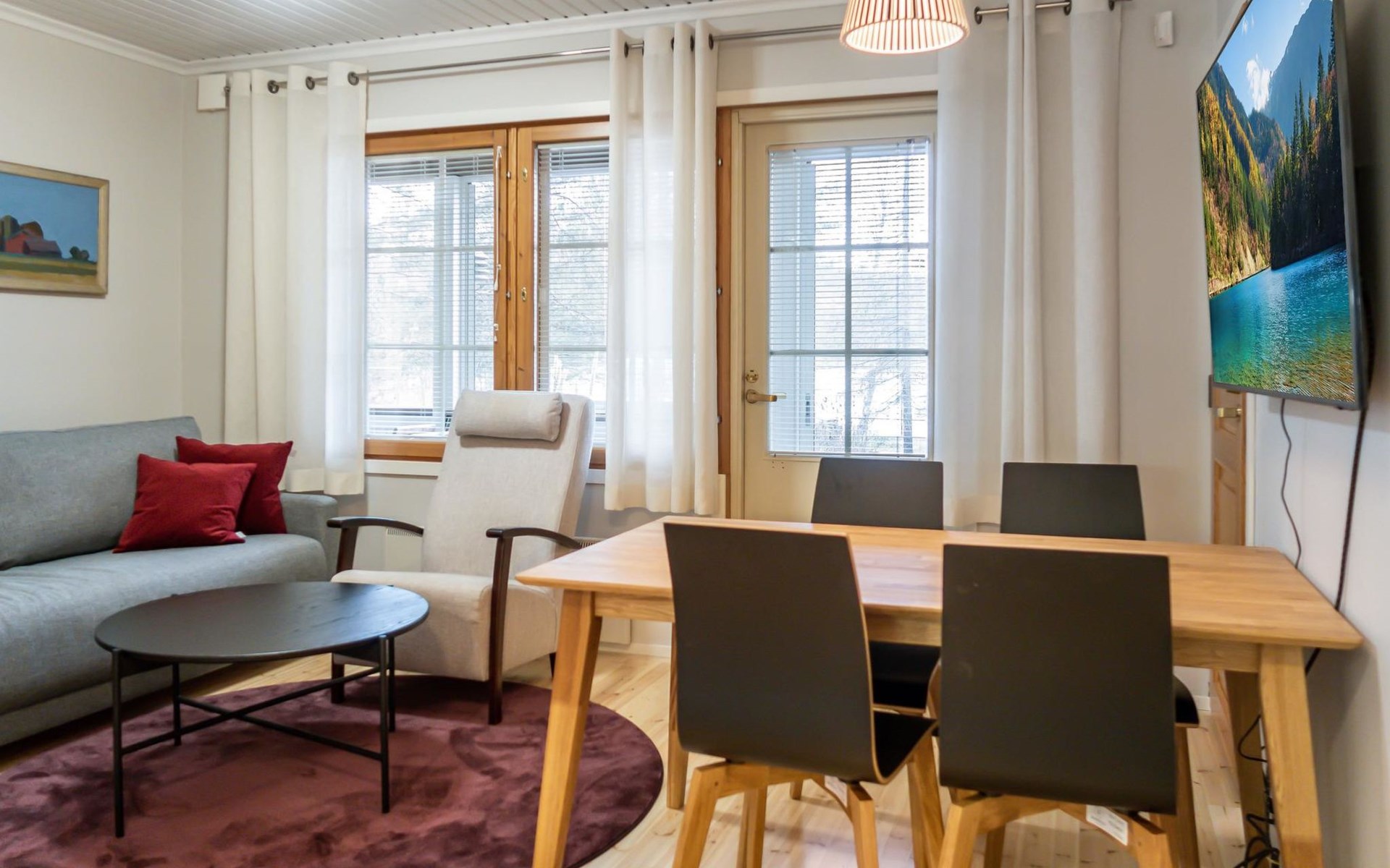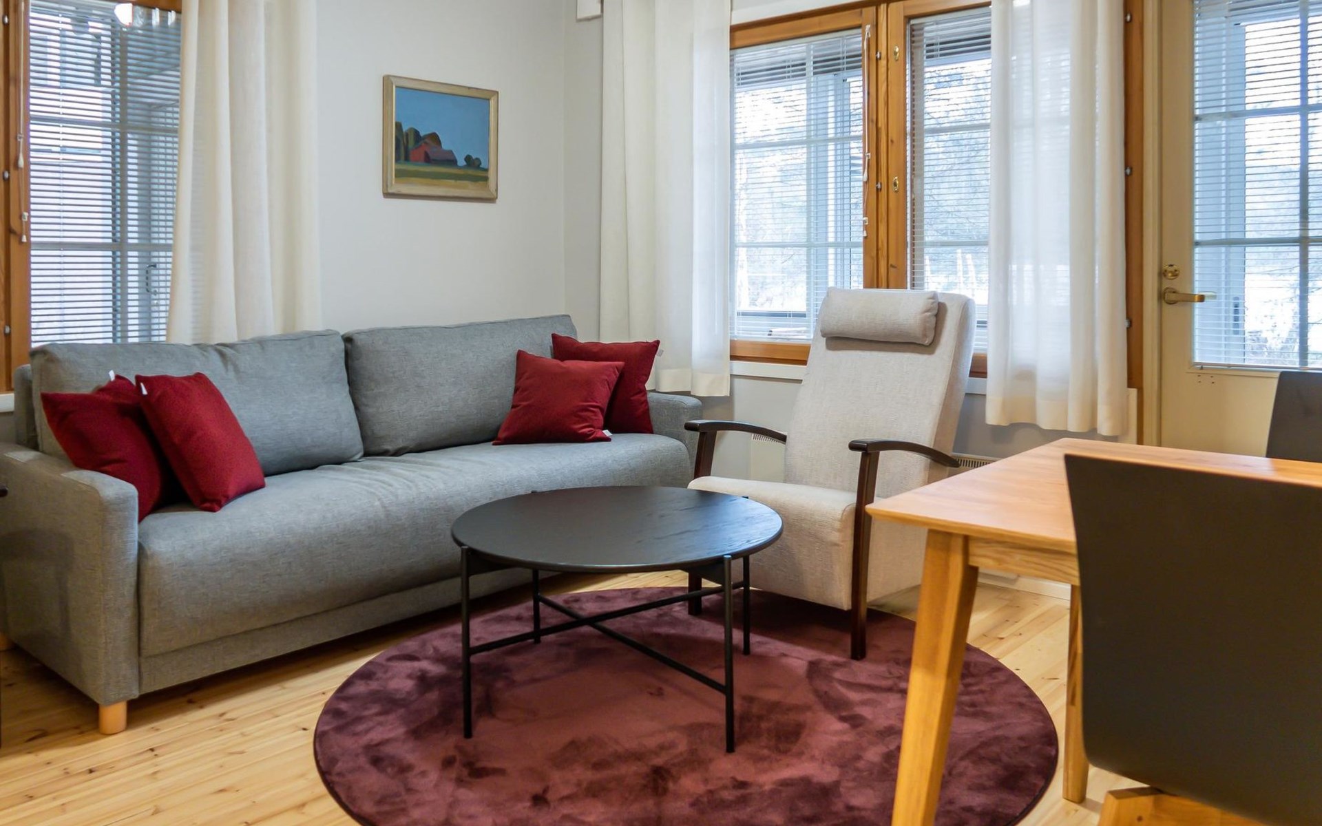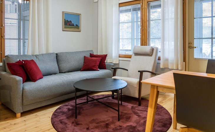 Vadelma - apartment is 40 m² in one floor (ground floor). There is a combination of livingroom/kitchen, with sofabed for 1-2 persons. One bedroom with separate beds for 2 persons. Shower / toilet, sauna (electric heating), terrace. Shared swimming place, distance about 50 m.