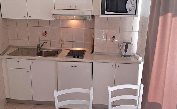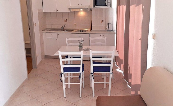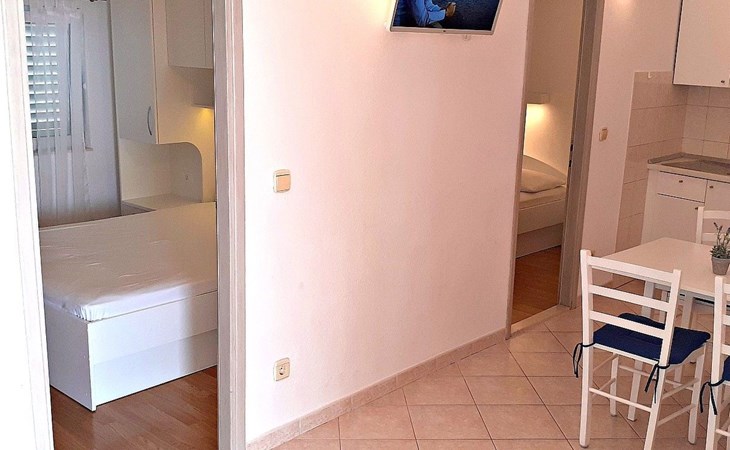 Shops and restaurants can be reached on foot in three to four minutes and a playground is 50 metres away. Baska Voda is a famous holiday resort at the foot of Biokovo on the Makarska Riviera in central Dalmatia. Baska Voda has an abundance of opportunities for rest and recreation on land and by the sea, beautiful pebble and sandy beaches, numerous sports facilities, diving schools, places for boaters in the extended harbour, etc. In addition to the sea and sun, bathing pleasures and pleasant walks, historical monuments and a museum, Baska Voda offers attractive cultural and entertainment events, various sports and recreational facilities (tennis, football, handball, table tennis, mini golf, fishing, hiking, etc.). Baska Voda is the starting point for many organised excursions to the islands of Brac, Hvar, Korcula and other popular holiday destinations Dubrovnik, Mostar, Split, Trogir, Sibenik, Plitvice Lakes ...In the evening hours there are many entertainment options in bars, on terraces and discotheques. Regional specialities are offered by many restaurants and pubs.
