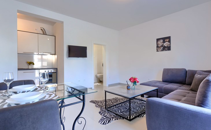 Simple apartment house "Villa Amra". In the district of Finida 1.2 km from the centre of Poreč, 800 m from the sea, from the beach. For shared use: barbecue. In the house: internet access. Parking at the house on the premises. Supermarket 350 m, restaurant 500 m, bus stop 1.1 km, pebble beach, rocky beach 800 m. Marina 1 km, sailing school 1 km, tennis 1 km, walking paths from the house 1 km, cycle lane 1 km, children's playground 300 m. Nearby attractions: Aquapark 3 km.