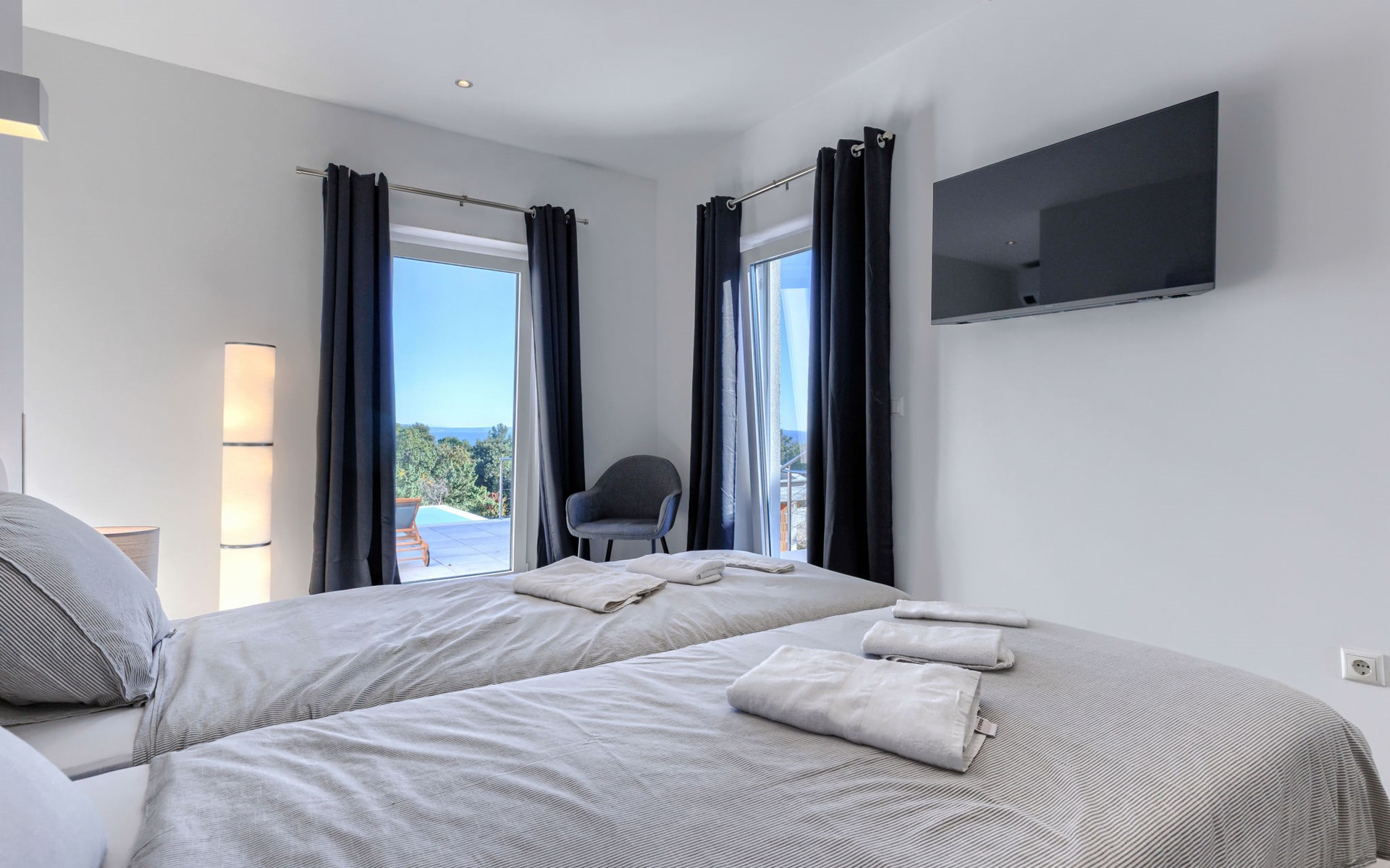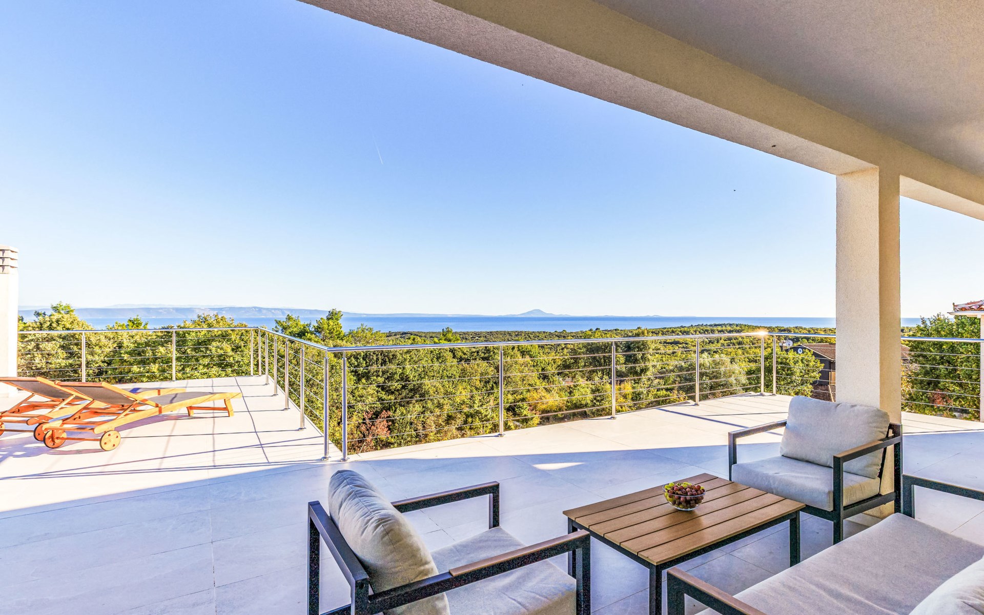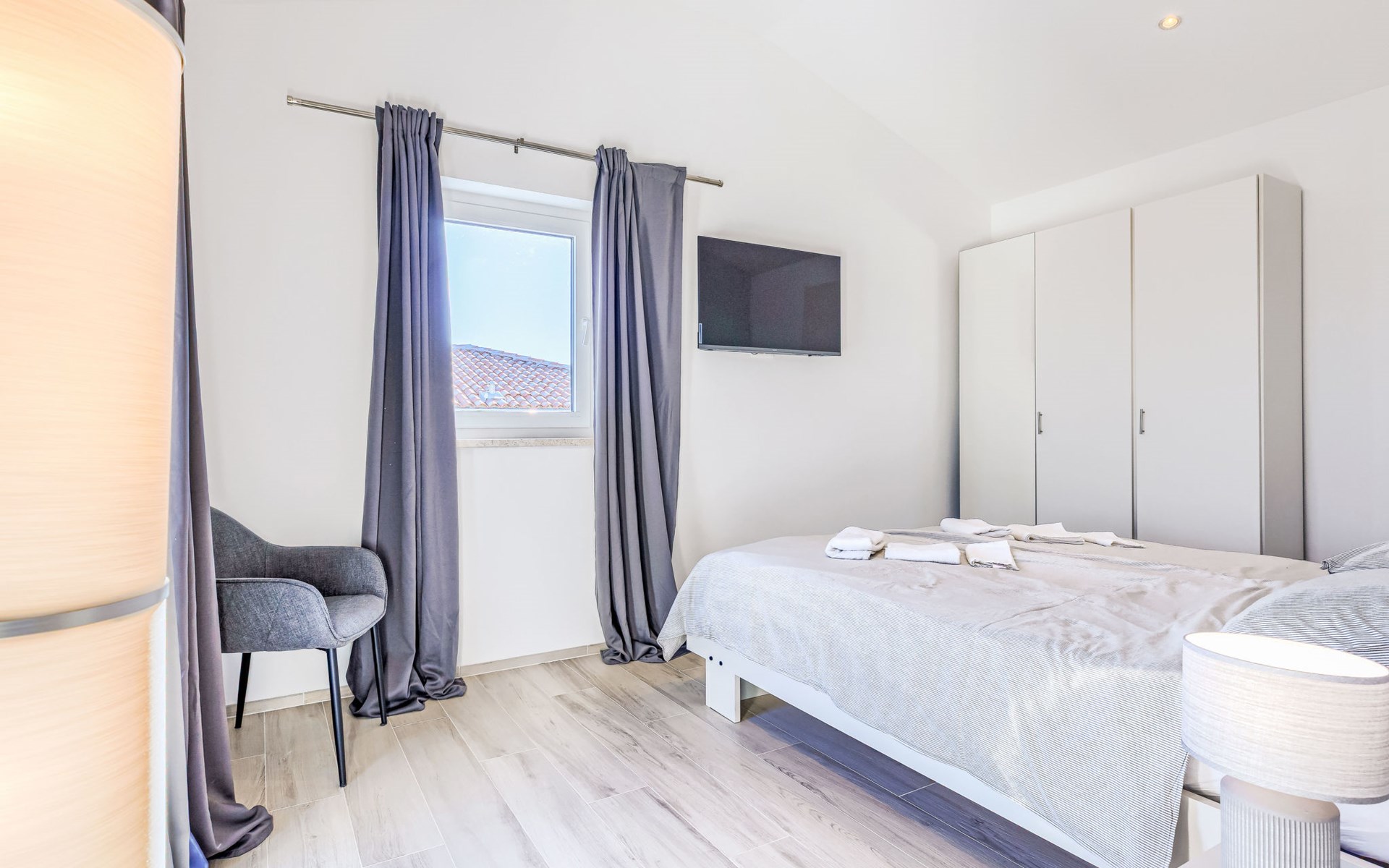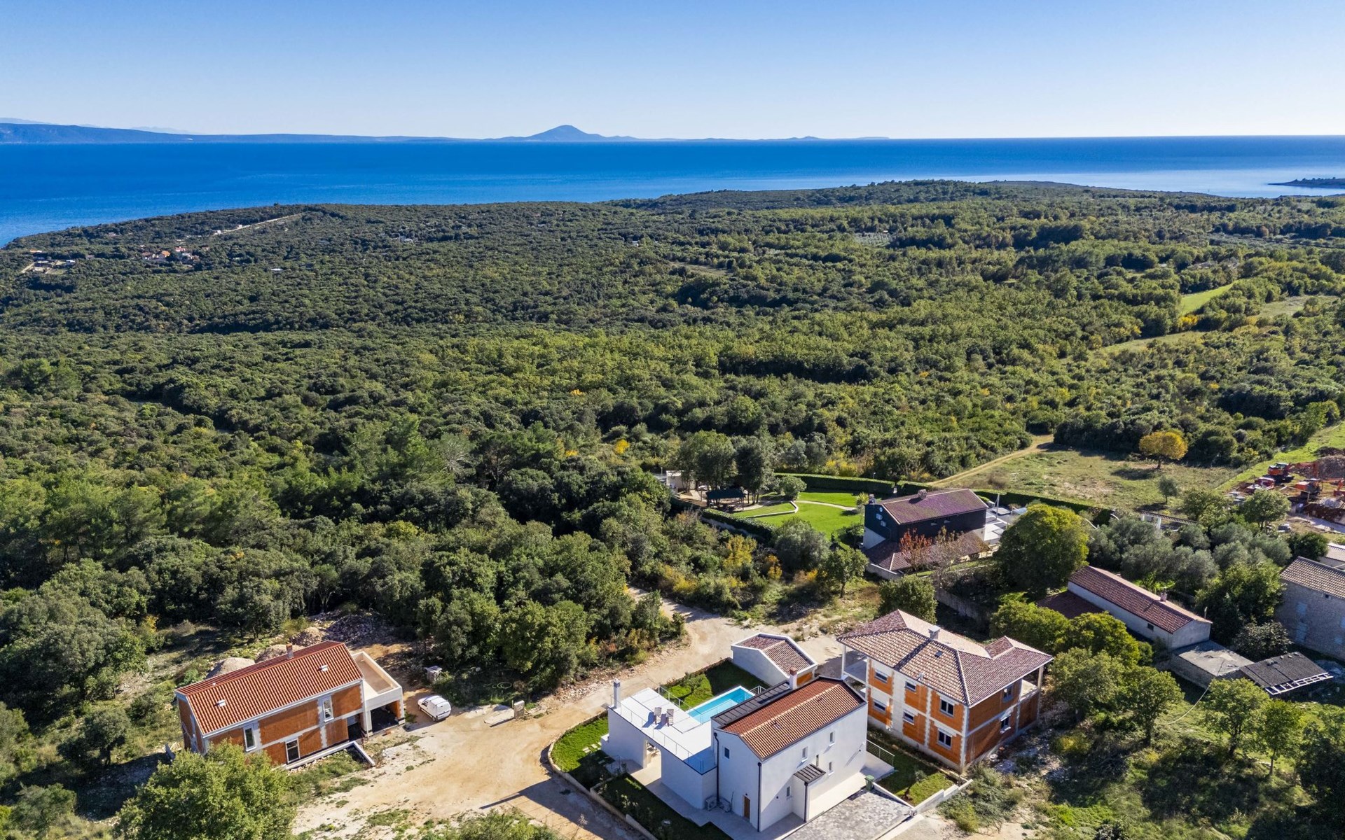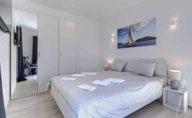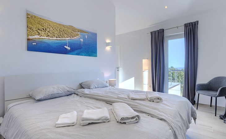 Very beautiful villa "Cappenberg", 2 storeys, built in 2025. 1 km from the centre of Peruški, 8 km from the centre of Marčana, 20 km from the centre of Pula, in an elevated position, 700 m from the sea, 700 m from the beach. Private: property 730 m2, swimming pool angular, heated (8 x 4 m, 32 m2, depth 140 cm, seasonal availability: 01.Mar. - 01.Dec.) with internal staircase and salt-electrolysis pool-cleaning system. Outdoor shower, hot tub, terrace (75 m2), garden furniture, barbecue. In the house: internet access, sauna, table tennis, roof terrace, washing machine, tumble dryer. Parking (for 3 cars) at the house on the premises. E-charging station. Shop 1.5 km, bus stop 7.5 km, pebble beach 3 km, rocky beach 700 m. Groups of teenagers on request only. Heated swimming pool. It is necessary to notify us 7 days in advance if you wish to have the pool heating turned on.