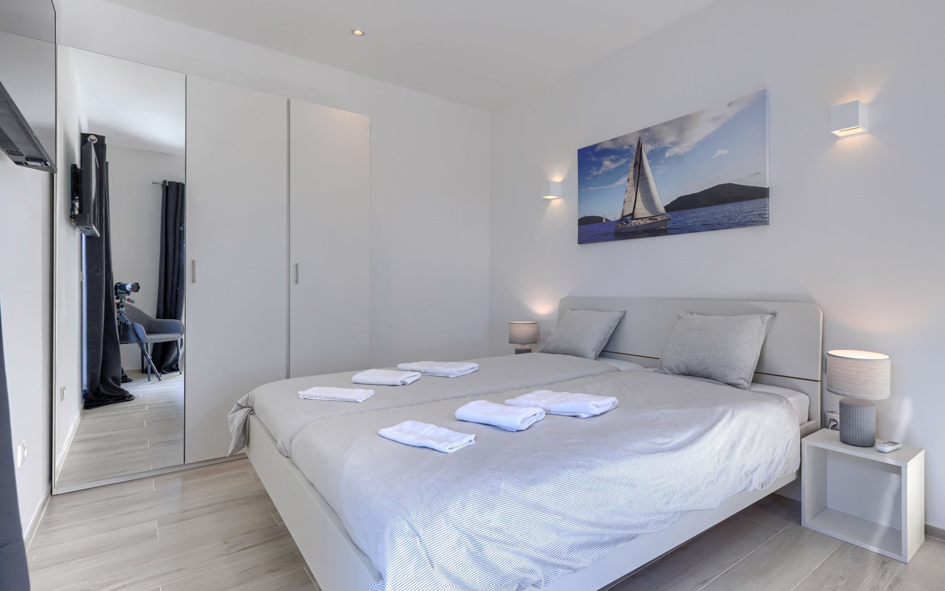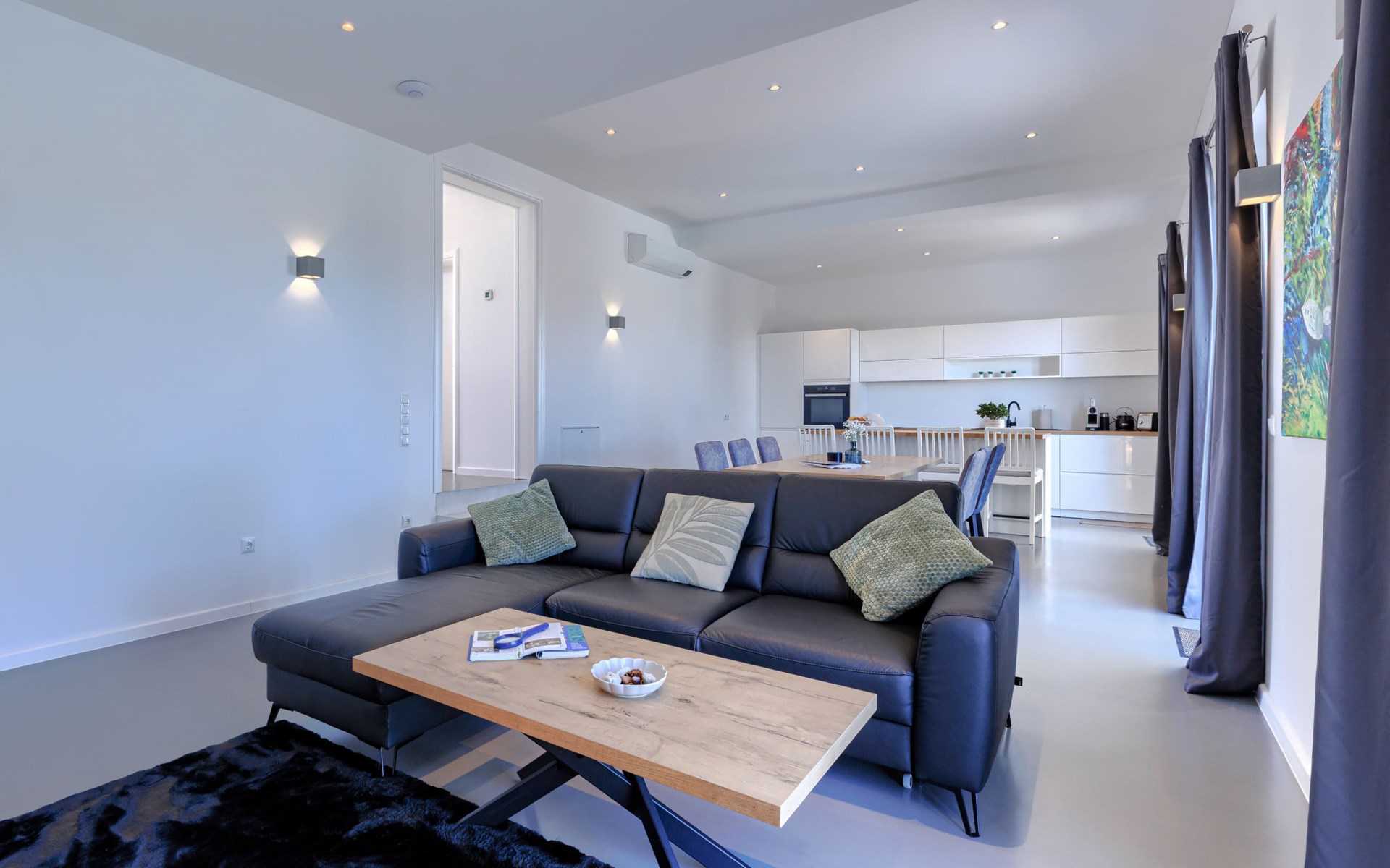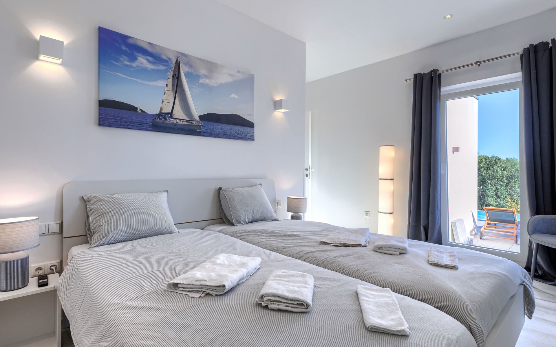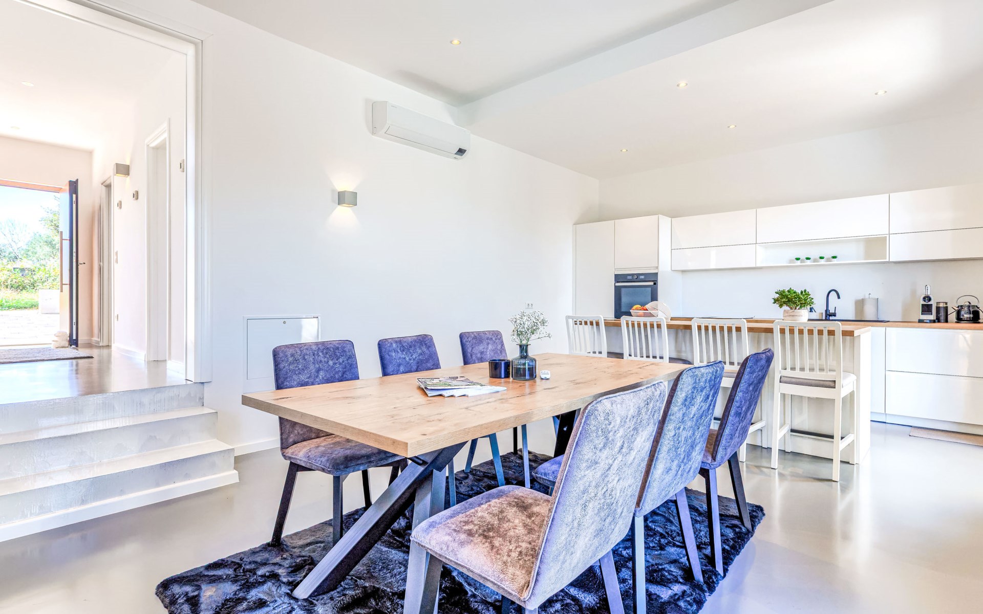 Very beautiful villa "Cappenberg", 2 storeys, built in 2025. 1 km from the centre of Peruški, 8 km from the centre of Marčana, 20 km from the centre of Pula, in an elevated position, 700 m from the sea, 700 m from the beach. Private: property 730 m2, swimming pool angular, heated (8 x 4 m, 32 m2, depth 140 cm, seasonal availability: 01.Mar. - 01.Dec.) with internal staircase and salt-electrolysis pool-cleaning system. Outdoor shower, hot tub, terrace (75 m2), garden furniture, barbecue. In the house: internet access, sauna, table tennis, roof terrace, washing machine, tumble dryer. Parking (for 3 cars) at the house on the premises. E-charging station. Shop 1.5 km, bus stop 7.5 km, pebble beach 3 km, rocky beach 700 m. Groups of teenagers on request only. Heated swimming pool. It is necessary to notify us 7 days in advance if you wish to have the pool heating turned on.