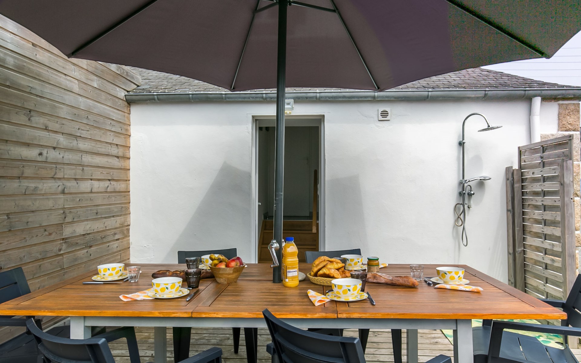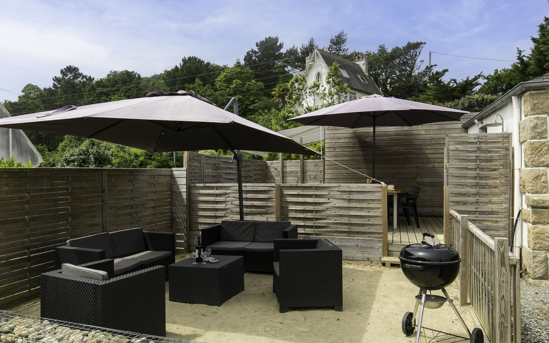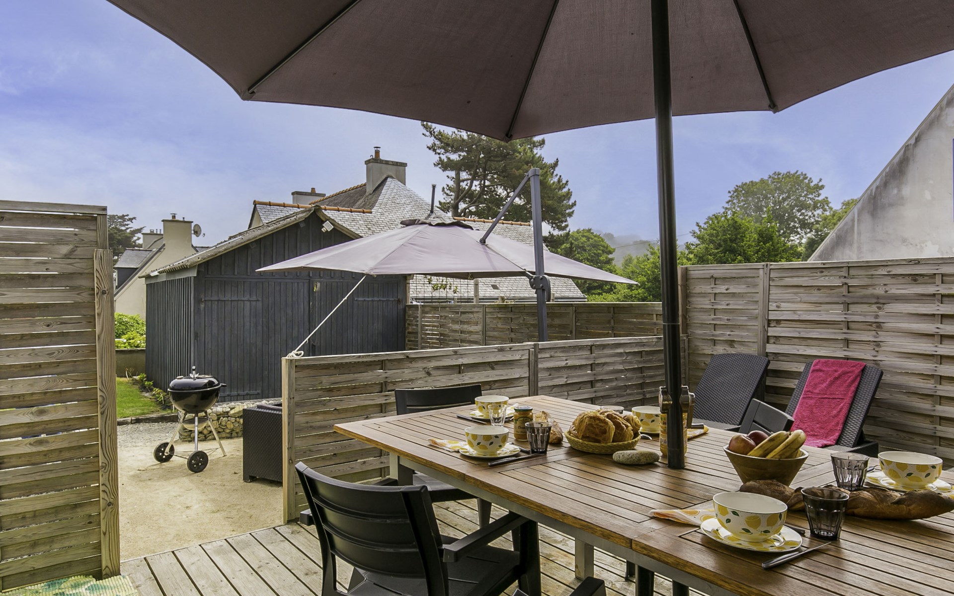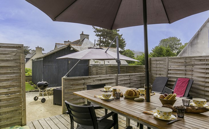 Beautiful semi-detached house "Le Coup de Coeur". In the district of Moulin de la Rive 2.5 km from the centre of Locquirec, 3.5 km from the centre of Guimaec, 19 km from the centre of Morlaix, 250 m from the sea, 250 m from the beach. Private: property 300 m2 (fenced) with lawn and wildlife garden. Outdoor shower. In the house: storage room for bicycles, washing machine, tumble dryer (for shared use). Parking (for 2 cars) on the premises. Shop 2 km, supermarket 6 km, restaurant 3 km, bakery 3 km, bus stop "Moulin de la Rive" 170 m, sandy beach "Moulin de la Rive" 250 m. Golf course (18 hole) 32 km, surf school 250 m, sailing school 6 km, riding stable 17 km, walking paths from the house 10 m. Nearby attractions: Cairn de Barnenez 19 km, Lannion 25 km, Ploumanac'h - Côte du Granit Rose 39 km, Roscoff et Jardin exotique, île de Batz 45 km, Vallée des Saints (Carnoet) 45 km, Oceanopolis Brest 75 km. Hiking paths: GR34, sentier des douaniers 200 m. Please note: Property ref. FR2967.645.1 is situated on the same property. The house has its entrance, terrace and private garden.