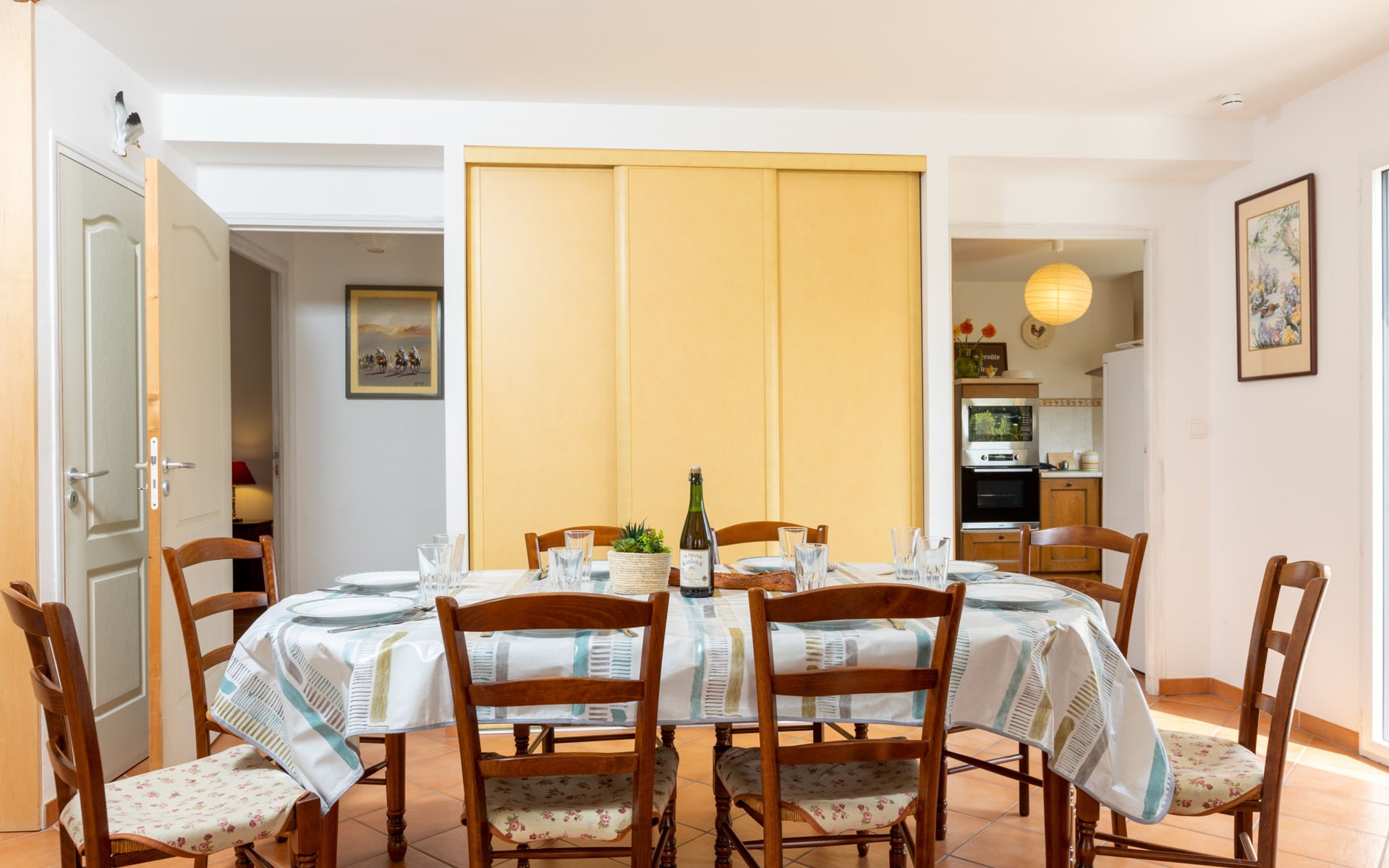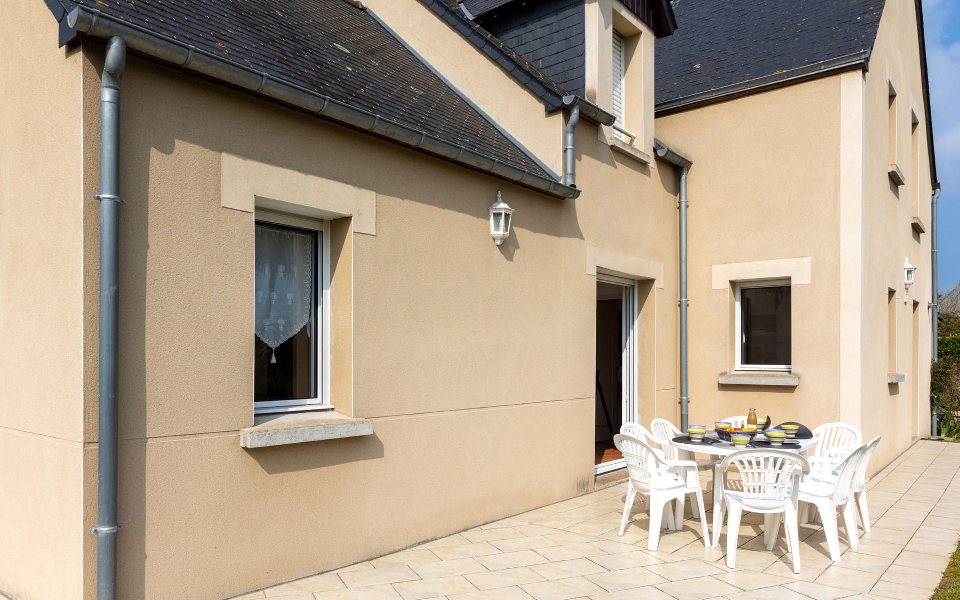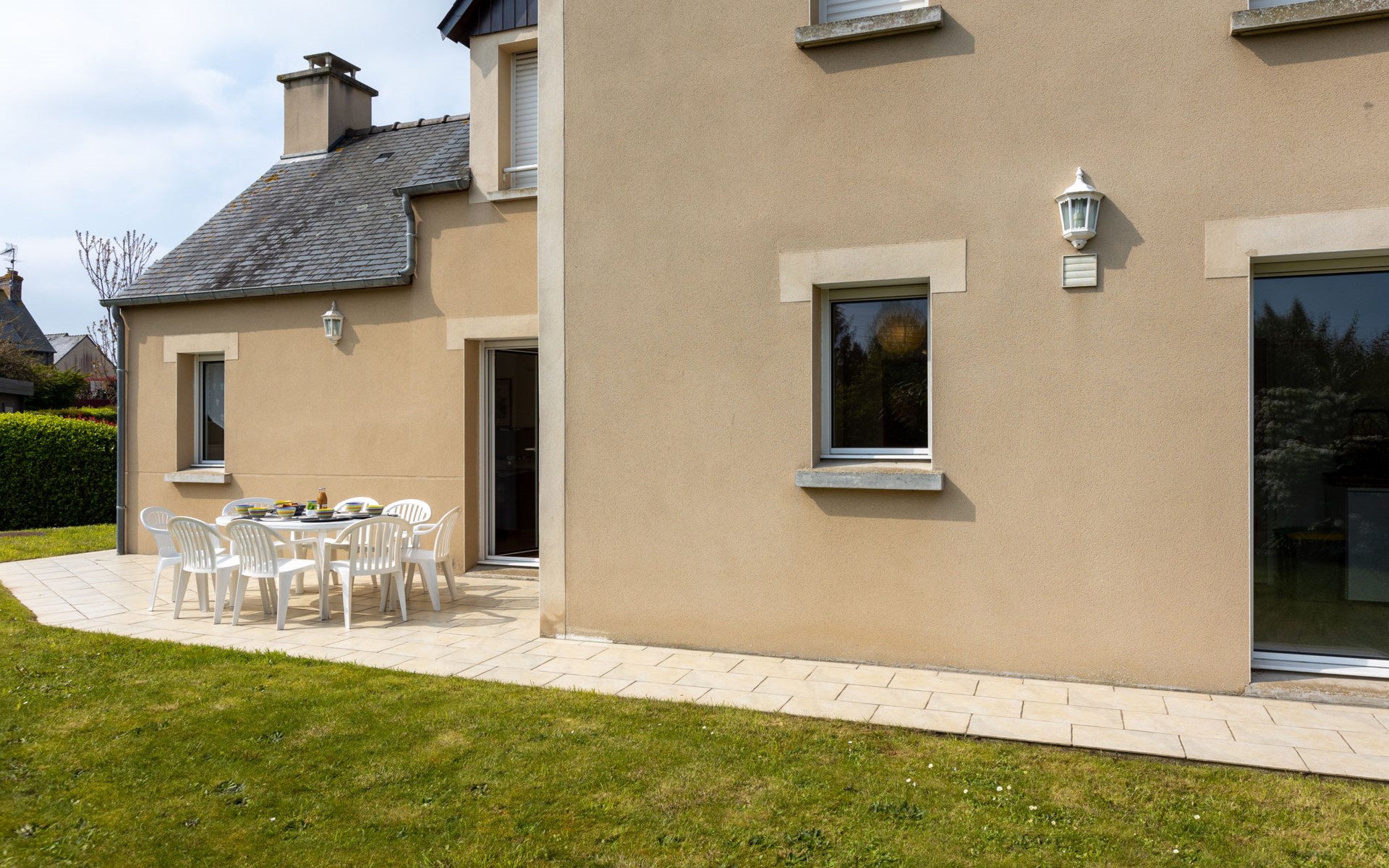 Beautiful single-family house "Les Agapanthes". In a hamlet, 2 km from the centre, in a quiet position in the residential district, 1 km from the sea, 1 km from the beach, south-west facing position. Private: well-kept garden 200 m2 (fenced) with lawn. Garden furniture, barbecue, parking on the premises. Shop, grocery, supermarket 750 m, shopping centre 2.2 km, restaurant 750 m, bar, bakery 750 m, café 450 m, bicycle rental 2.1 km, bus stop "Eglise notre dame" 1 km, railway station "SNCF Saint Malo" 9.6 km, ferry "gare maritime du Naye Saint Malo" 12 km, sandy beach "Prieuré" 1 km, park "Port Breton" 600 m, outdoor swimming pool 1.1 km, indoor swimming pool 2 km, thermal baths "Thalasso Dinard" 3 km. Sports harbour 1.5 km, golf course (18 hole) 7.7 km, sailing school 1.7 km, tennis, indoor tennis centre 550 m, minigolf 1.4 km, riding stable 300 m, sports centre 1 km, walking paths from the house 1 km, cycle lane 700 m. Nearby attractions: Saint Malo 9.5 km, Grand Aquarium de Saint Malo 7.7 km, Dinan 21.7 km, Cancale 21.3 km, Cap Fréhel 32 km, Mont Saint Michel 58 km. The keys‘ handover takes place by the agency Interhome in Dinard, 2 km.