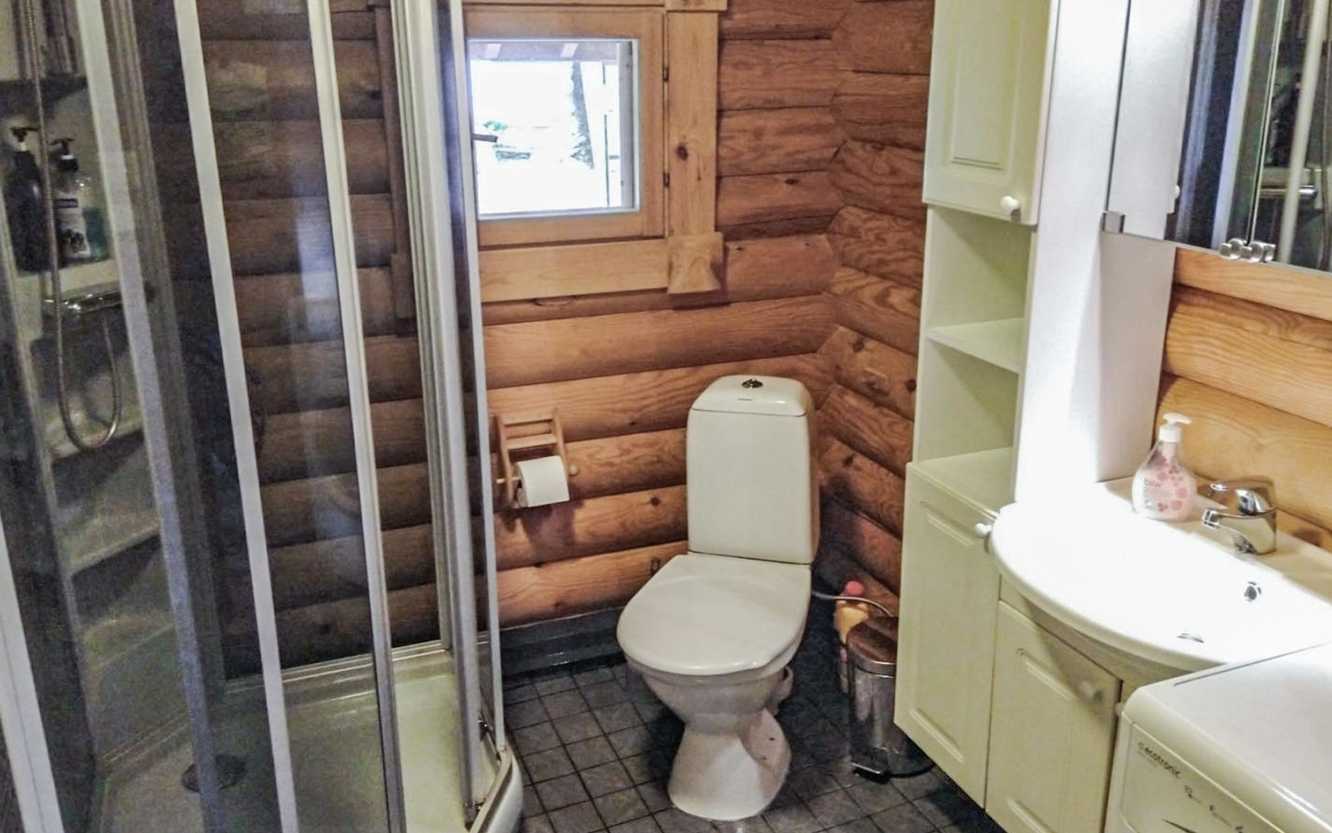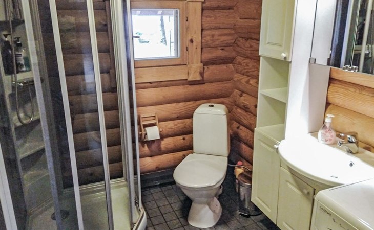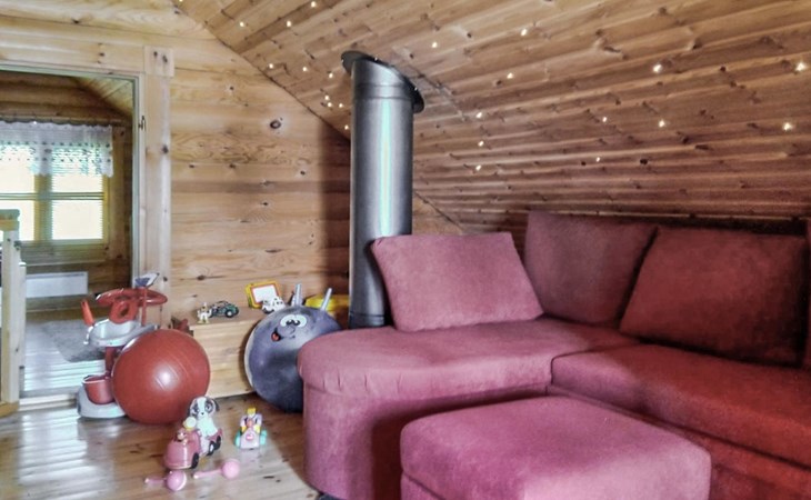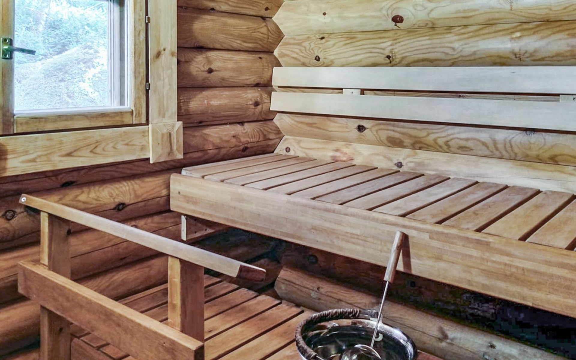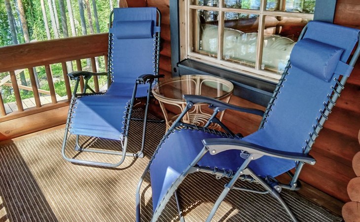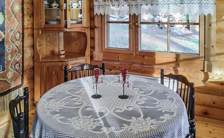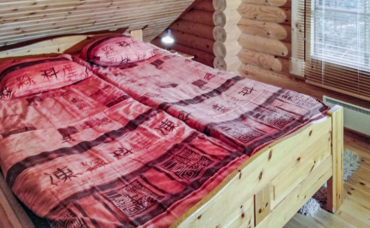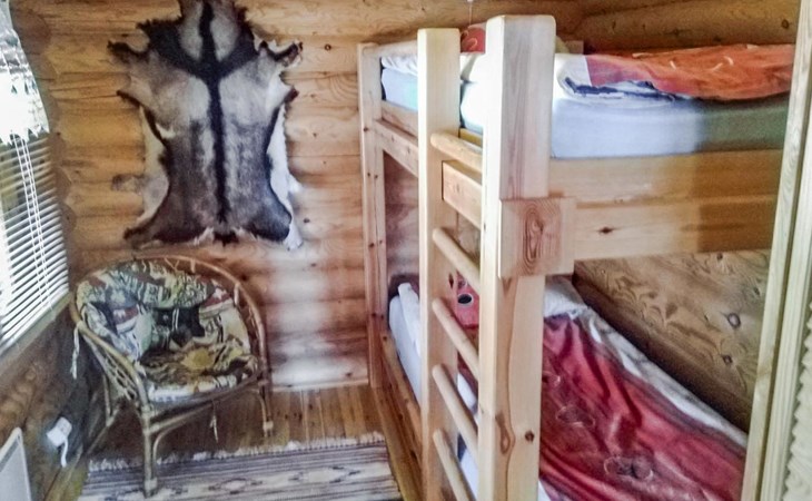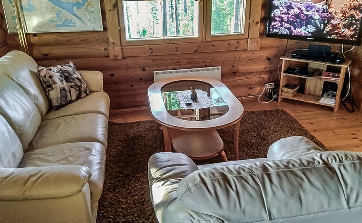 Log cottage 2005, kitchen, living room, bedroom (downstairs) bunk bed, bedroom (upstairs, sloping ceilings) double bed, sleeping loft convertible sofa, sauna (electric stove), washroom, open porch.