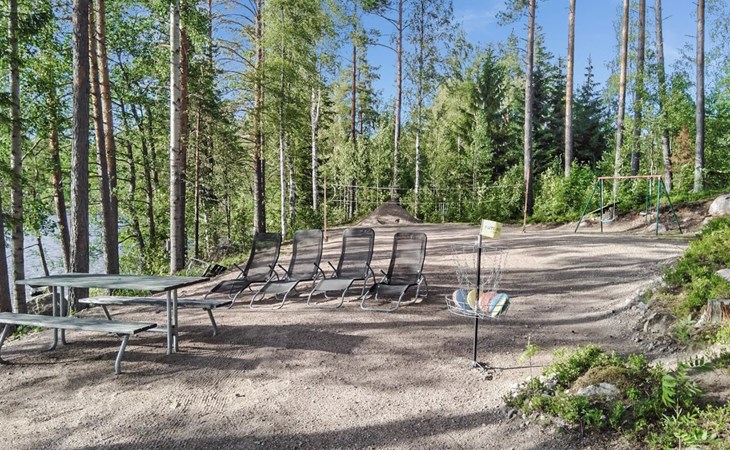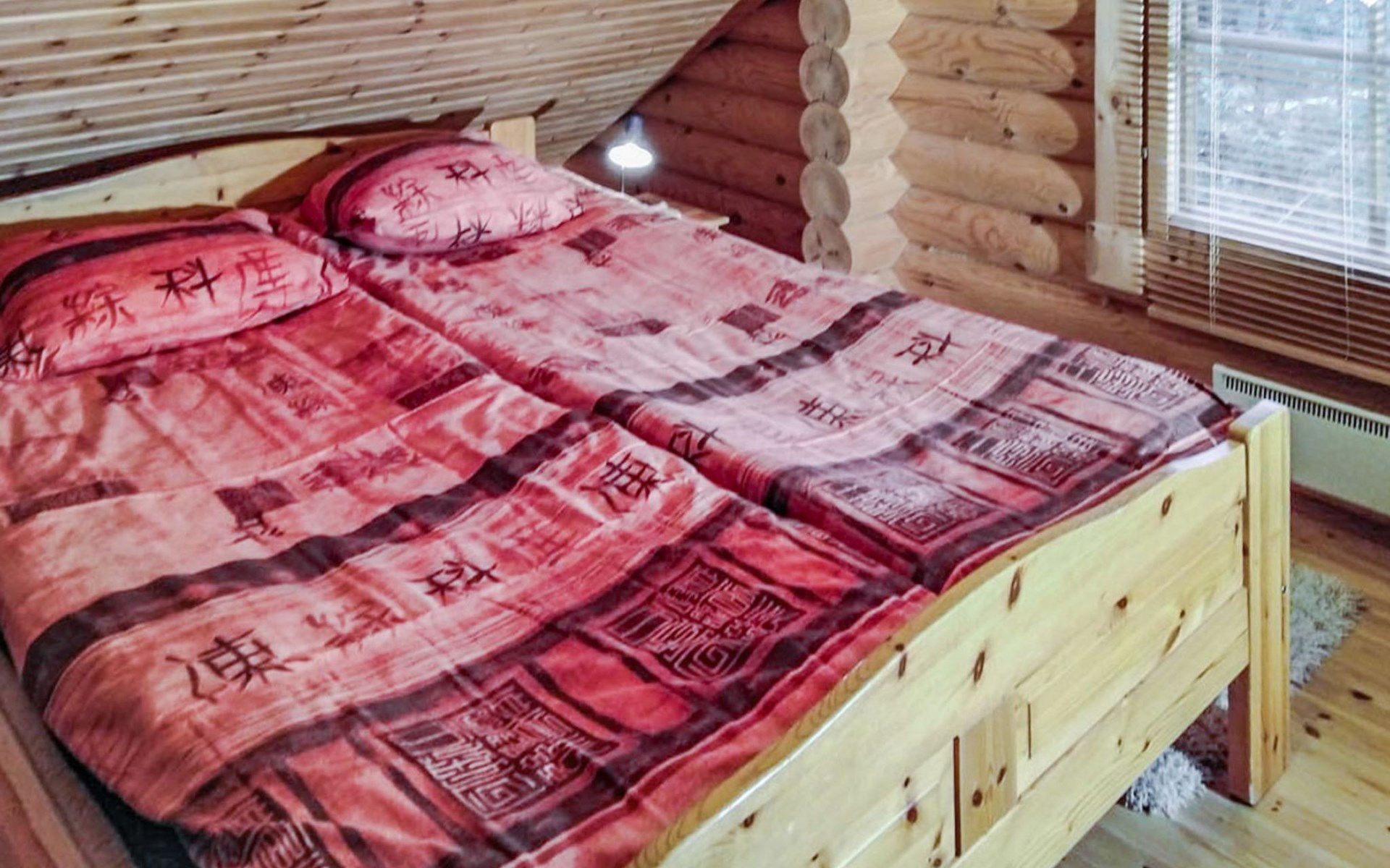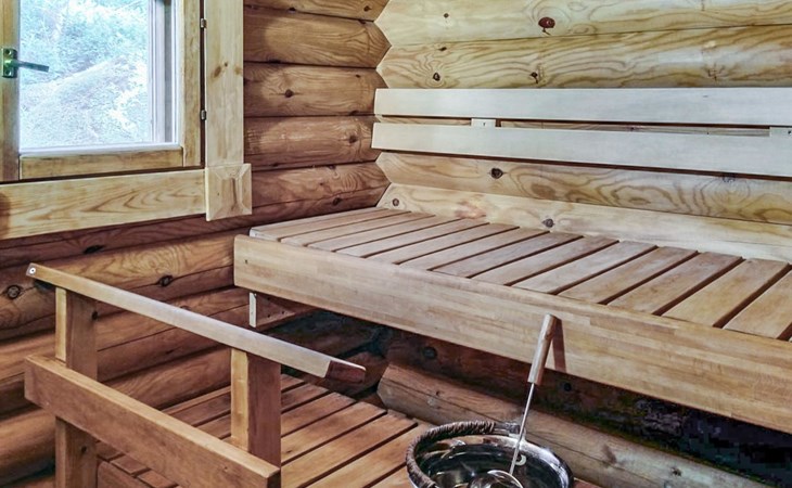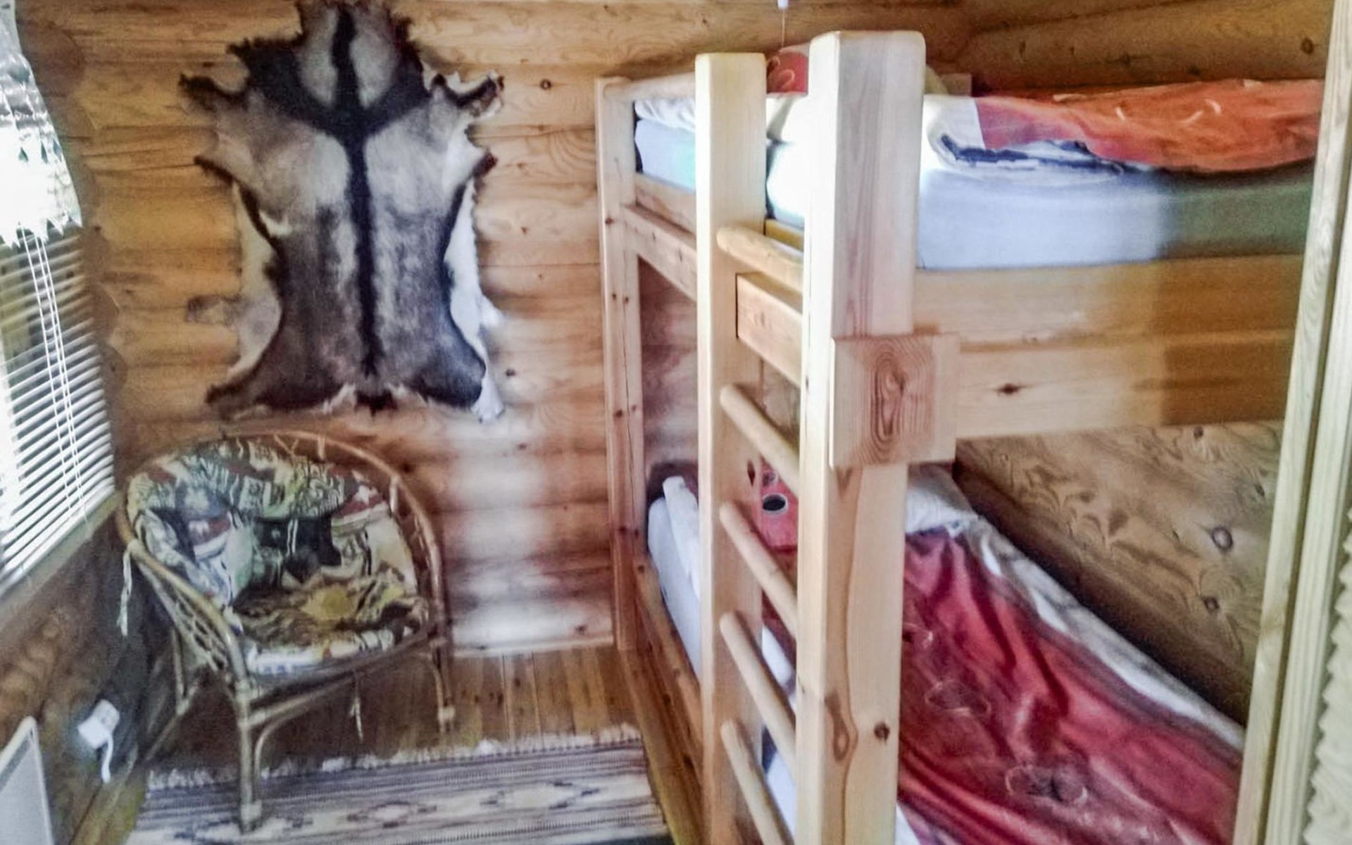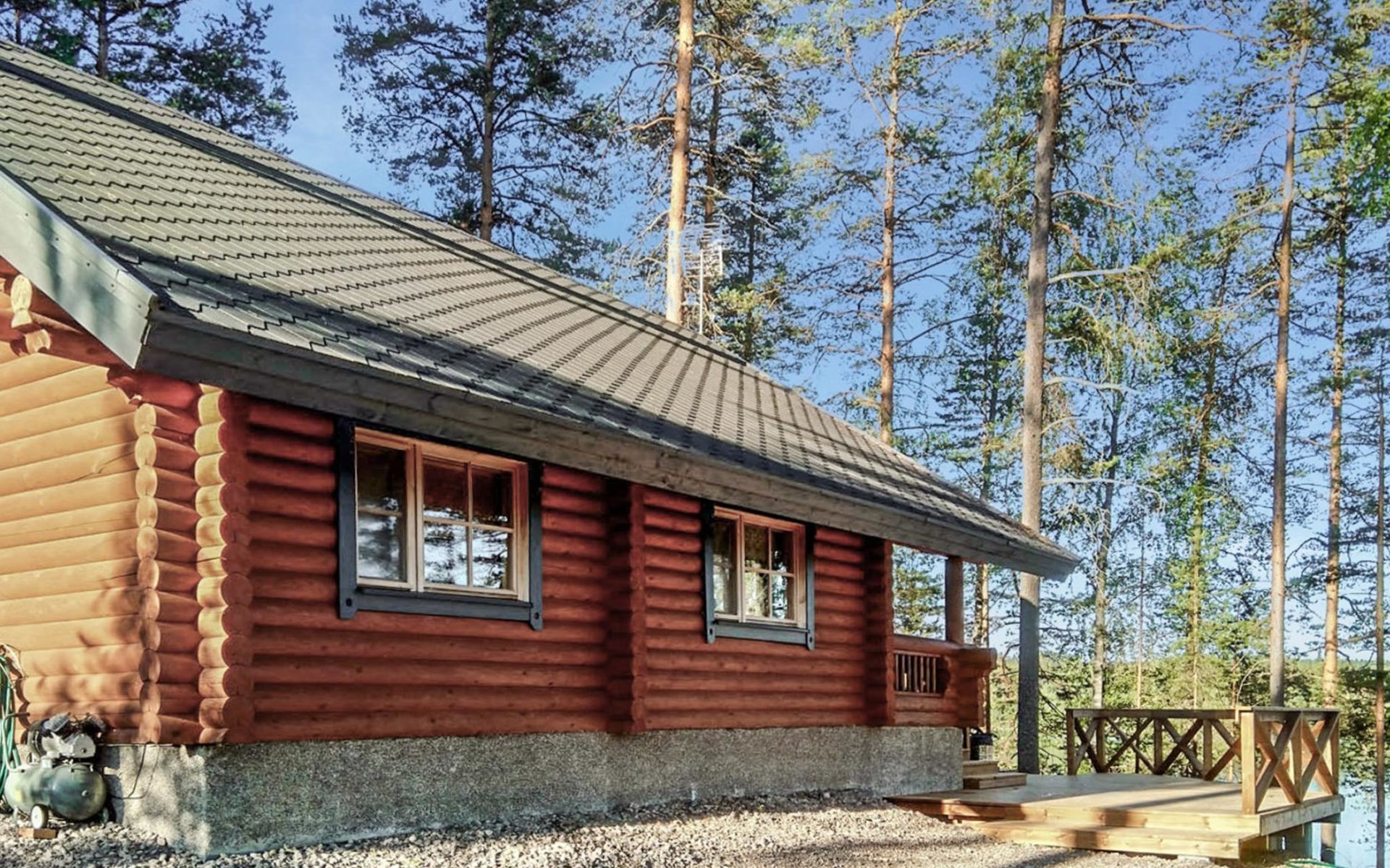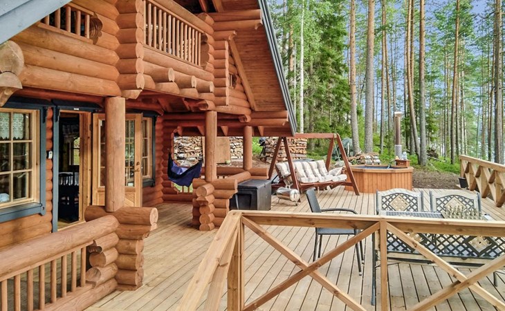 Log cottage 2005, kitchen, living room, bedroom (downstairs) bunk bed, bedroom (upstairs, sloping ceilings) double bed, sleeping loft convertible sofa, sauna (electric stove), washroom, open porch.