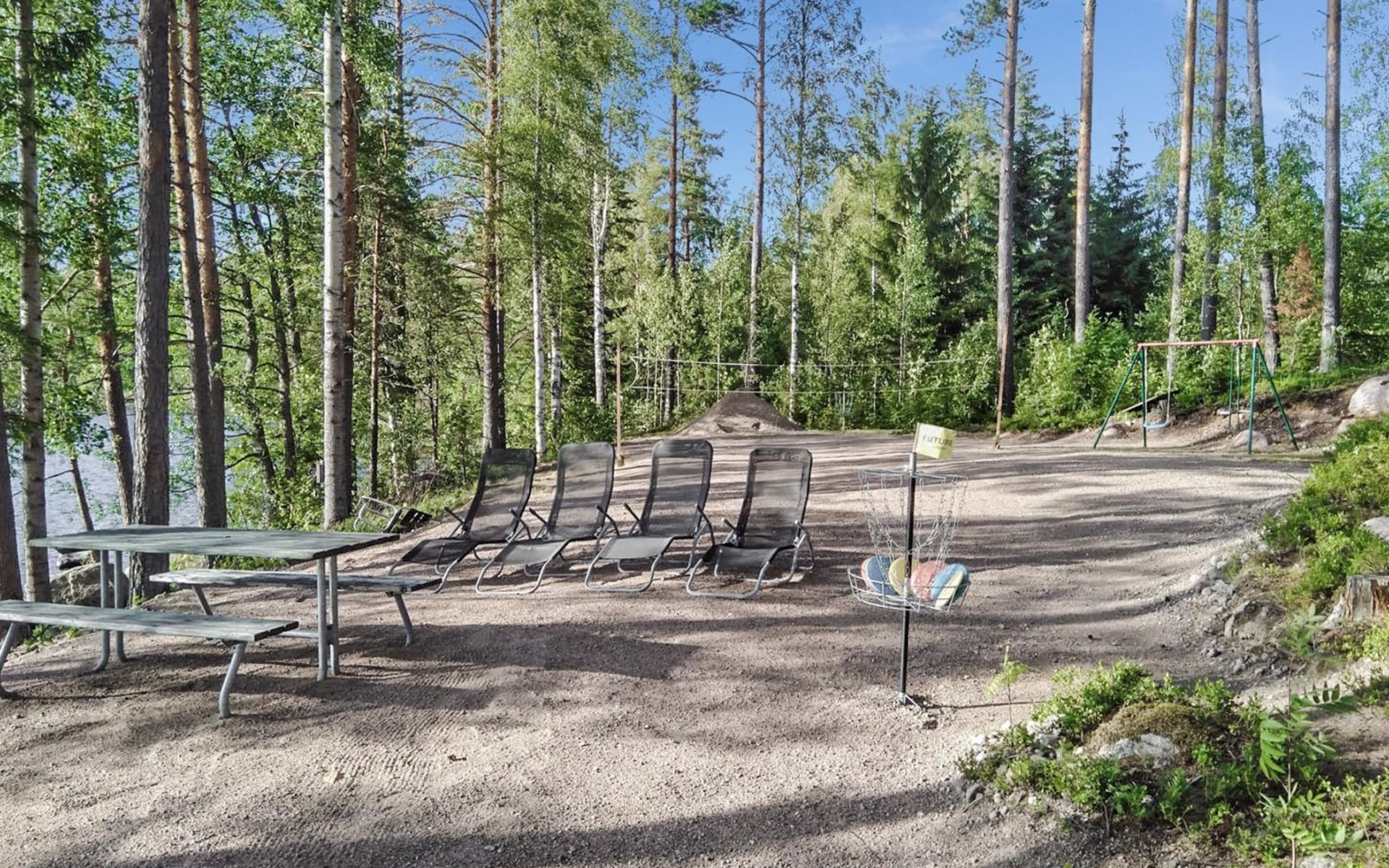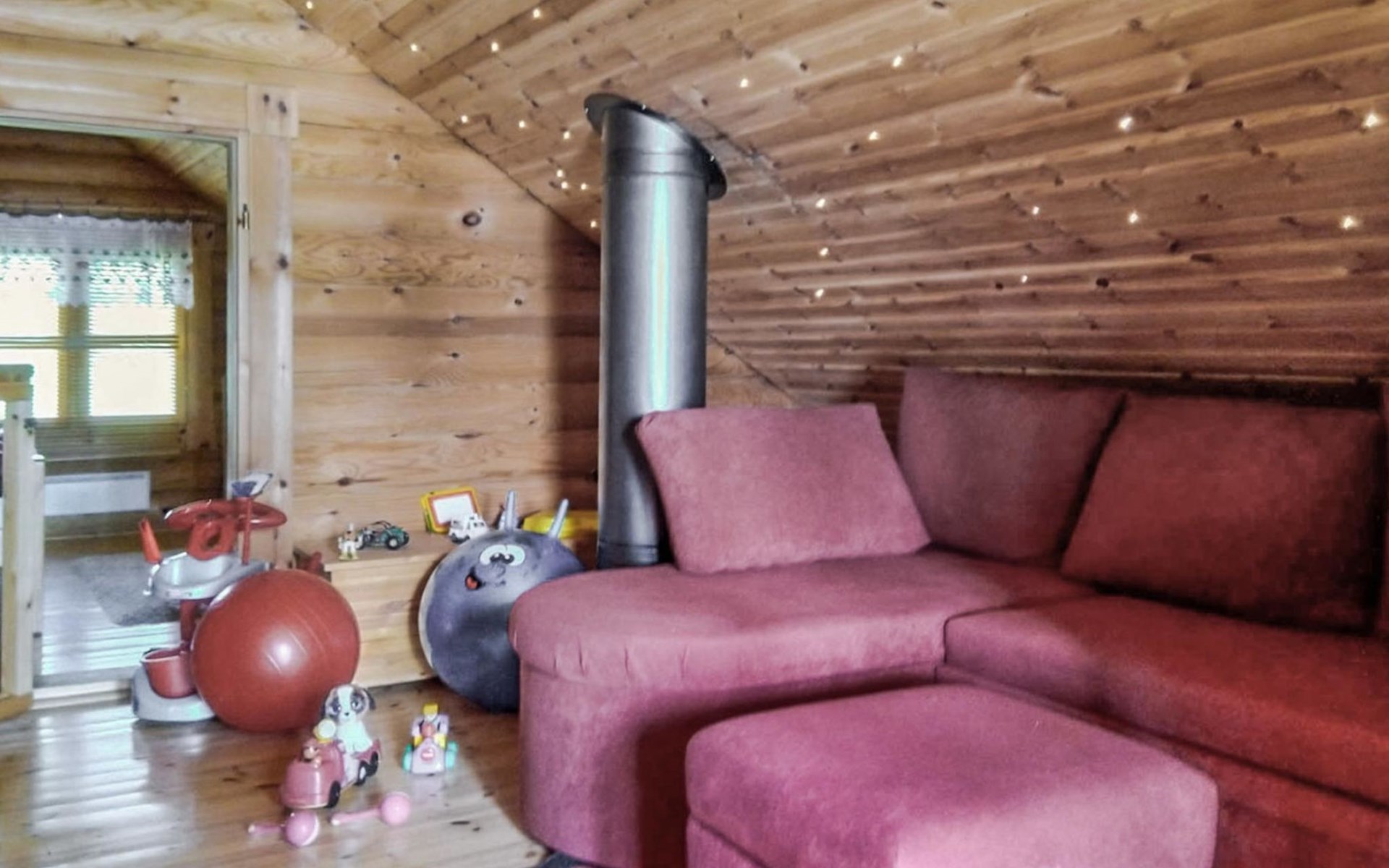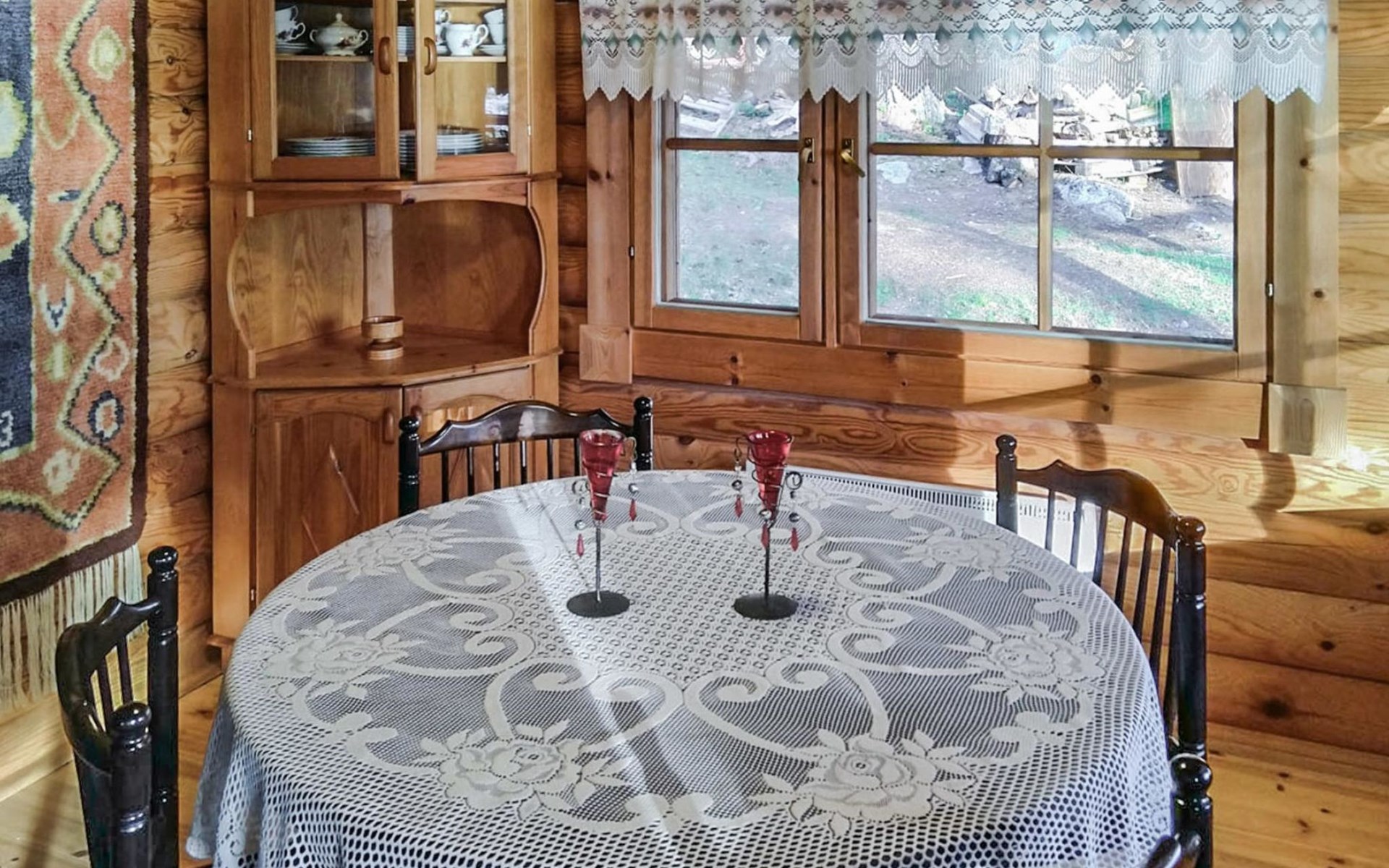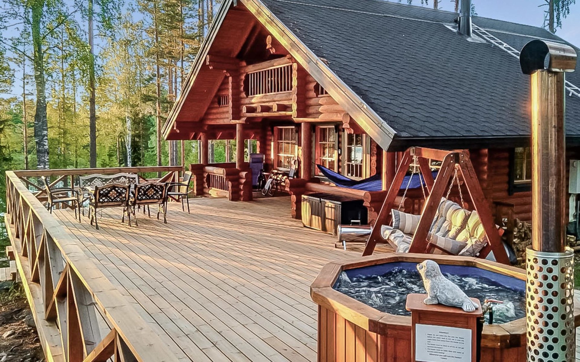 Log cottage 2005, kitchen, living room, bedroom (downstairs) bunk bed, bedroom (upstairs, sloping ceilings) double bed, sleeping loft convertible sofa, sauna (electric stove), washroom, open porch.