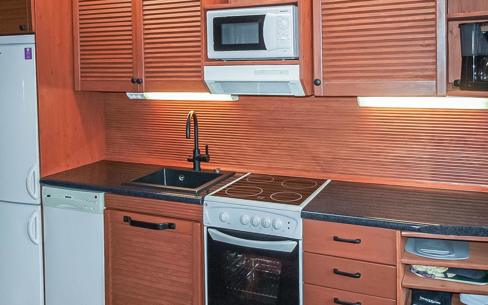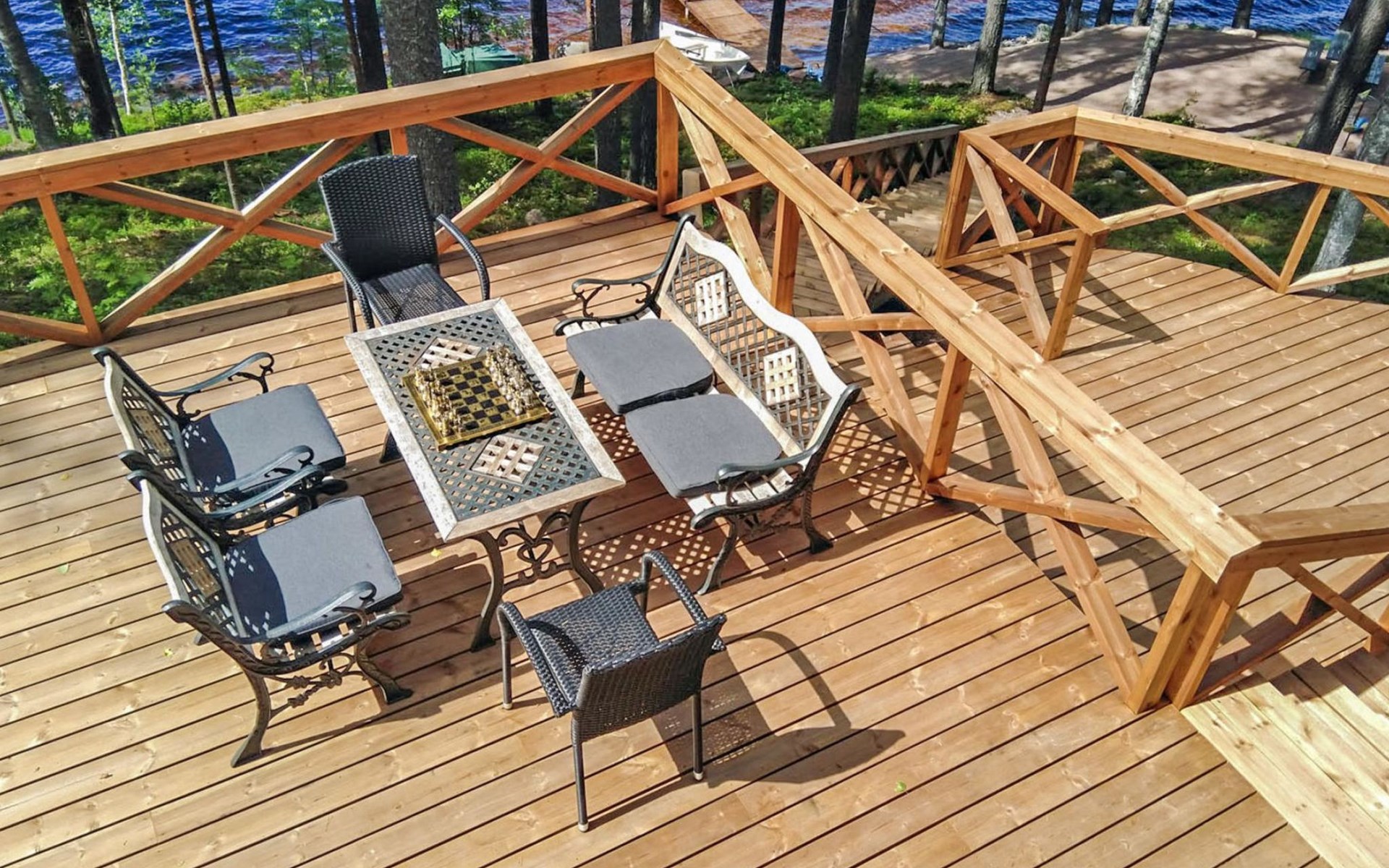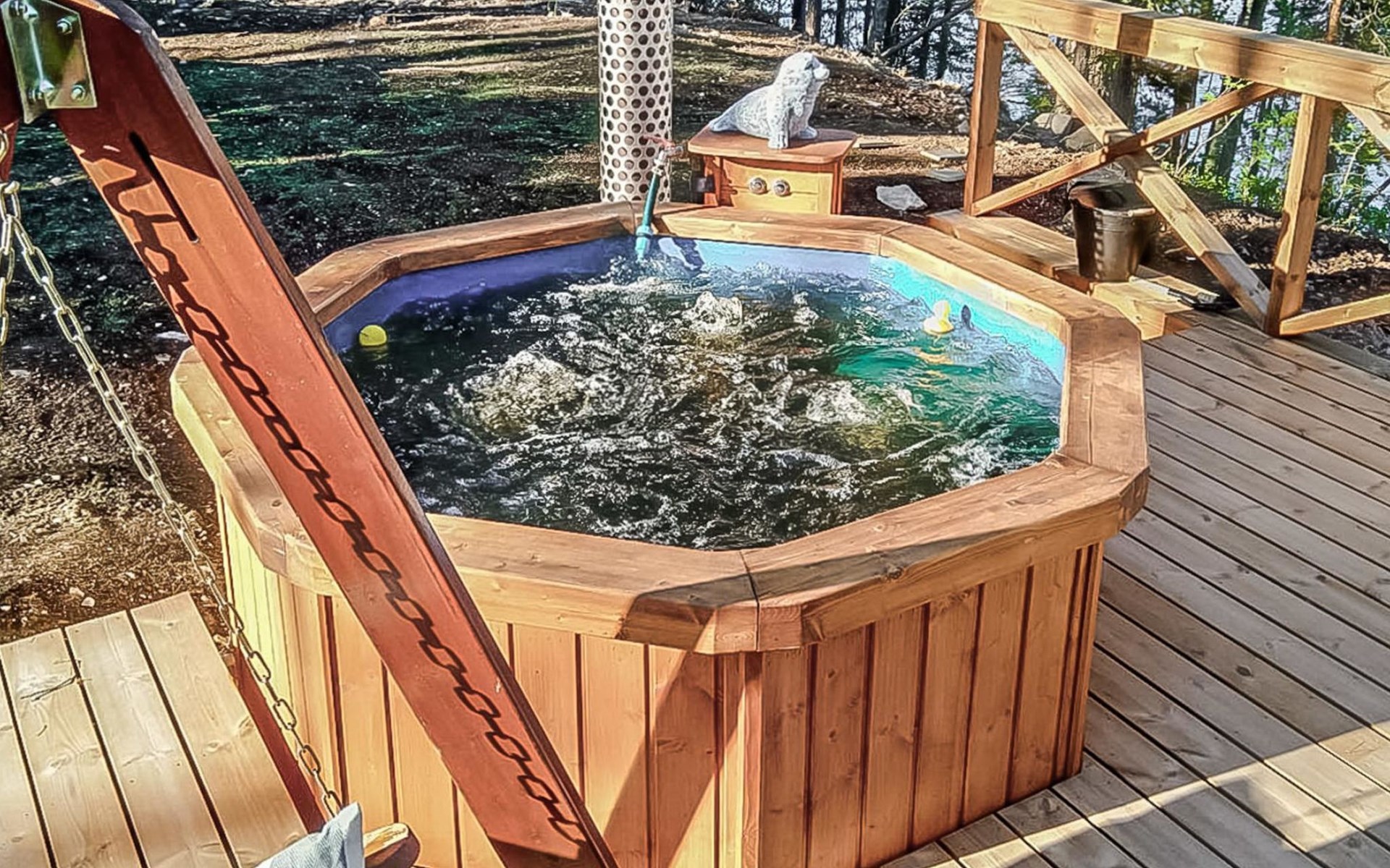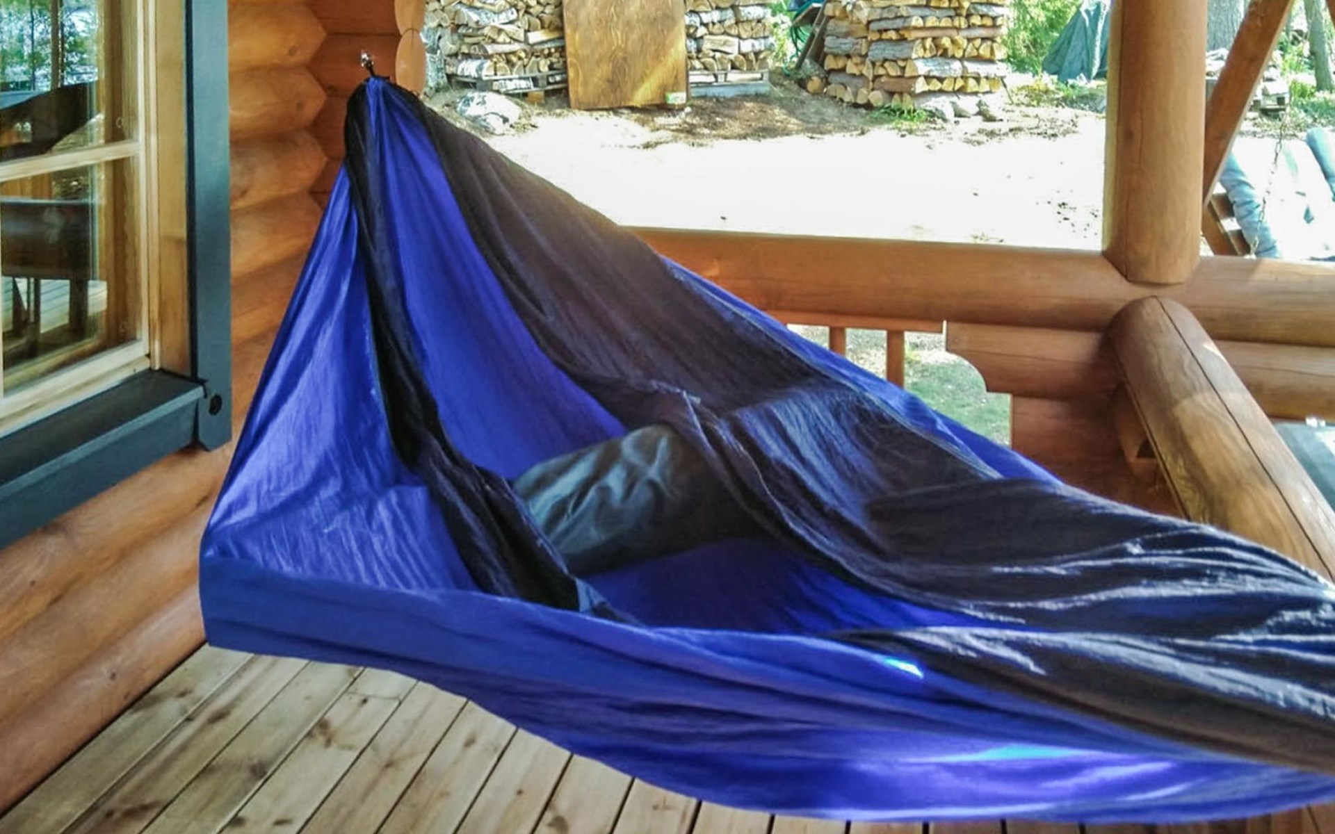 Log cottage 2005, kitchen, living room, bedroom (downstairs) bunk bed, bedroom (upstairs, sloping ceilings) double bed, sleeping loft convertible sofa, sauna (electric stove), washroom, open porch.