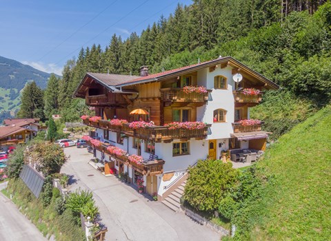 In Enzian 4 you will experience the pure Alpine feeling. This detached cottage is suitable for 4 persons. In the spacious and bright living room you will find a cosy sitting area with television. The fully equipped kitchen includes a dishwasher, a water kettle and coffee maker. There are 2 bedrooms in total, 1 with a double bed and 1 with 2 single beds. Furthermore, there is a luxurious bathroom with a walk-in shower, washbasin and a floating toilet. There is also a separate toilet. From the living room you have direct access to the sunny terrace with seating area and whirlpool for cosy hours. You can park one car at your cottage and there is free wifi available.