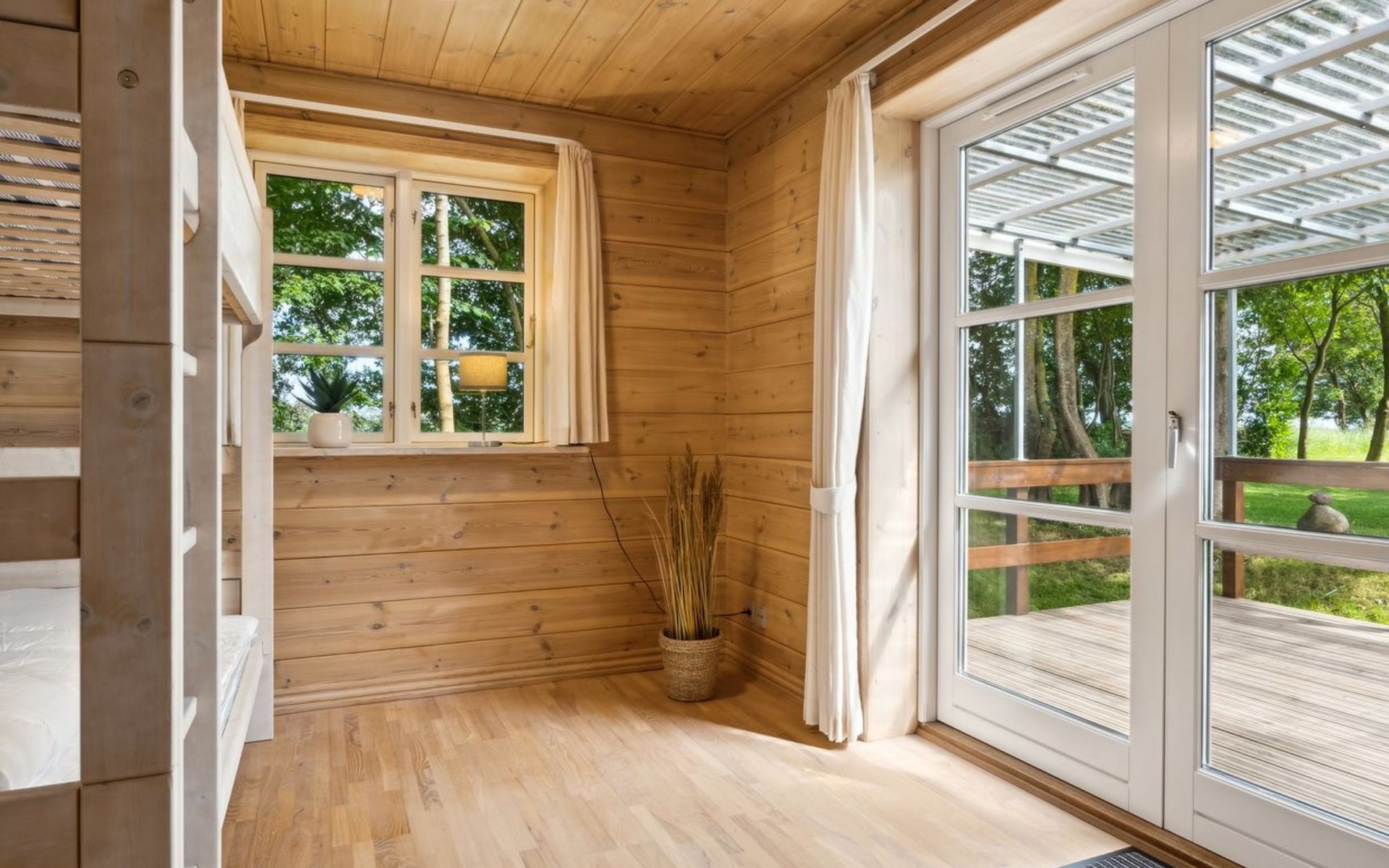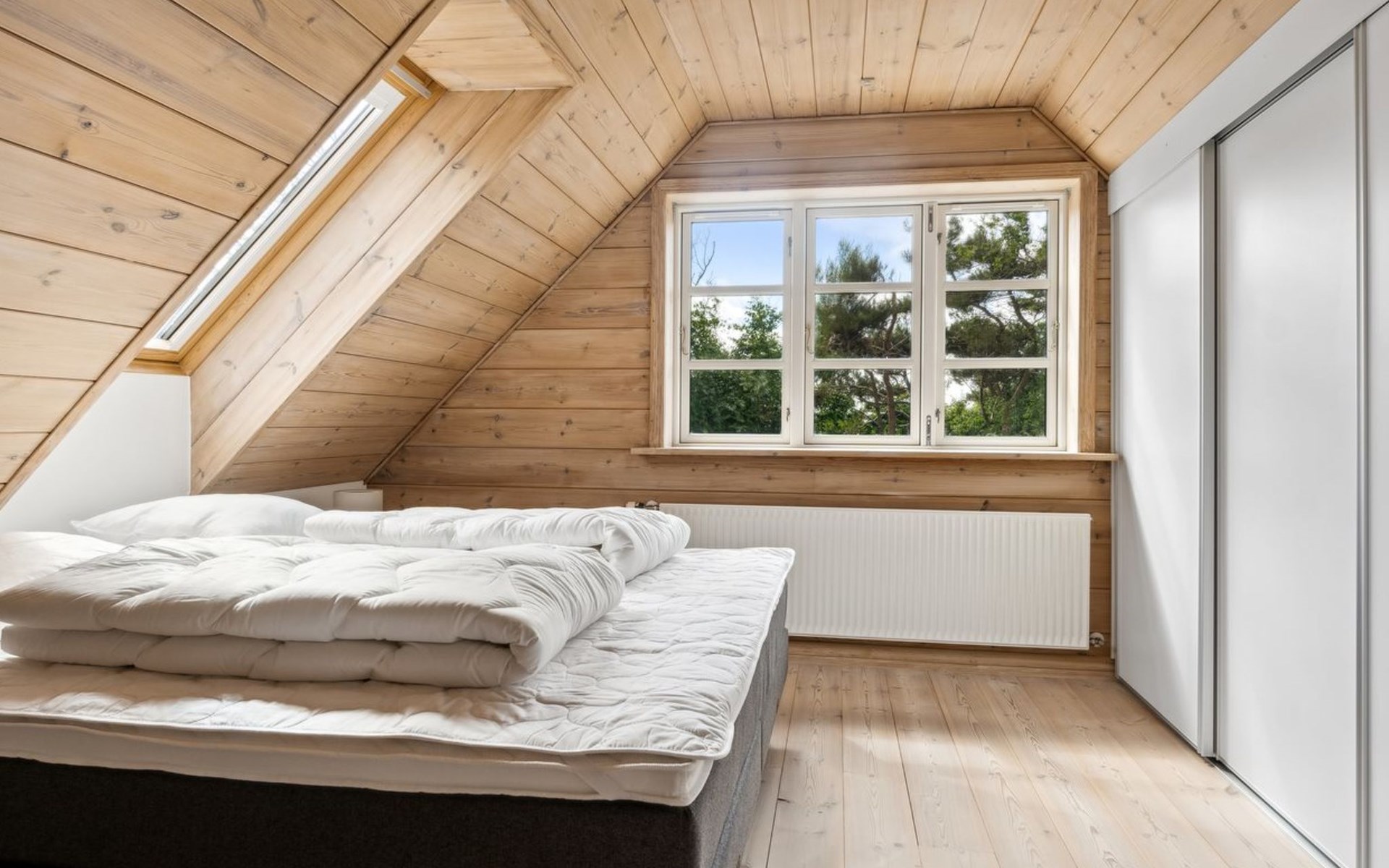 Single-family house, built in 2000. Private: natural state property 4'500 m2. Terrace (30 m2), barbecue, children's playground (swing). In the house: washing machine. Parking at the house. Grocery 3 km. Golf course 20 km. The owner does not accept any youth groups.
