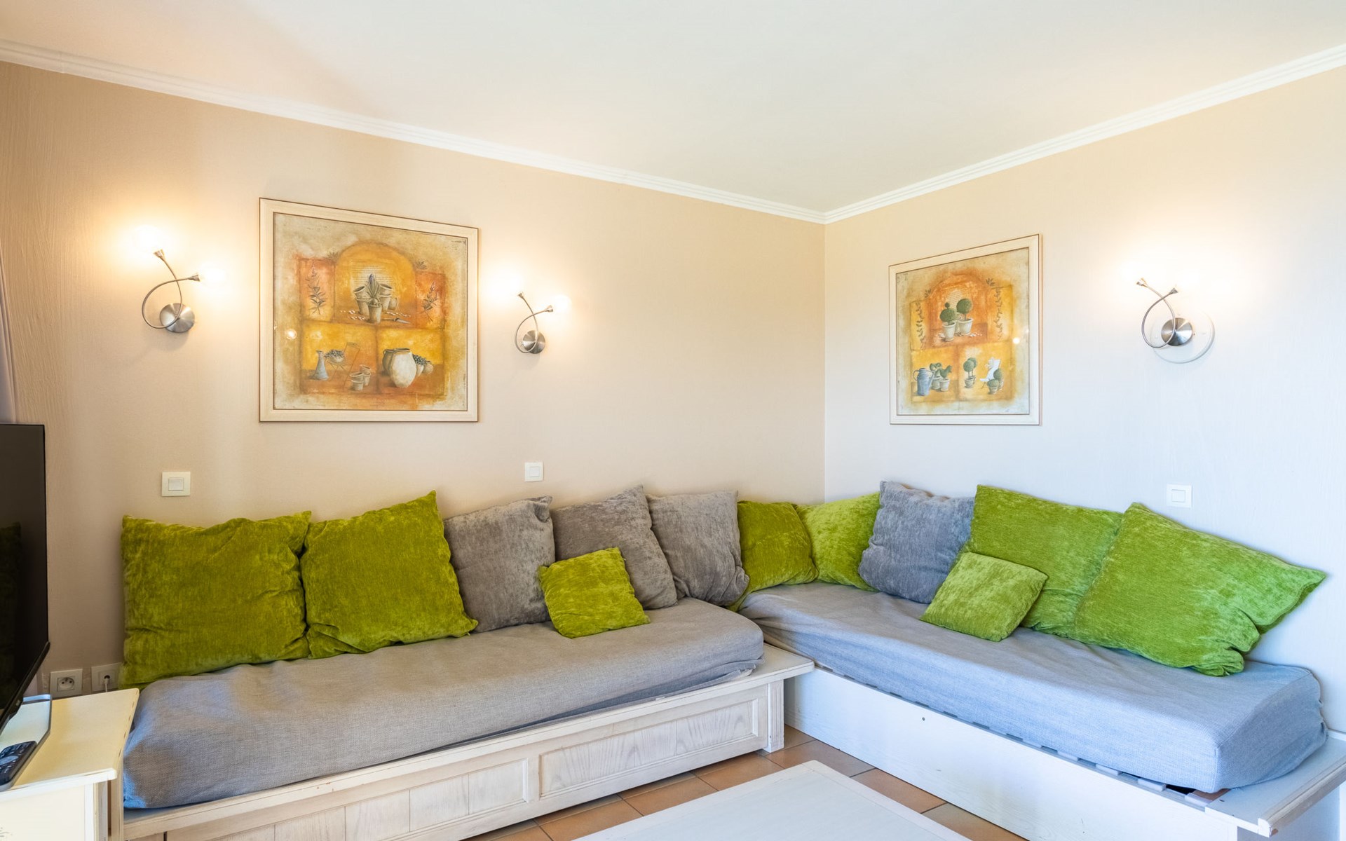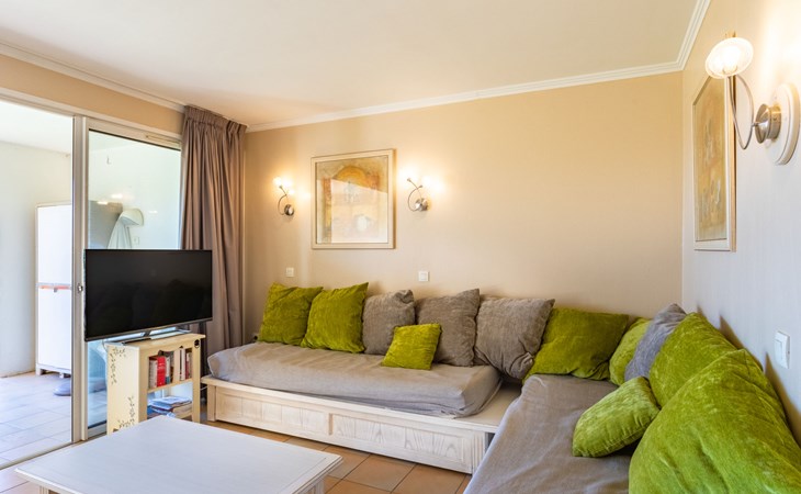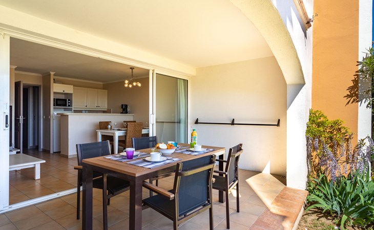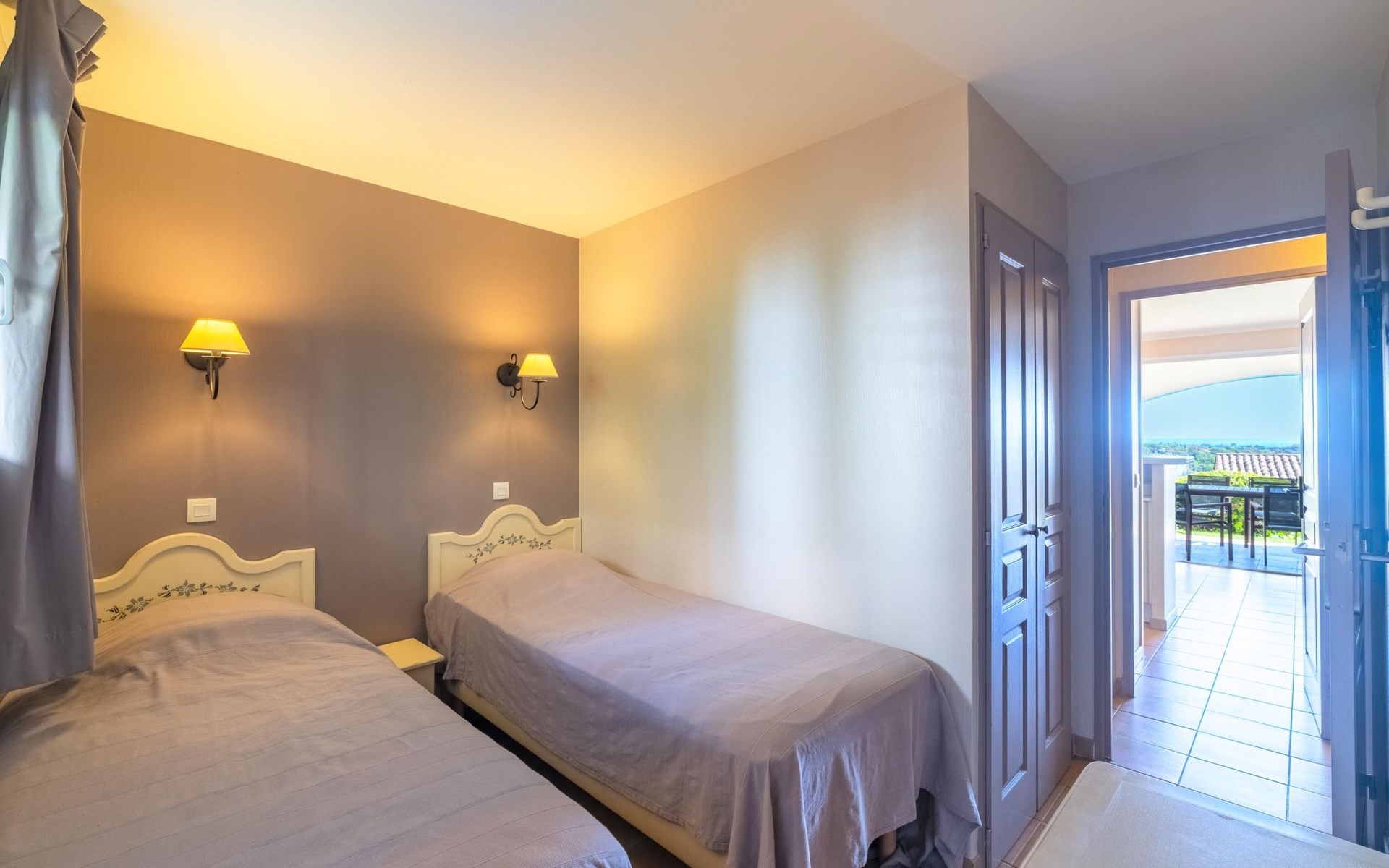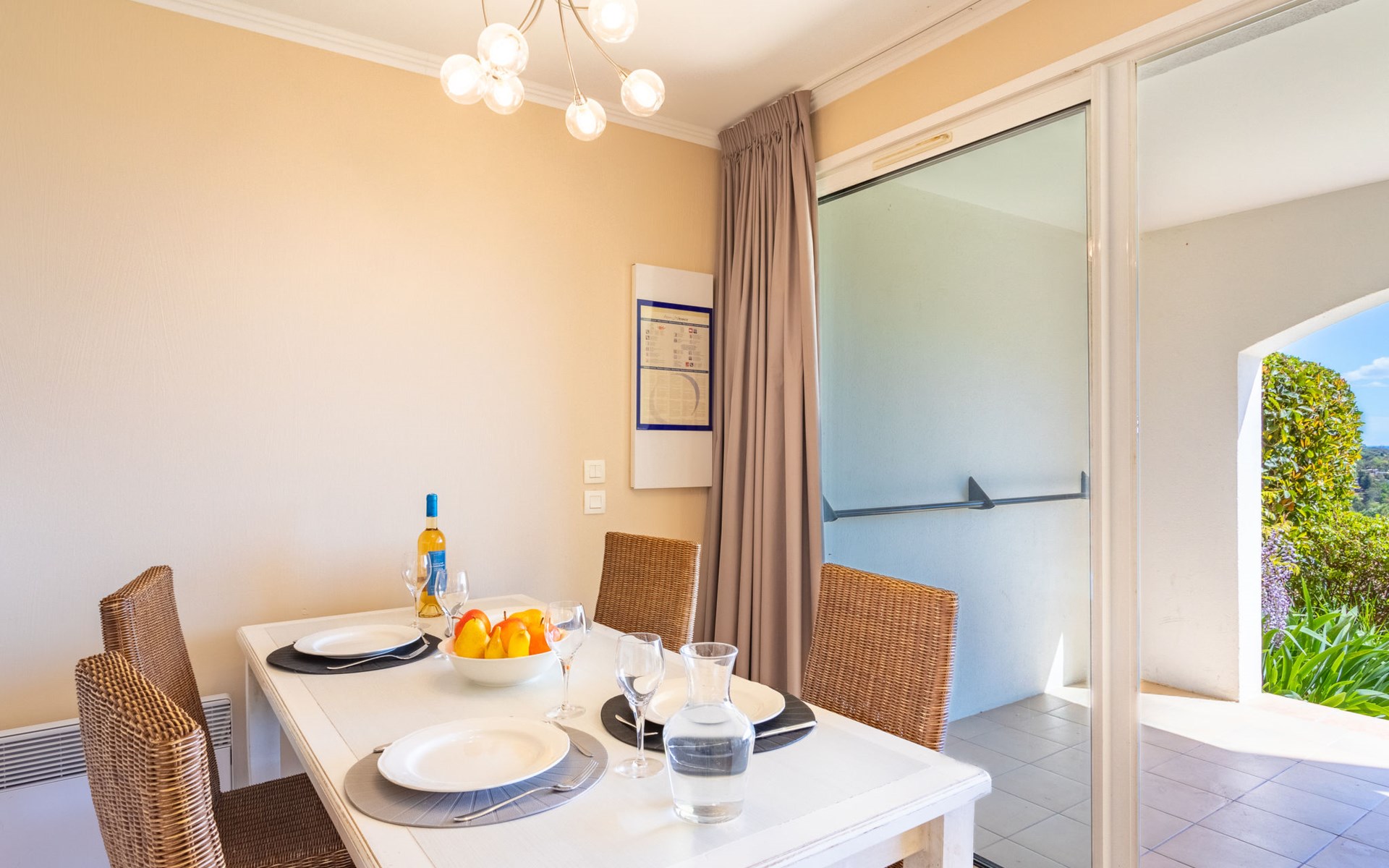 Child friendly holiday village "Les Restanques Golfe Saint Tropez", surrounded by trees. Outside the resort, 7.5 km from the centre of Grimaud, 3 km from the sea, 3 km from the beach. For shared use: park 24 ha (fenced), 3 swimming pools (seasonal availability: 01.May. - 01.Oct. pool opening hours: 10:00-19:00). Children's pool, slide, tennis, table tennis, children's playground. In the complex: restaurant, bar, playroom, boutique, laundry. Parking on the premises. Shop 2 km, supermarket 3 km, restaurant 3 km, bus stop "Saint Pons" 1.8 km, sandy beach "Port Grimaud" 3 km. Sports harbour 3 km, golf course (18 hole) 3 km, sailing school 5 km. Nearby attractions: Port Grimaud 3 km, Parc d'attractions Azur Park 4 km, Sainte Maxime 8 km, Saint Tropez 10 km, Plages de Pampelonne 16 km, Cannes 84 km. Well-known lakes can easily be reached: Le lac de Saint Croix 92 km. Hiking paths: Masif de l'Esterel 50 km. Please note: entertainment in the season. Childminding (extra).