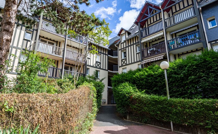 Residence "Le Clos Mathilde", 3 storeys. In the resort 900 m from the centre of Cabourg, from the sea, 500 m from the beach. In the complex: public parking on the road. Shop 900 m, supermarket 1.2 km, restaurant 900 m, bus stop "Plage" 400 m, thermal baths "Thalazur" 270 m. Golf course (9 hole) 1.5 km, sports centre 400 m. Nearby attractions: Casino 600 m, Deauville 25 km, Honfleur 48 km, Mémorial de Caen 35 km, Plages du débarquement 64 km. Please note: no lift. Additional accommodations can be booked. The distance to the sea varies depending on the location of the building.