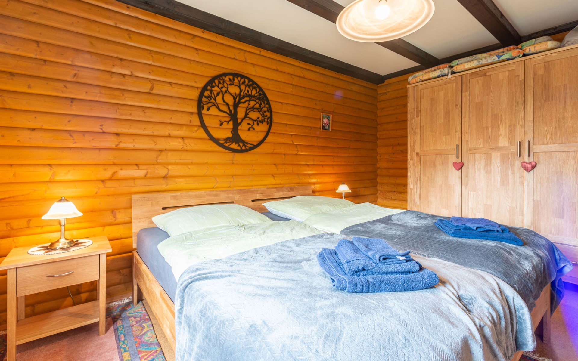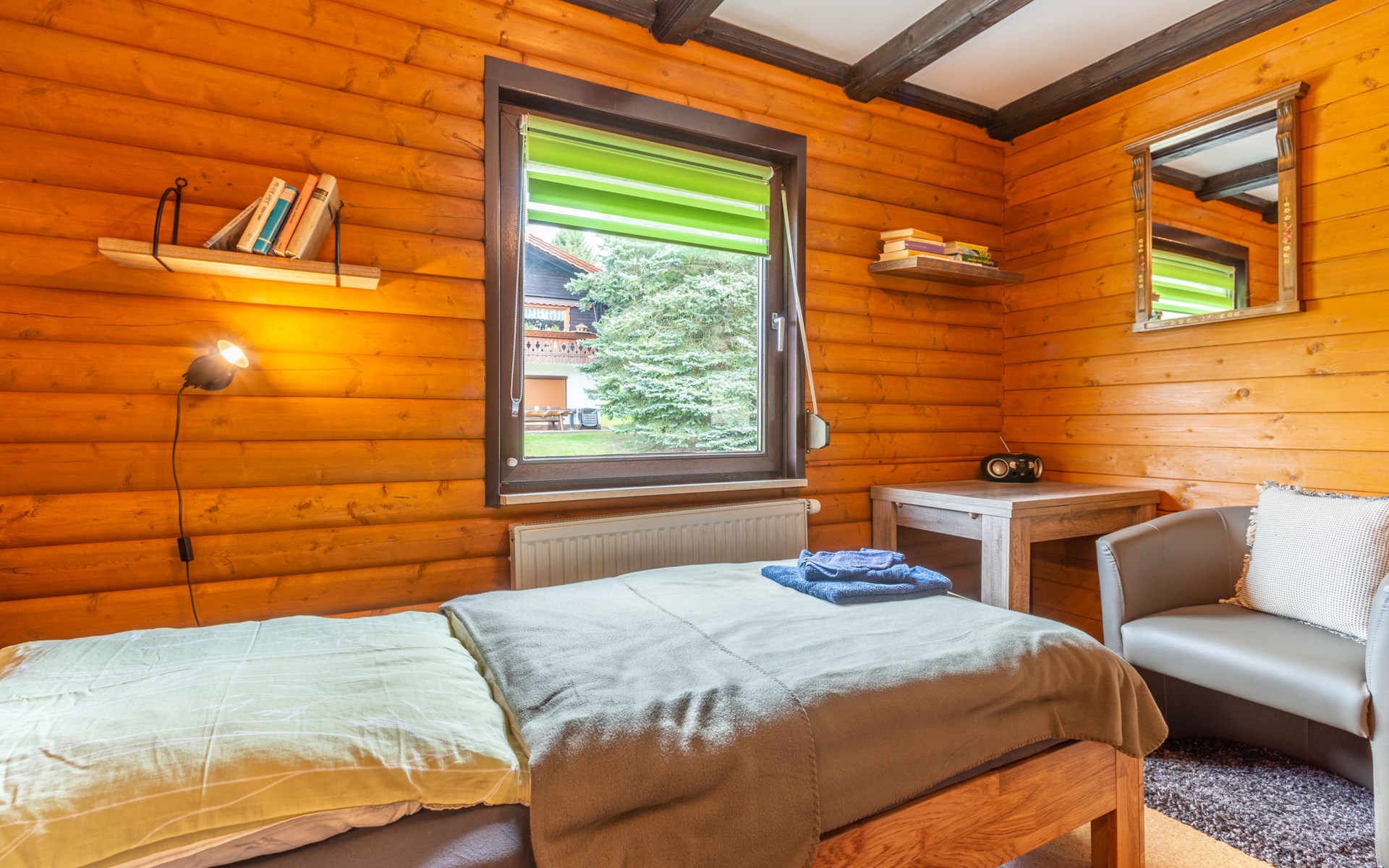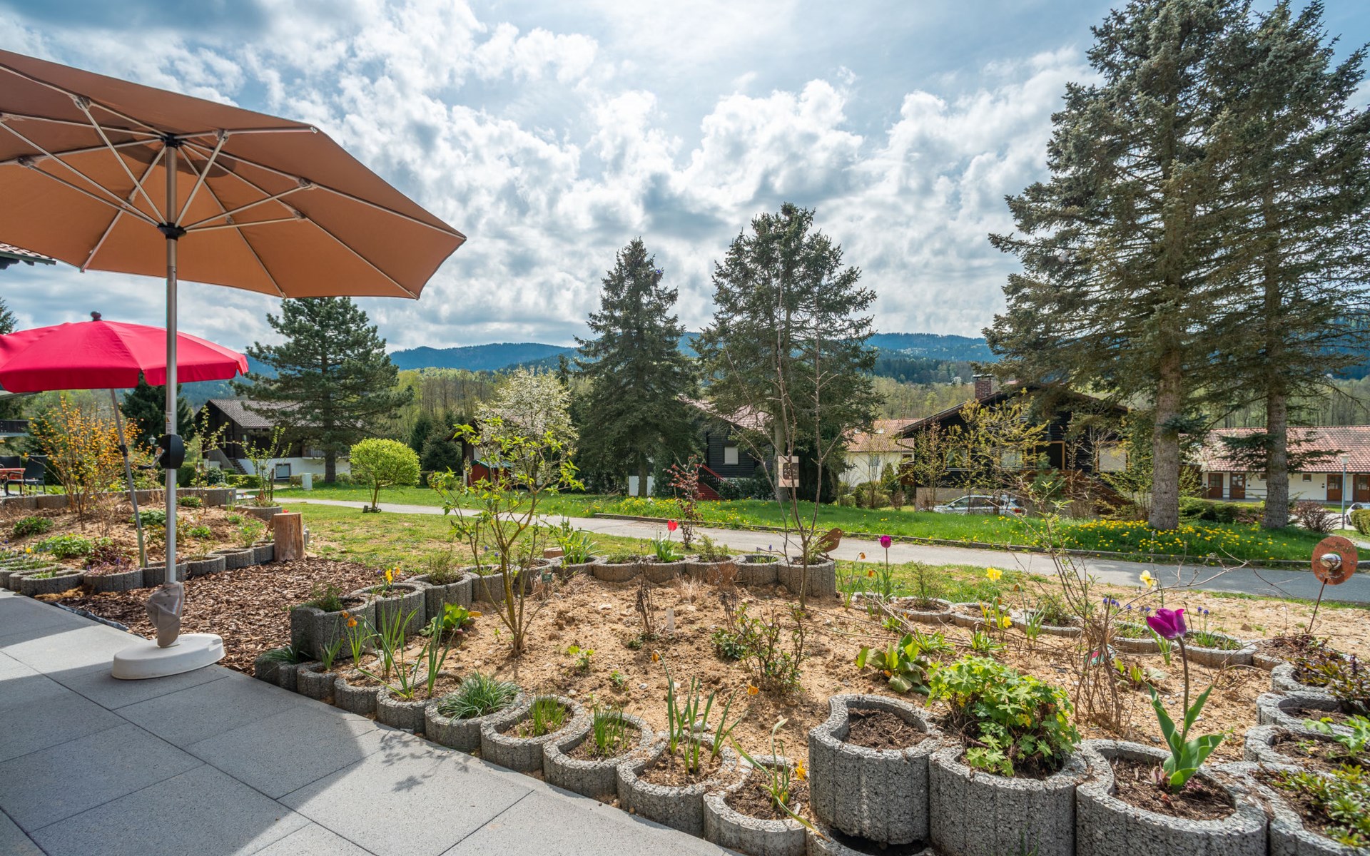 Child friendly holiday village "Am Hohen Bogen". In the district of Kummersdorf, outside the resort, 3 km from the centre of Arrach, on a slope, traffic calmed area, 300 m from the edge of the forest, 100 m from the lake, 9 km from the skiing area. For shared use: volleyball, children's playground (slide, swing, sandbox). In the complex: table tennis (extra). Central heating system. Parking at the house. Shop 3 km, grocery 3 km, supermarket 3 km, restaurant 3 km, bakery 3 km, railway station "Hohenwarth" 1.5 km, grass beach "Seepark Arrach" 5 km, outdoor swimming pool 10 km, thermal baths 10 km, bathing lake "Seepark Arrach" 5 km. Golf course (9 hole) 6 km, tennis 6 km, riding stable 800 m, chair lift 9 km, skisport facilities 9 km, slopes 9 km, ski rental 11 km, ski school 9 km, cross country ski track 11 km. Nearby attractions: Bayerwald-Tierpark Lohberg 15 km, Spielbank Bad Kötzting, Fun-Park Neukirchen, Tiergarten Straubing, Pullman-City. Well-known ski regions can easily be reached: Eck 6 km, Am Hohen Bogen 9 km, Arber 29 km. Hiking paths: Arberregion. Please note: car recommended. Groups of teenagers on request only. Boating, fishing 500 m. The holiday village consists of an apartment house and two-storey holiday houses with shared lawns and play areas. The distance from the individual houses to the natural swimming lake is 50 – 400 m.