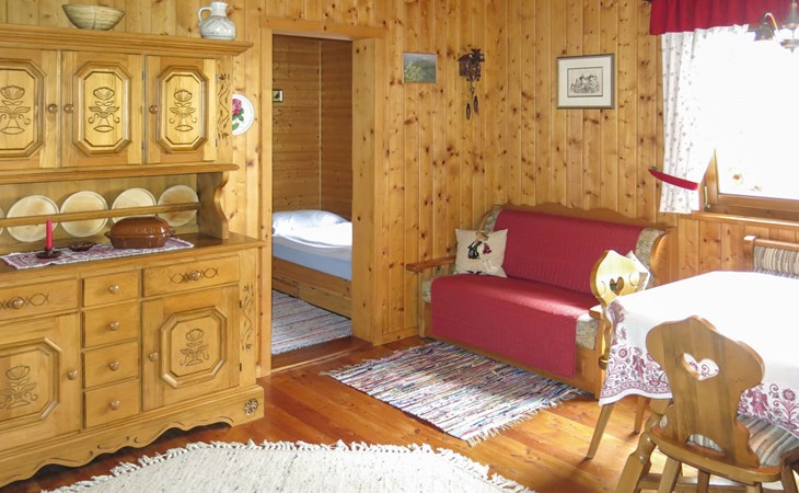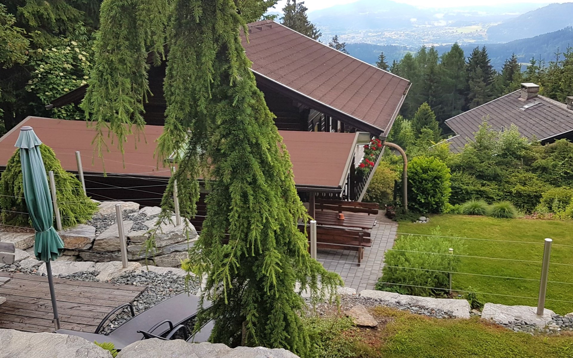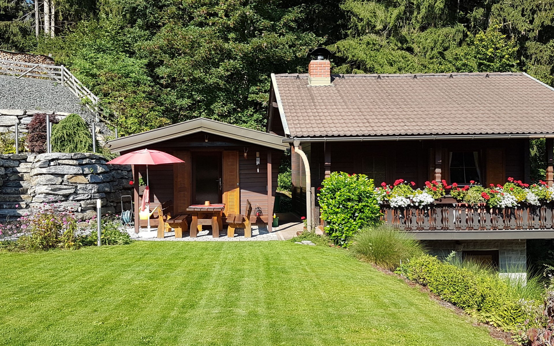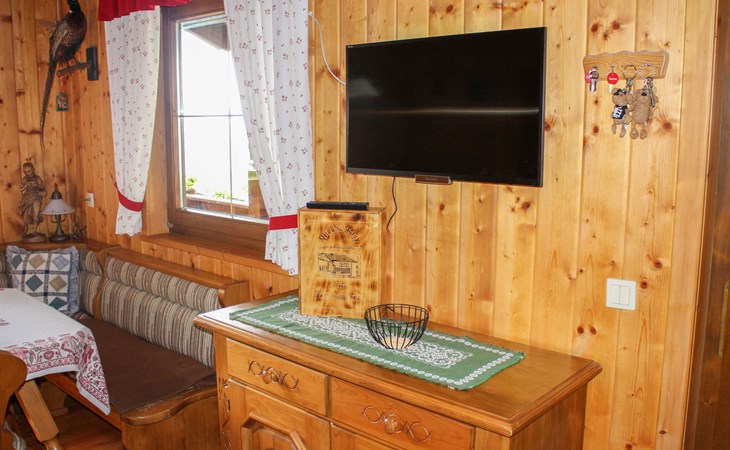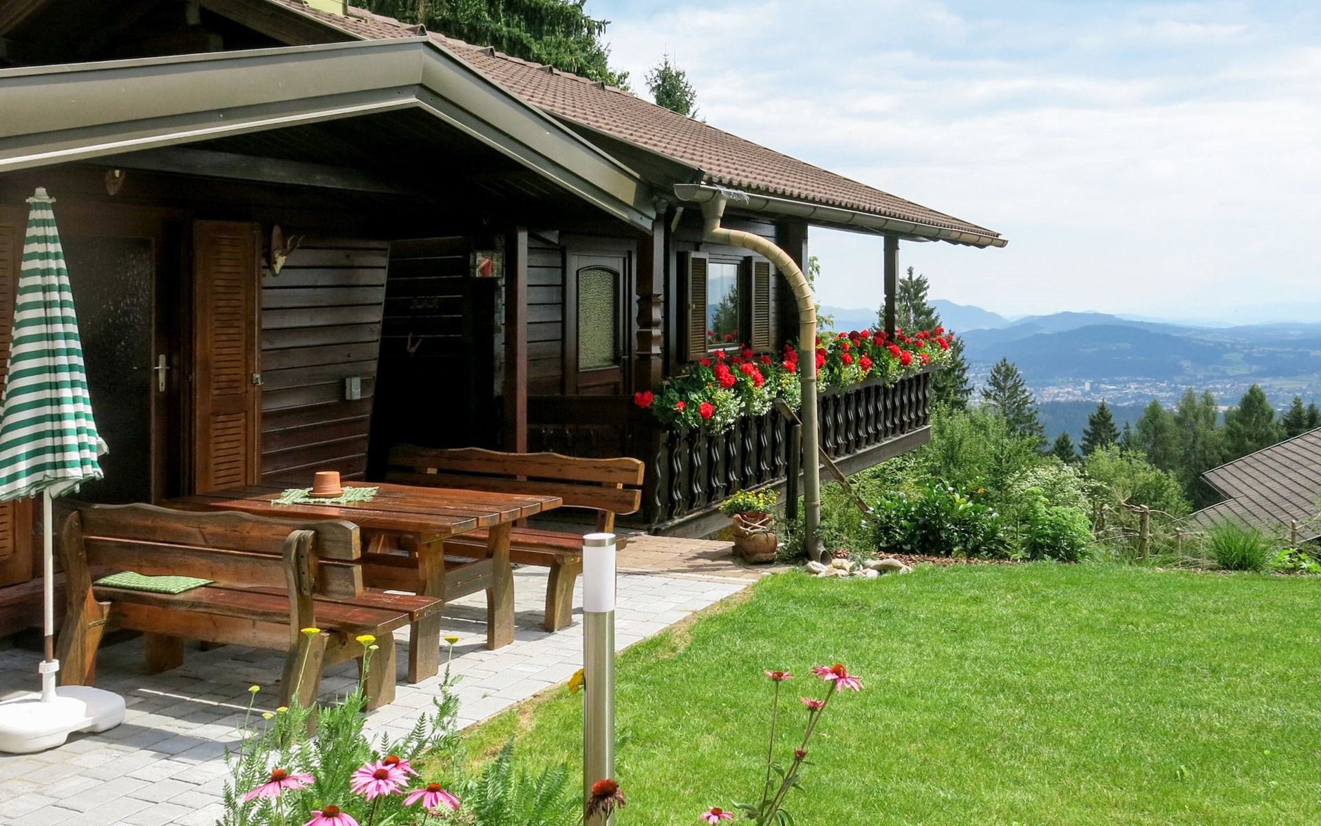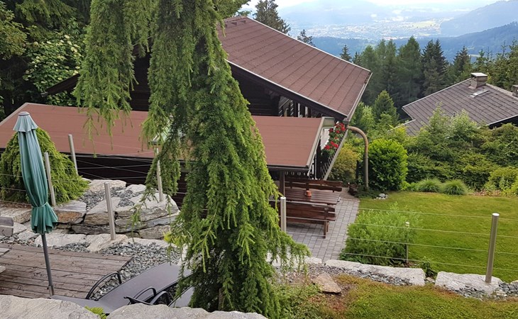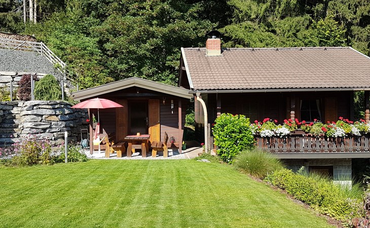 Timber house "Saurachberghütte", 1'000 m a.s.l.. Property composed of main house and outbuilding 7 km from the centre of Feldkirchen, 32 km from the centre of Klagenfurt, 33 km from the centre of Villach, 7 km from the lake. Private: terraced garden, 600 m2 with lawn, lawn for sunbathing, parking (for 3 cars) at the house. Shop 7 km, bus stop 6 km, railway station 15 km, lake Ossiacher 15 km.