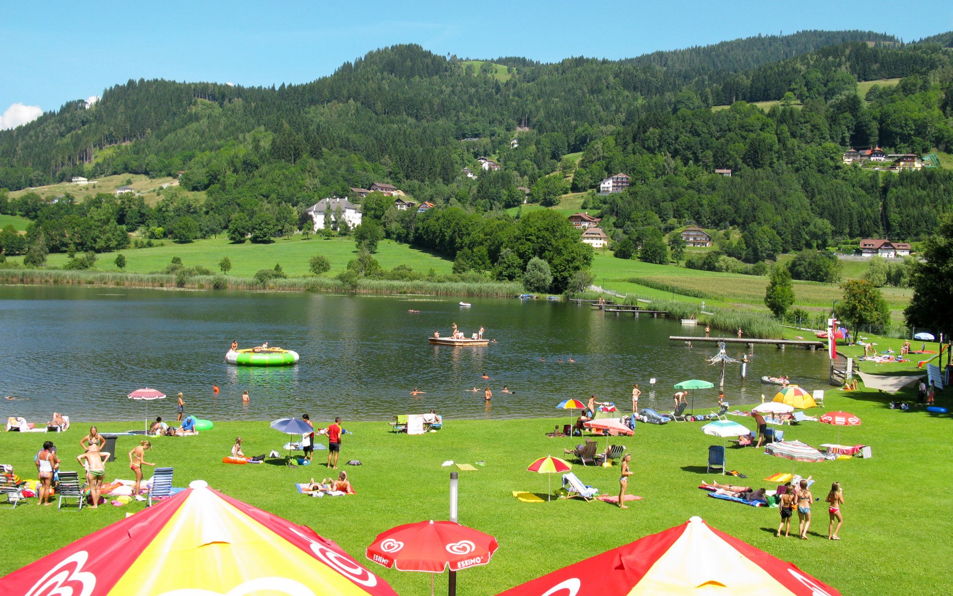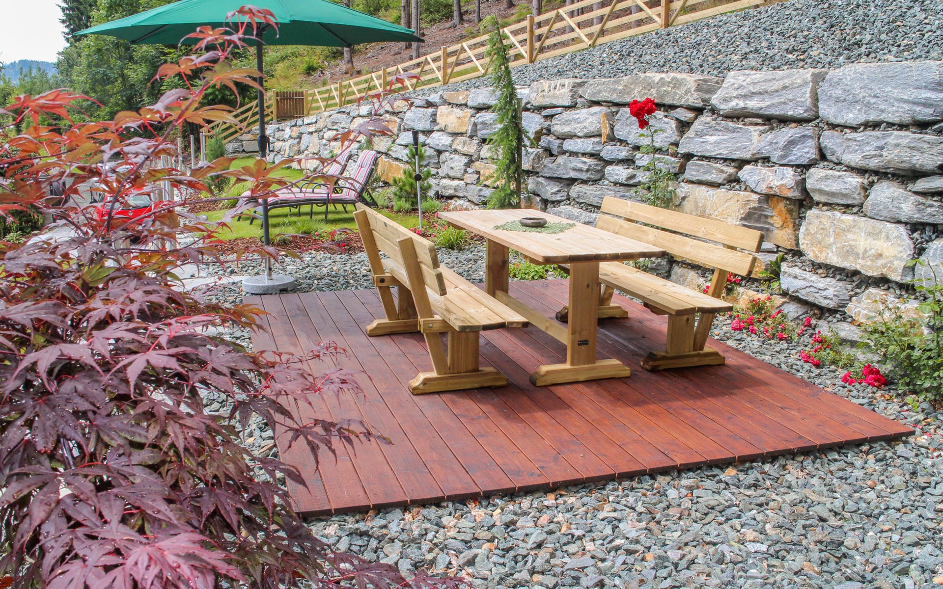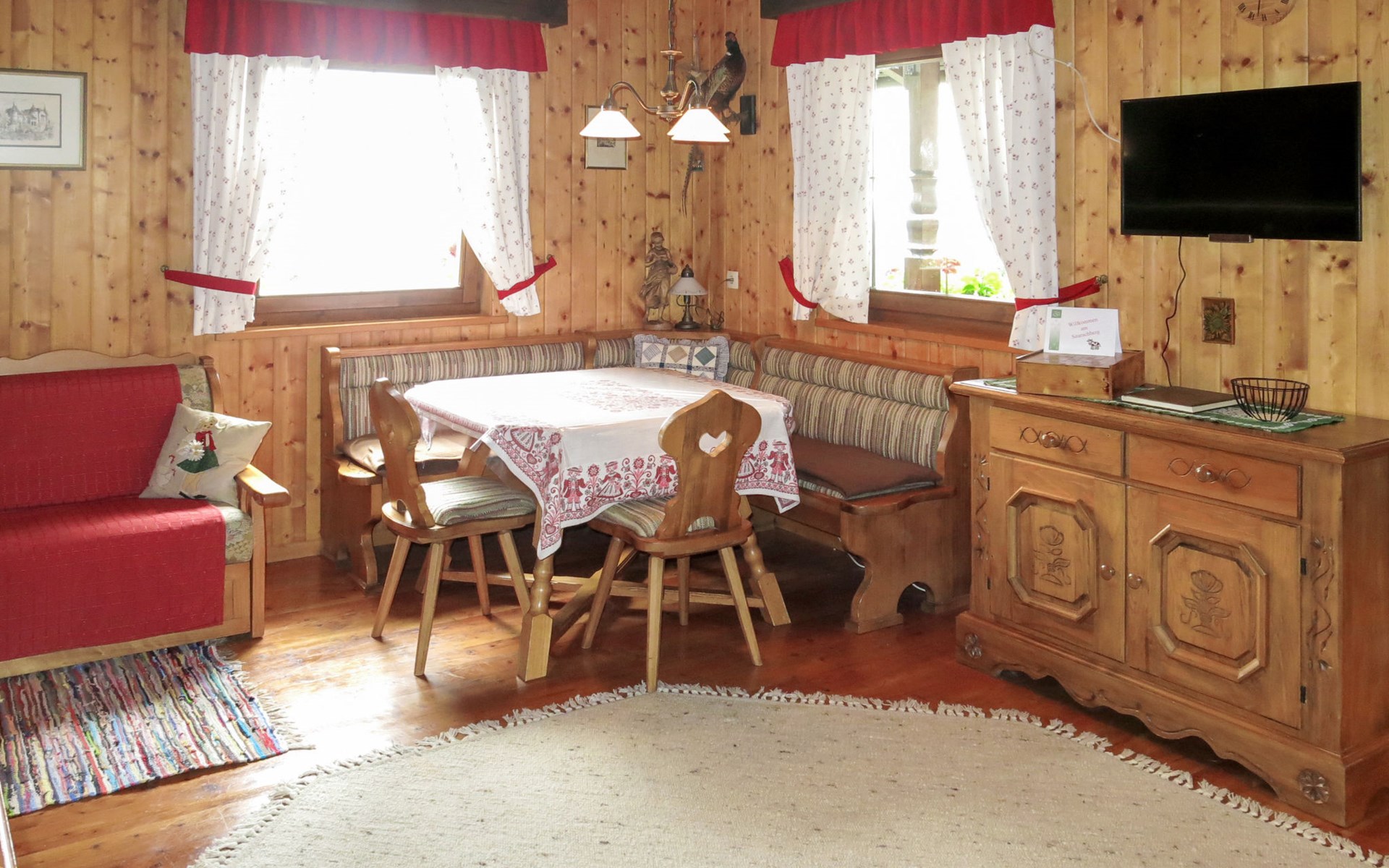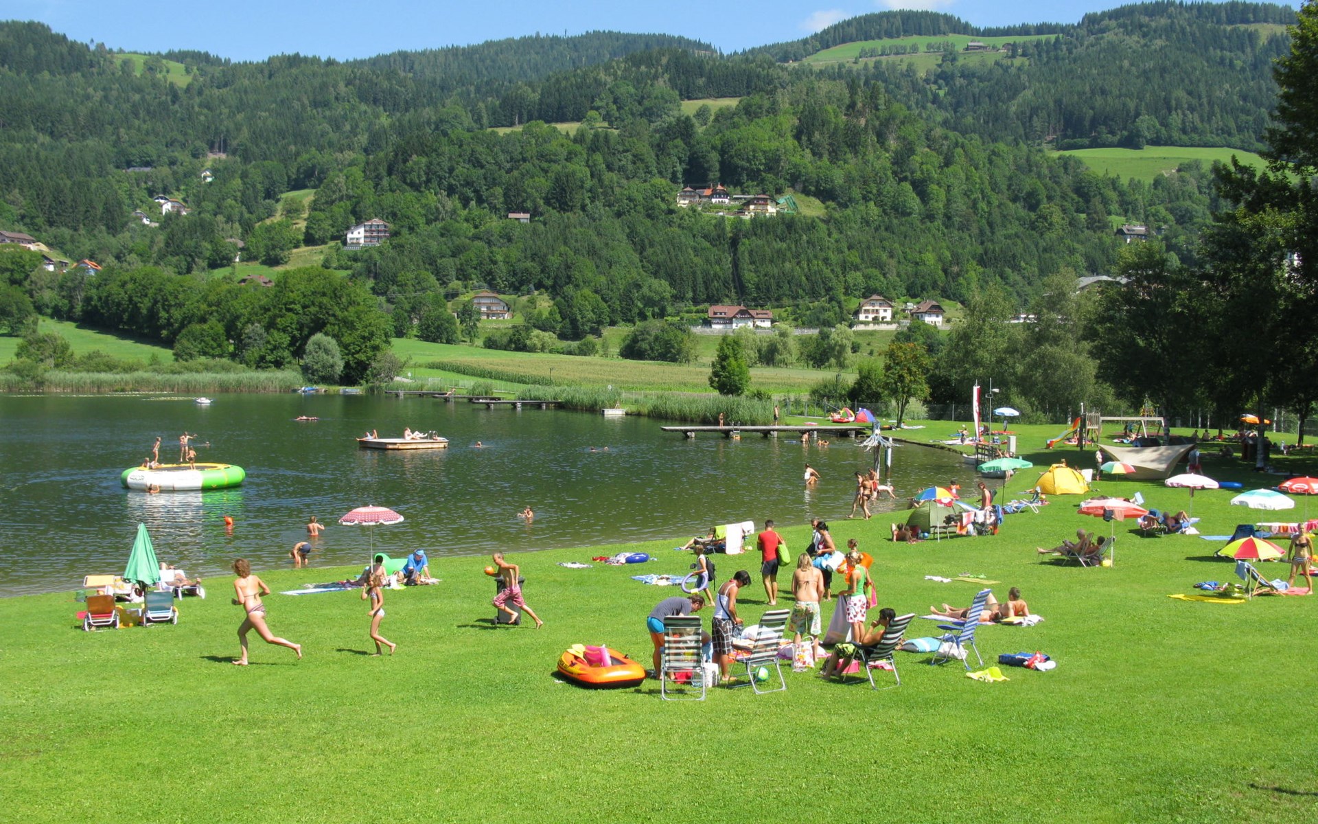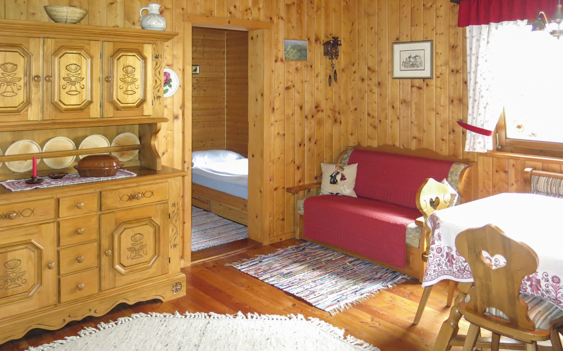 Timber house "Saurachberghütte", 1'000 m a.s.l.. Property composed of main house and outbuilding 7 km from the centre of Feldkirchen, 32 km from the centre of Klagenfurt, 33 km from the centre of Villach, 7 km from the lake. Private: terraced garden, 600 m2 with lawn, lawn for sunbathing, parking (for 3 cars) at the house. Shop 7 km, bus stop 6 km, railway station 15 km, lake Ossiacher 15 km.