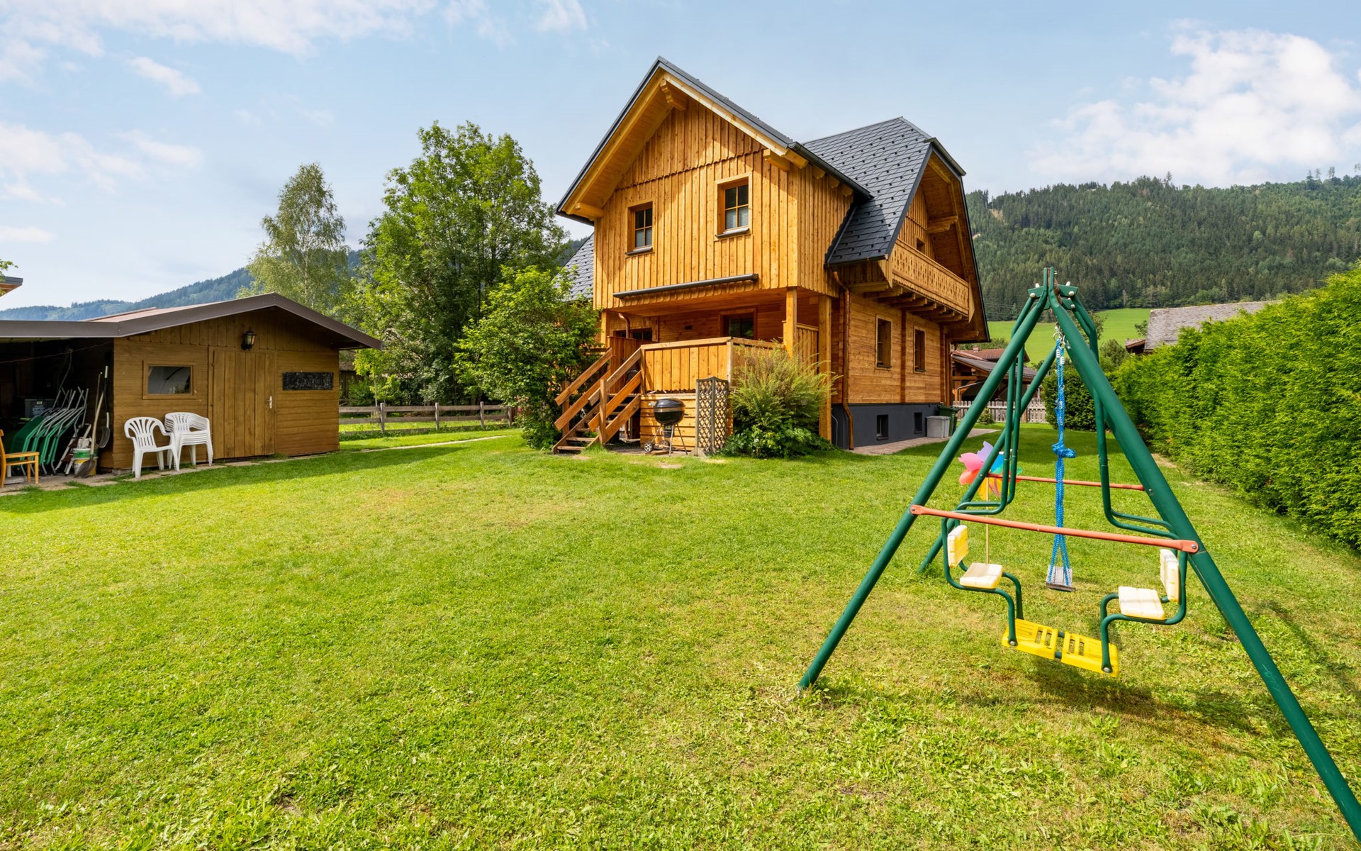 Beautiful, comfortable chalet "Bergerlodge". On the outskirts, 1 km from the centre, in a quiet, sunny position, 5 km from the lake, 300 m from the skiing area. Private: large garden 900 m2, meadow. Terrace, garden furniture, barbecue. In the house: sauna, relaxation room, storage room for bicycles, storage room for skis, central heating system, washing machine, ski boot dryer. Bread roll service. Parking (for 4 cars) at the house. Grocery 700 m, restaurant 500 m, bus stop 300 m, outdoor swimming pool 2 km, indoor swimming pool 2 km, bathing lake 5 km. Golf course (18 hole) 7 km, cable car, ski lift, ski rental, ski bus stop 300 m, ski school 300 m, cross country ski track 5 km. Please note: baby equipment on request (included). Ski bus (free of charge). ATTENTION: SOMMERCARD INCLUDED from the end of May until end of October!