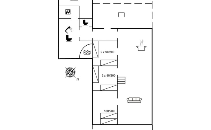 Single-family house, built in 1975. 75 m from the sea. Private: property 7'500 m2. Terrace (30 m2). In the house: sauna, washing machine, tumble dryer. Parking at the house. Grocery 200 m.