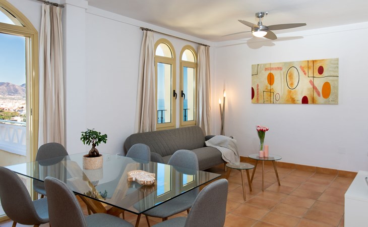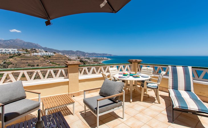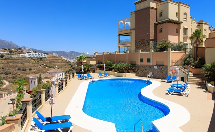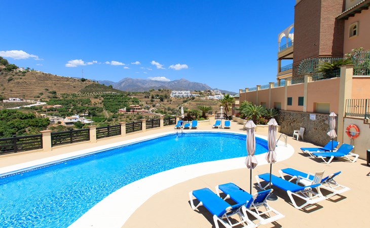 Beautiful, cosy apartment block "Alcazaba". In a sunny position in the residential district, 1 km from the beach, south-east facing position. For shared use: swimming pool kidney-shaped (15 x 5 m, depth 110 - 180 cm, seasonal availability: 01.Apr. - 31.Oct.). Outdoor shower. In the house: central heating system, air conditioning. Shop 1 km, grocery 1 km, supermarket 2.5 km, shopping centre 23 km, restaurant 1 km, bakery 1 km, café 1 km, bicycle rental 2.5 km, bus stop 1 km, railway station 50 km, diving center 2.5 km. Sports harbour 18 km, marina 18 km, golf course (18 hole) 23 km, surf school 40 km, sailing school 18 km, tennis 2.5 km. Nearby attractions: Frigiliana, Maro, Malaga, Competa, Granada, Cuevas de Maro. Well-known ski regions can easily be reached: Sierra Nevada. Hiking paths: Sierra Almijara, Sierra Tejeda, Las Alpujarras. Please note: car recommended, no lift. The owner does not accept any youth groups. Loading and unloading of baggage is possible at the holiday house.